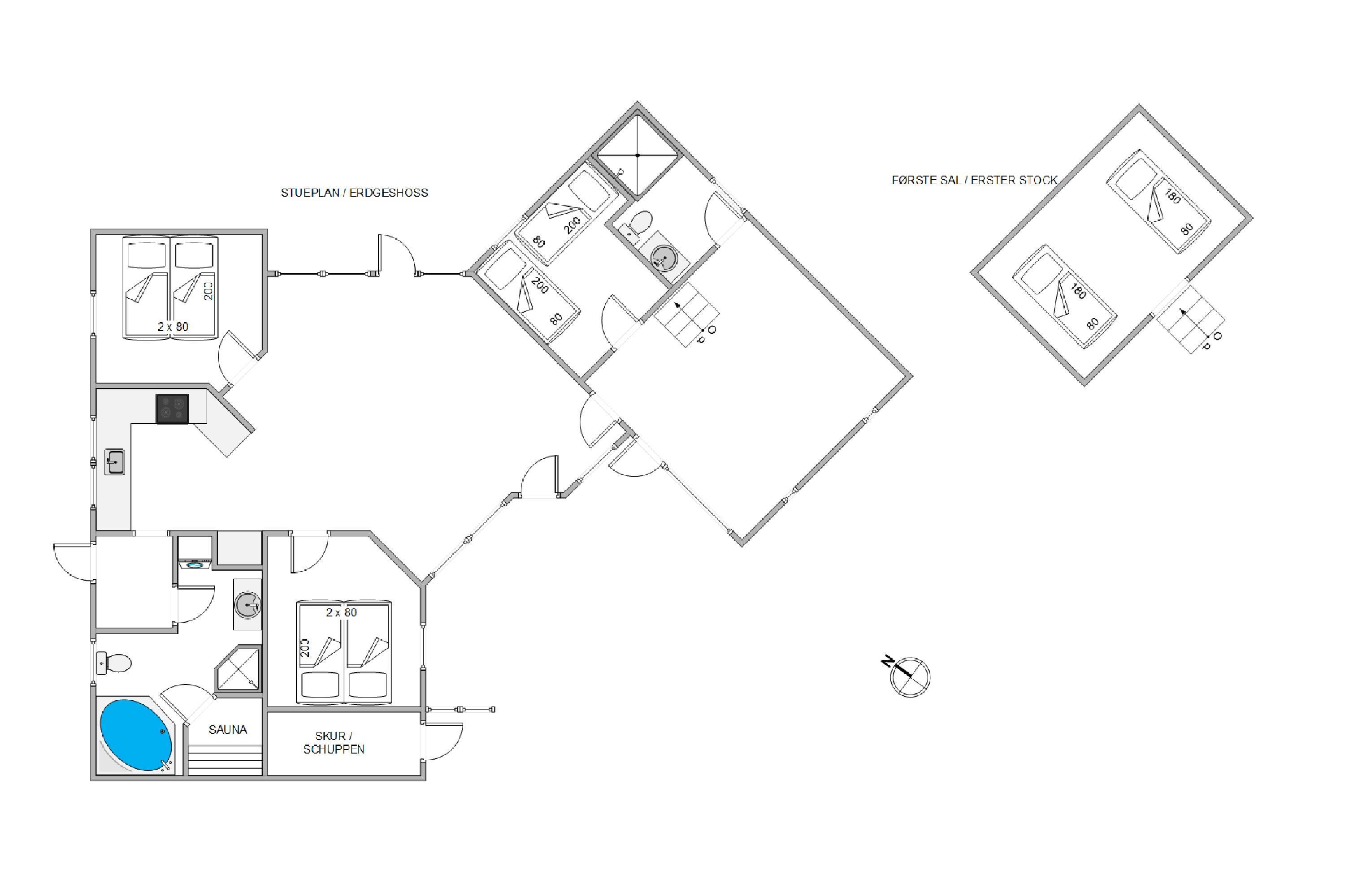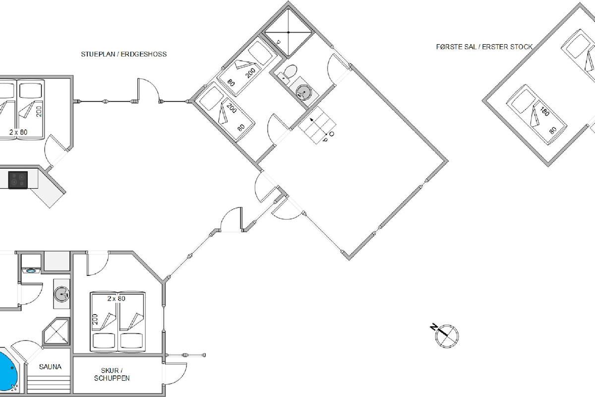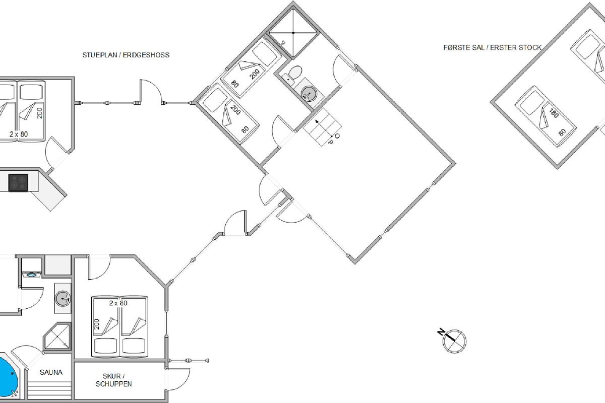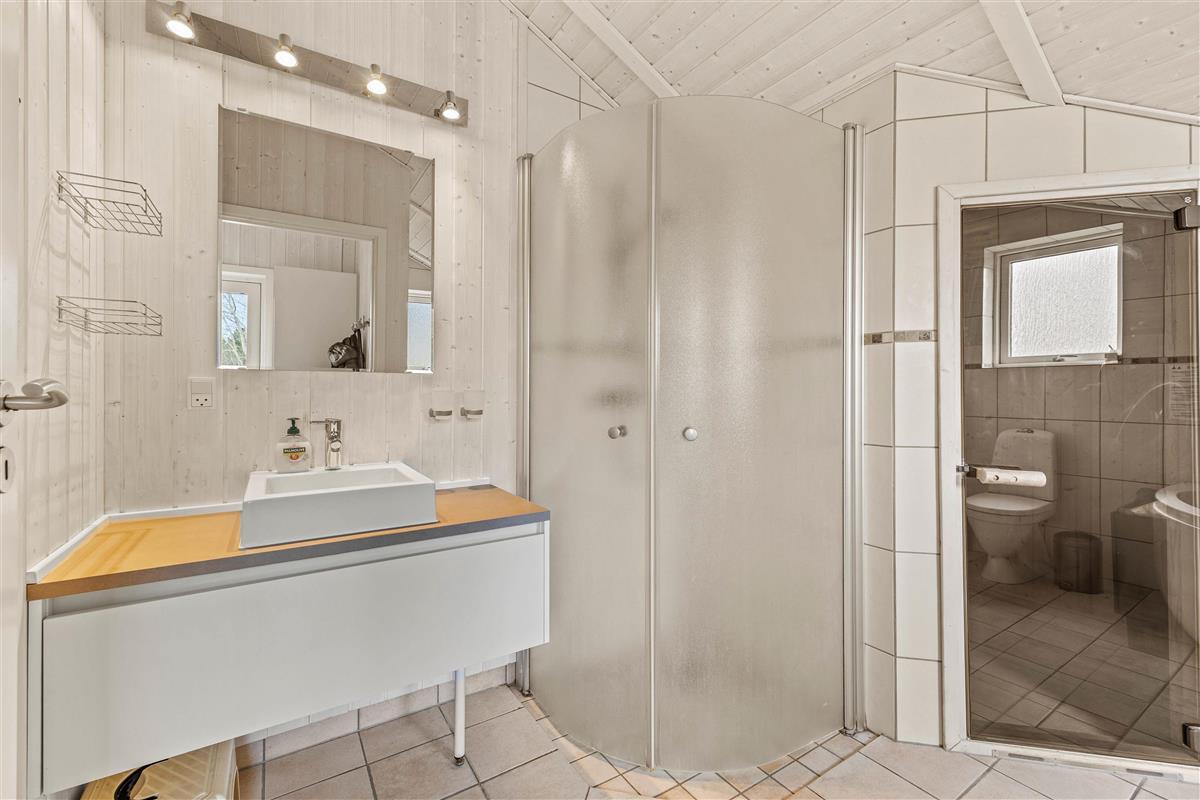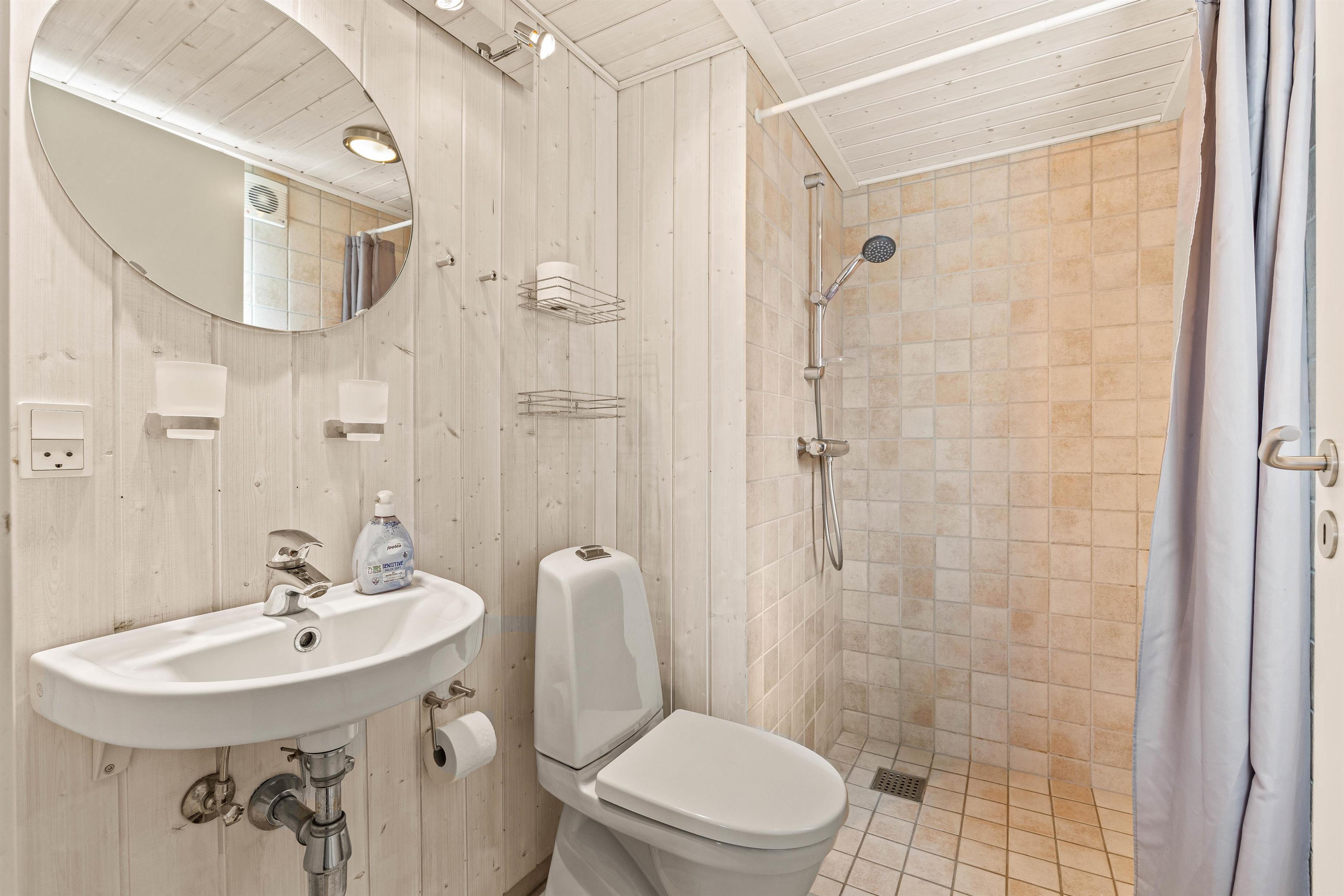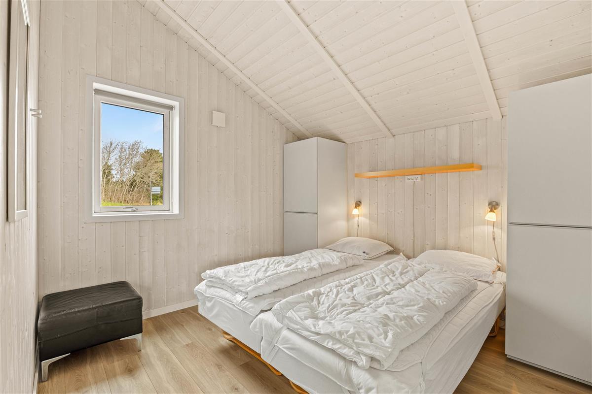 This holiday home at Hvidbjerg Strandvej 7F offers three comfortable bedrooms plus two sleeping spaces in the mezzanine. The two bathrooms ensure no long queues for morning teeth-brushing.
