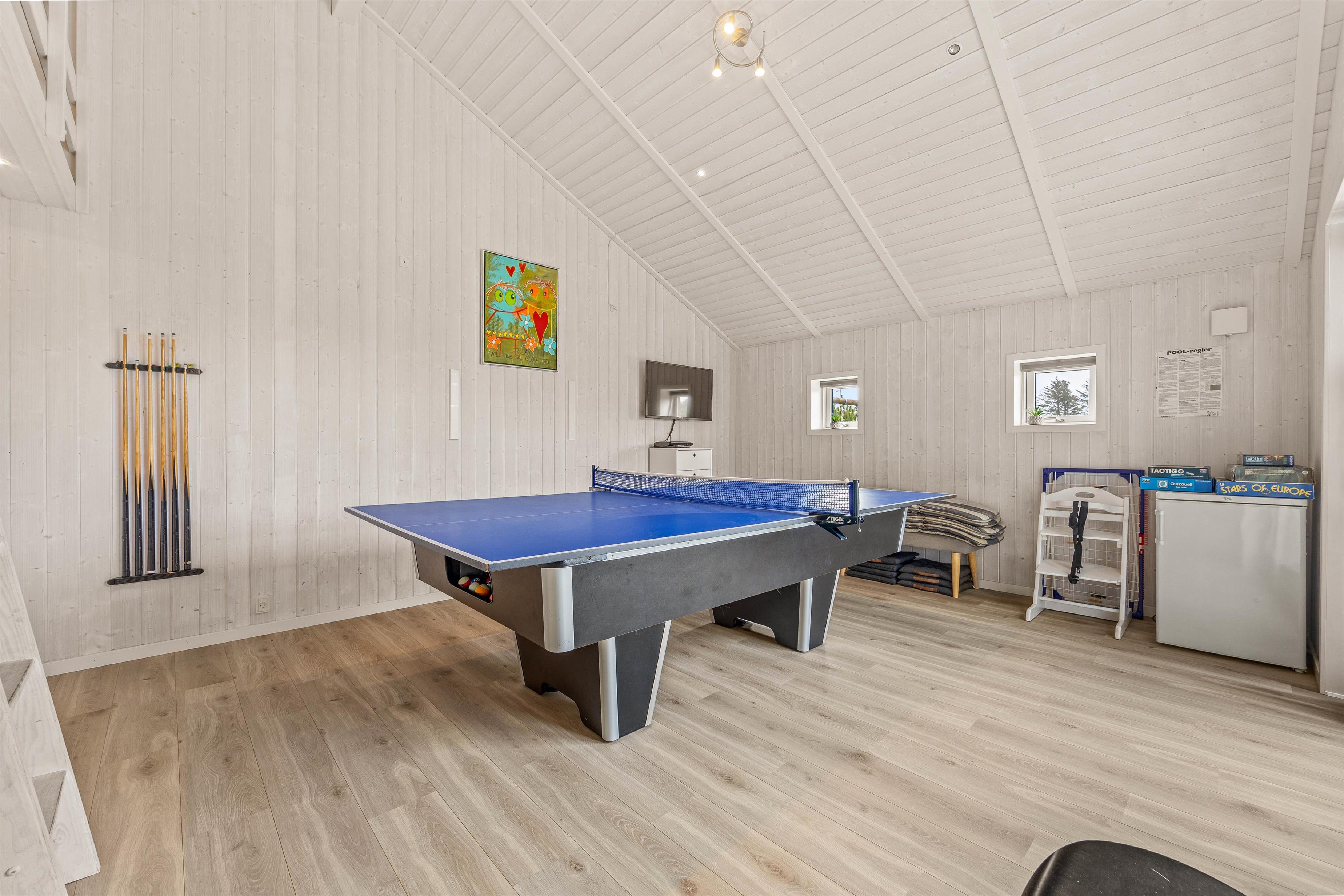 Welcome to this beautiful holiday home at Hvidbjerg Strandvej 7F in Blåvand. With 120 square metres of space, this summer house is the ideal choice for a comfortable and relaxing holiday in magnificent surroundings. Accommodating up to 8 people and located just 0.6 miles (1 km) from the Danish West Coast, this holiday home is perfect for a rejuvenating break by the North Sea beach. The holiday home features an excellent games room where you can spend many holiday hours enjoying billiards and table tennis.
