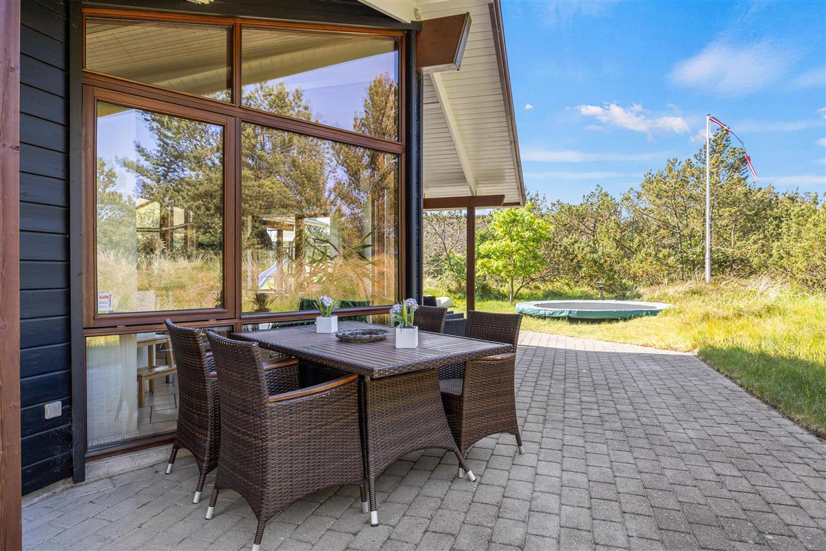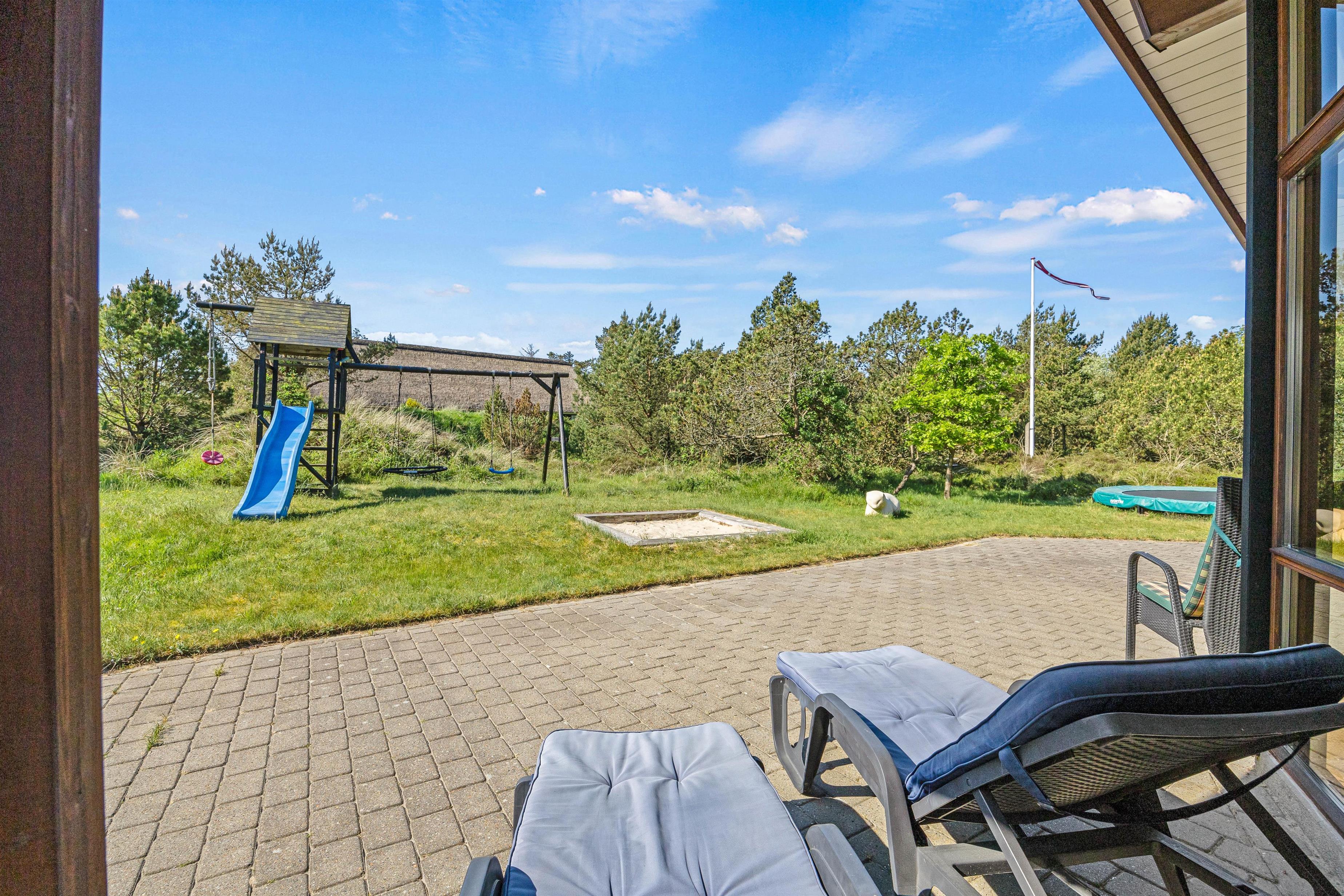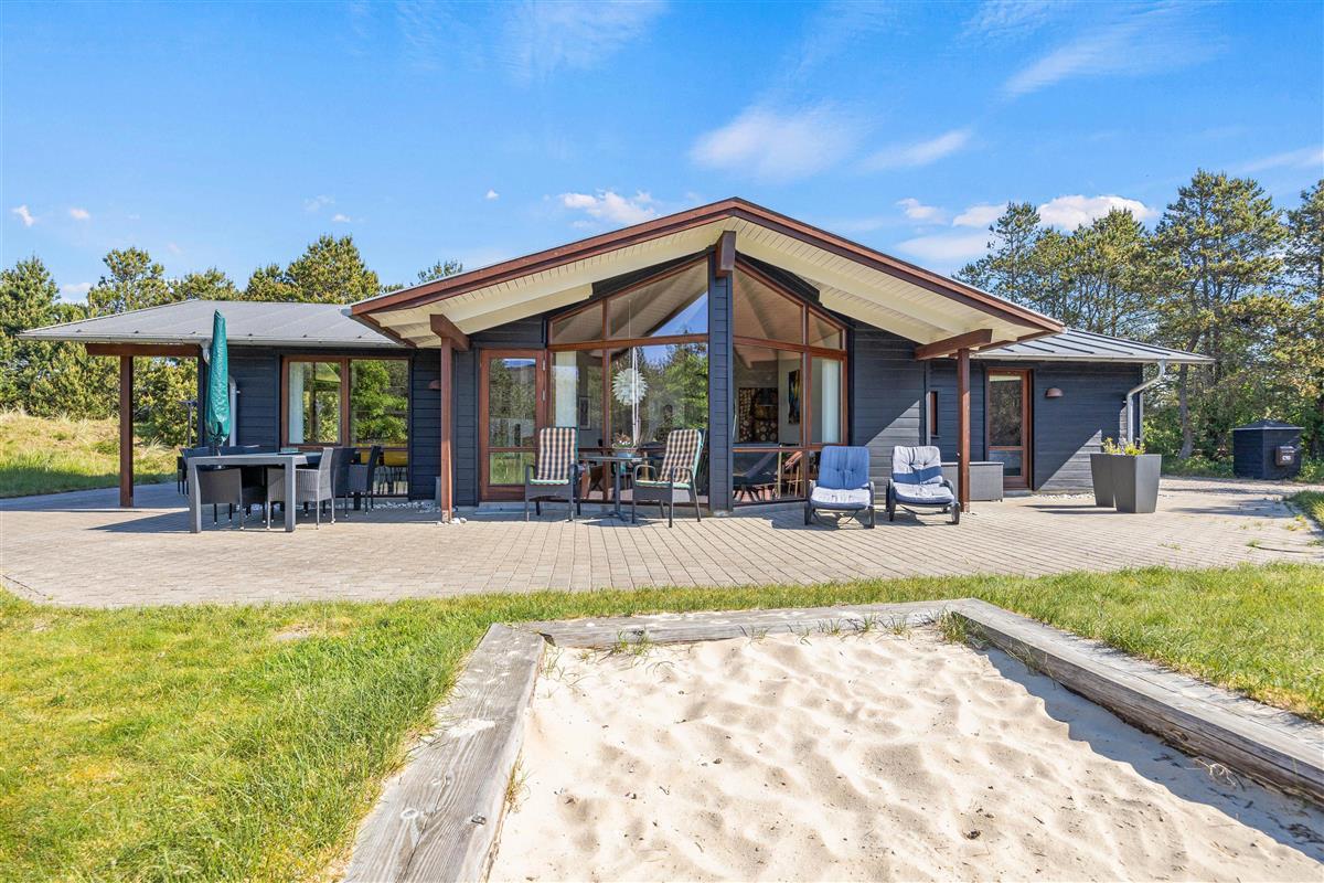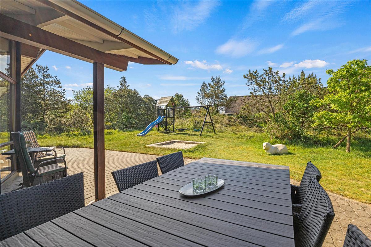 The outdoor area of this beautiful holiday home at Bakkedraget 30 is perfect for enjoying your holiday. Whatever the weather, you can relax in the covered section of the terrace, enjoy a freshly brewed coffee and take in the views while the children play in the sandpit.