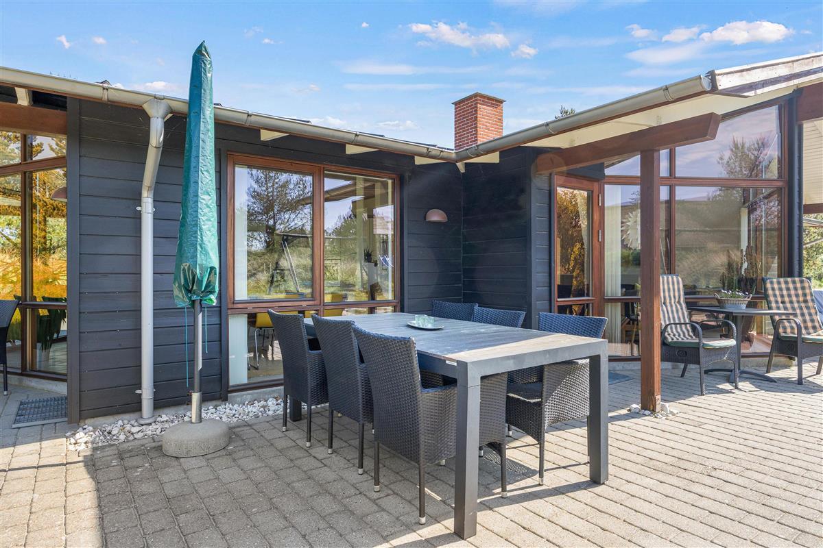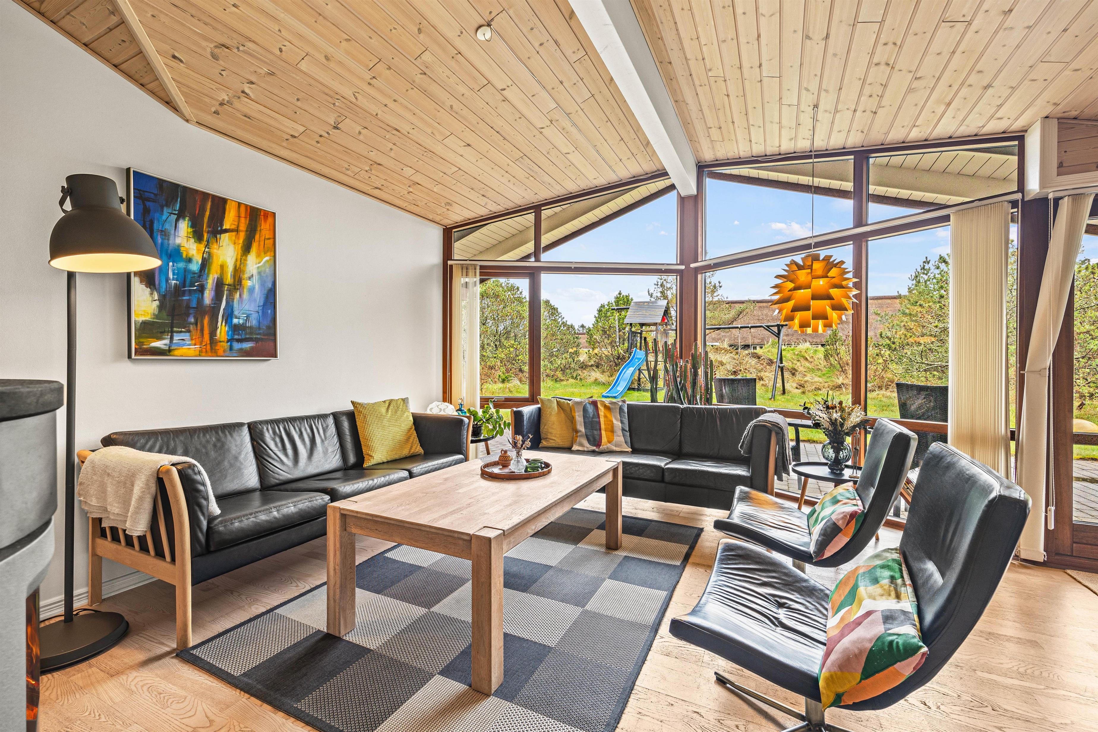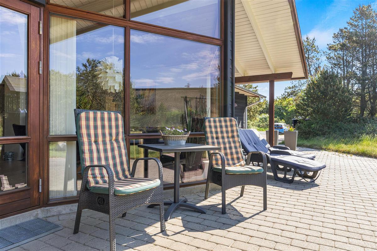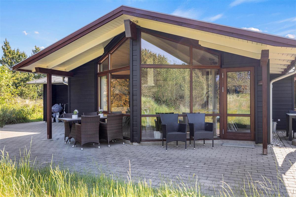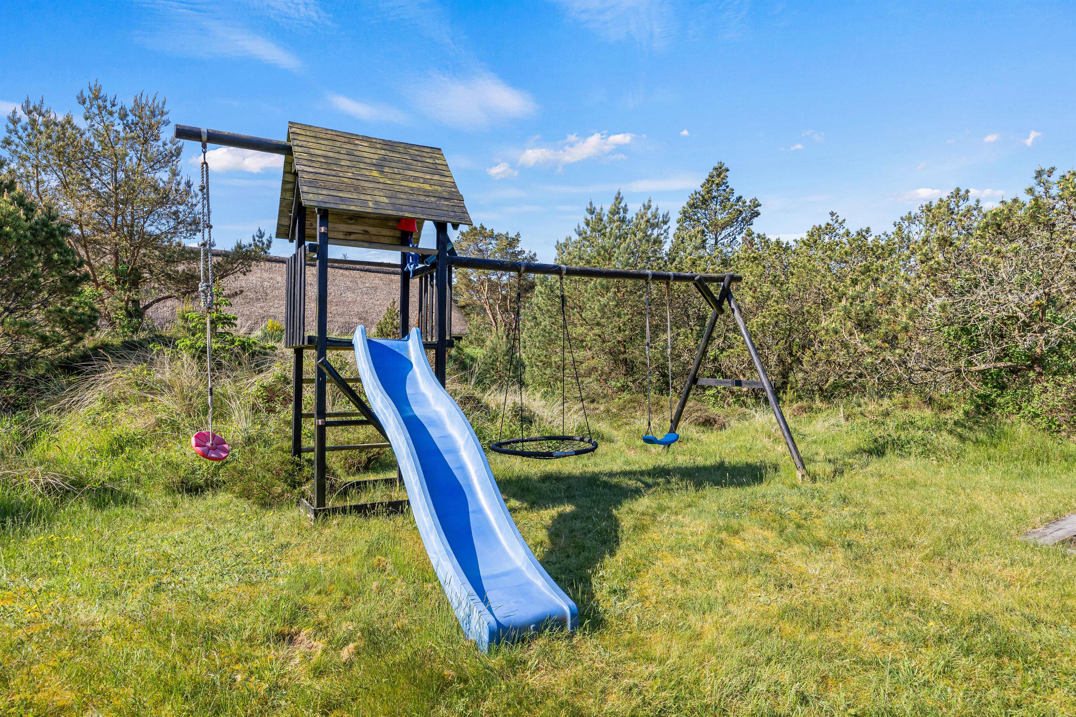 The outdoor area of this beautiful holiday home at Bakkedraget 30 is perfect for enjoying your holiday. Whatever the weather, you can relax in the covered section of the terrace, enjoy a freshly brewed coffee and take in the views while the children play in the sandpit.