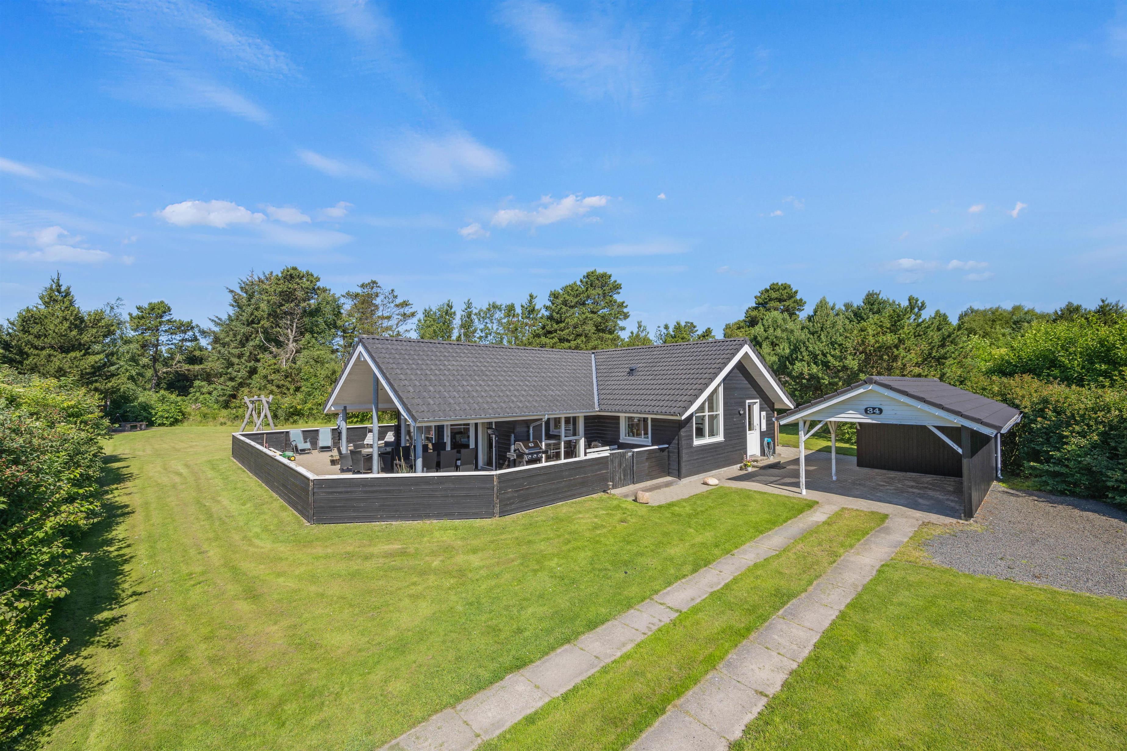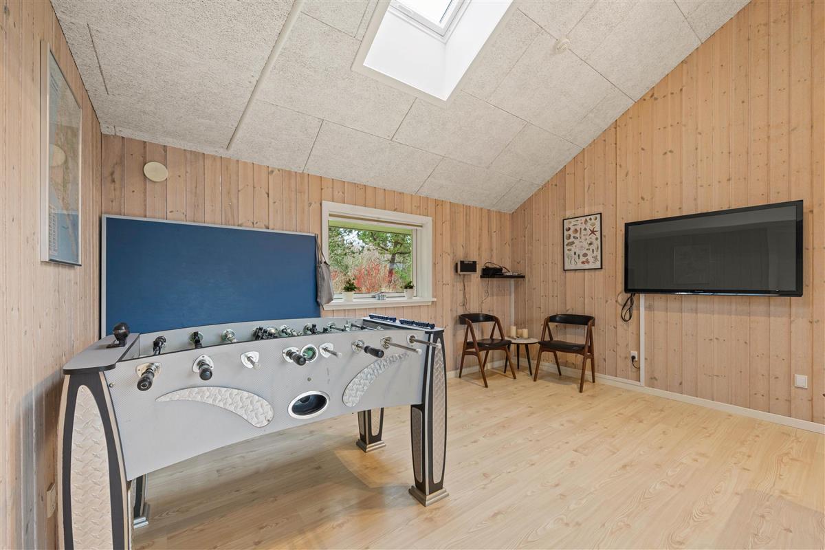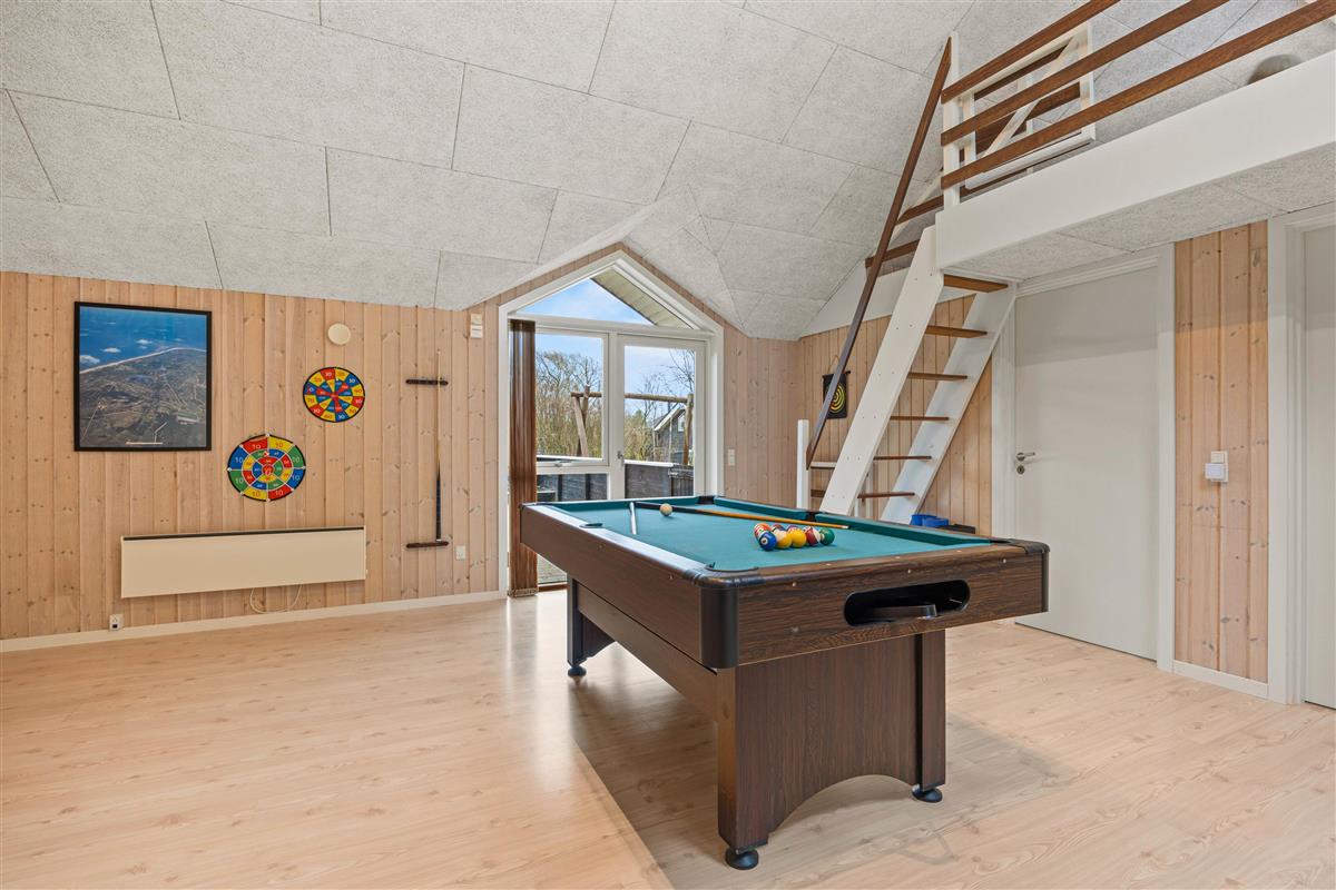 This lovely holiday home for 8 people is ideally located, just a short distance from both the town centre and North Sea beach. Your two dogs are also welcome here. The holiday home at Hvidbjerg Strandvej 34 is perfect for families with children or holidays with friends. Both young and old can enjoy the pool table and table football, or relax in the sauna and whirlpool.