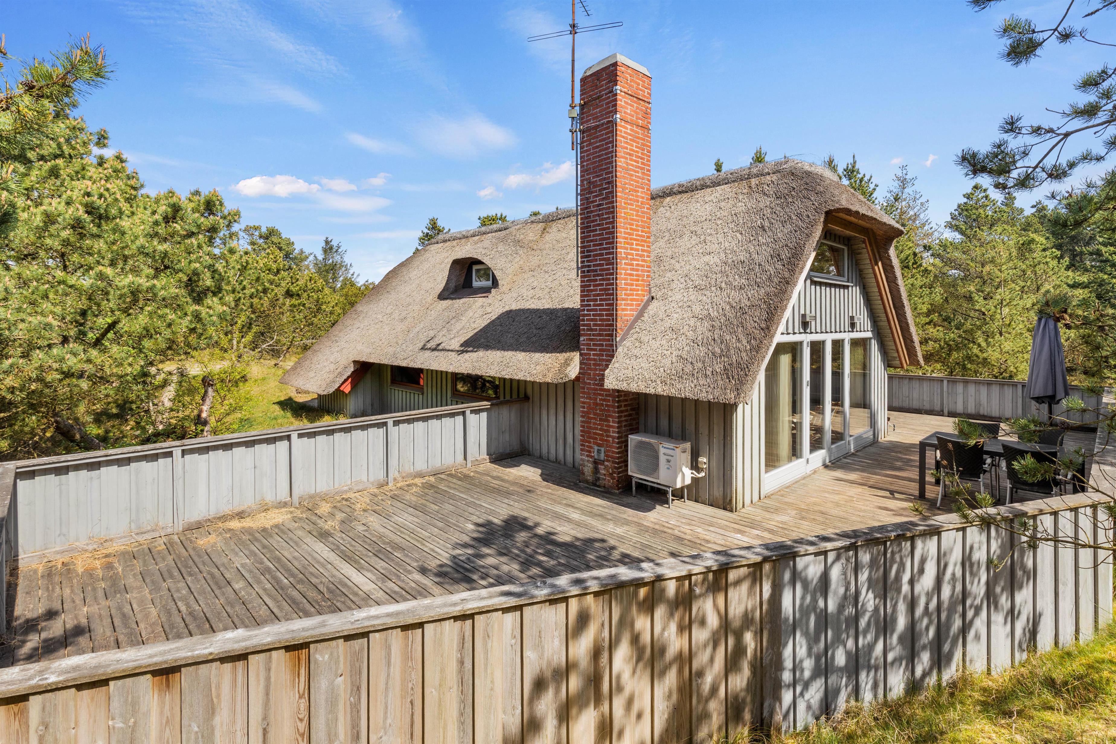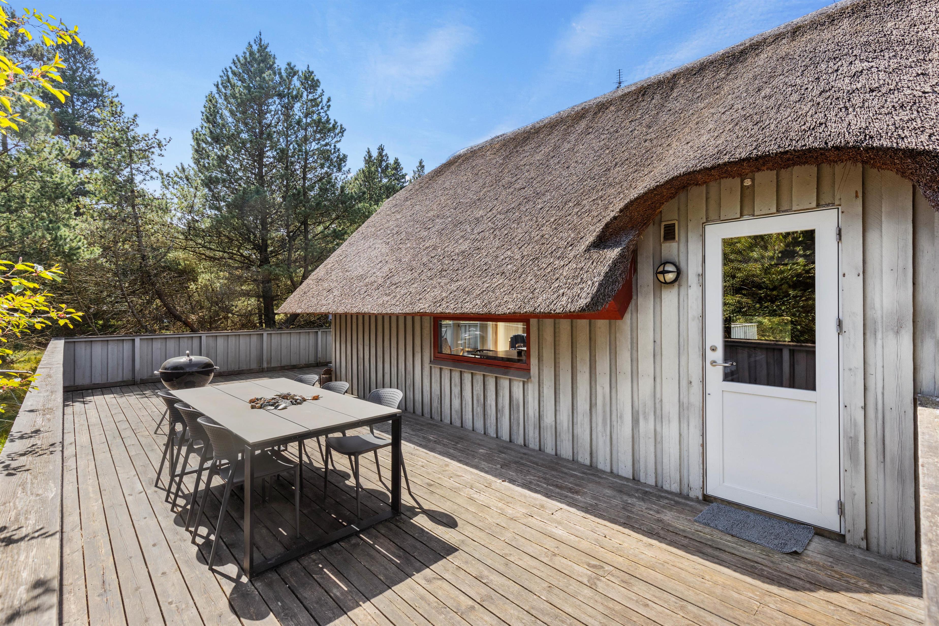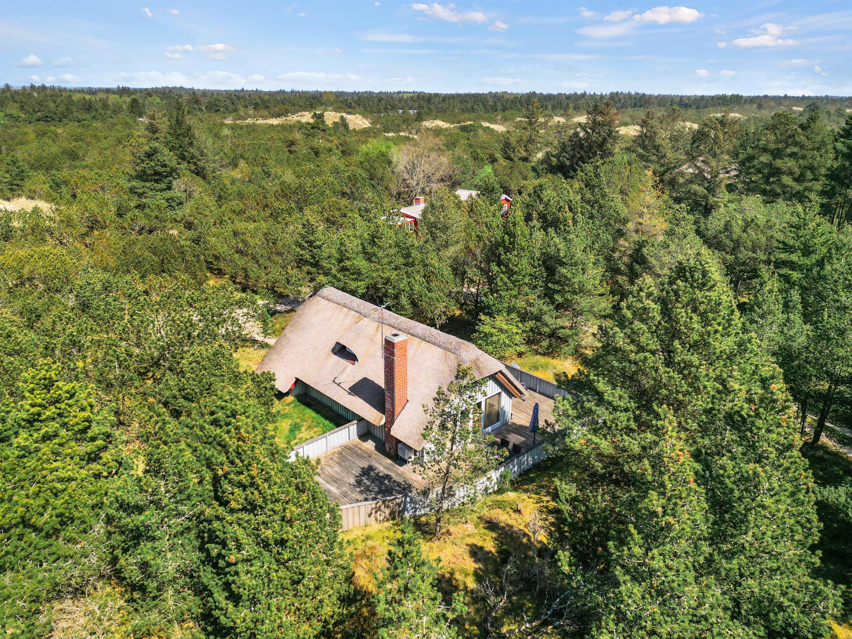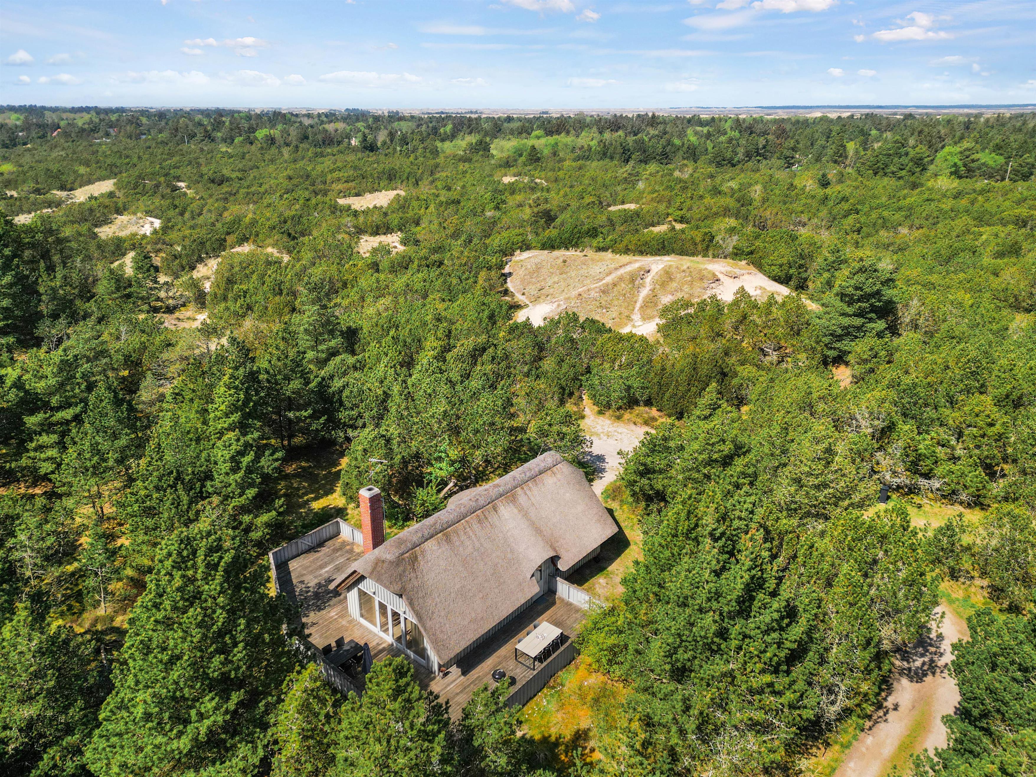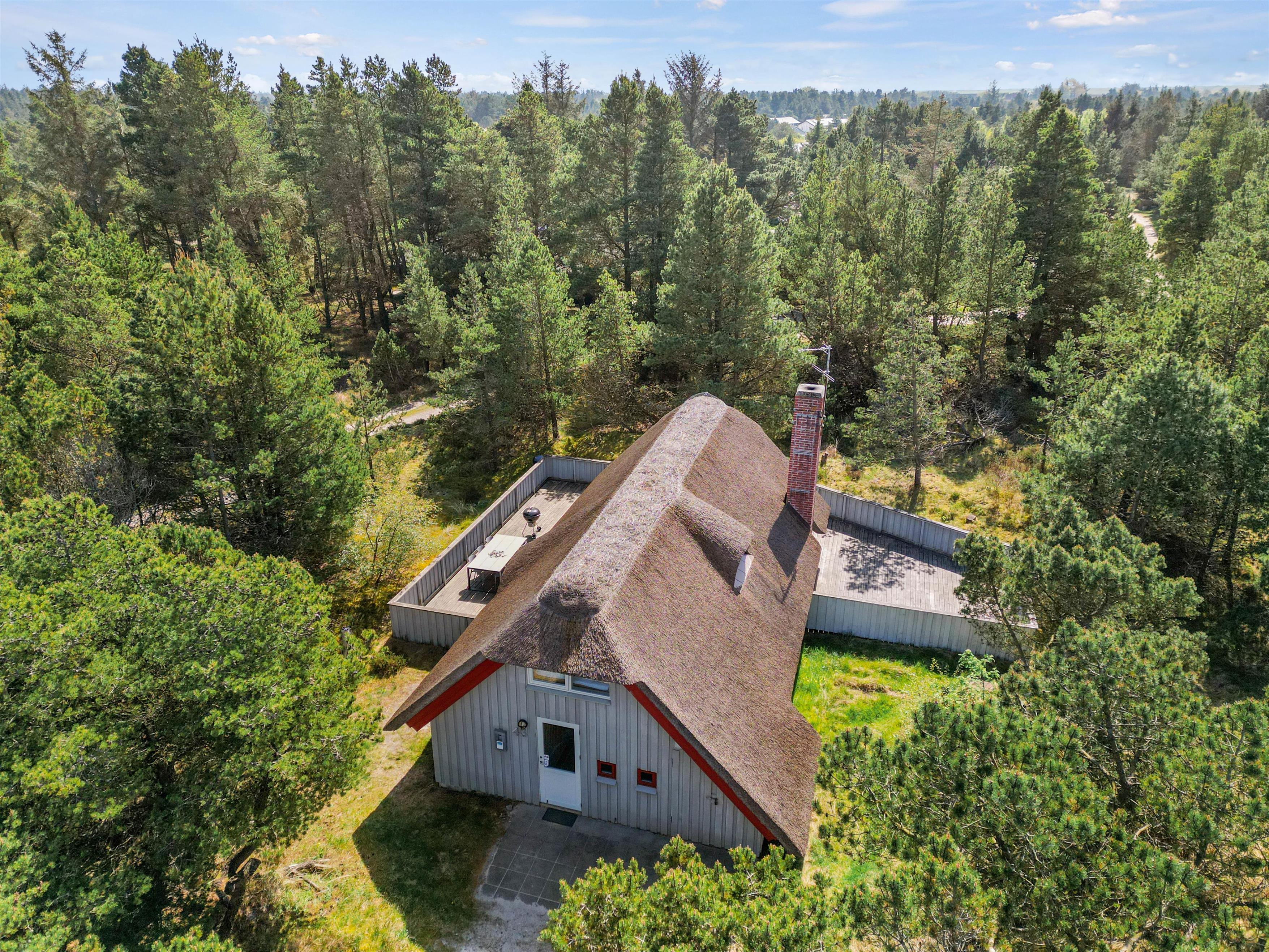 This cosy thatched holiday home at Søren Gades Mark 43 offers a homely atmosphere and sits on a peaceful natural plot surrounded by evergreens at the end of a quiet cul-de-sac. The holiday home accommodates up to 6 people and welcomes up to 2 dogs.