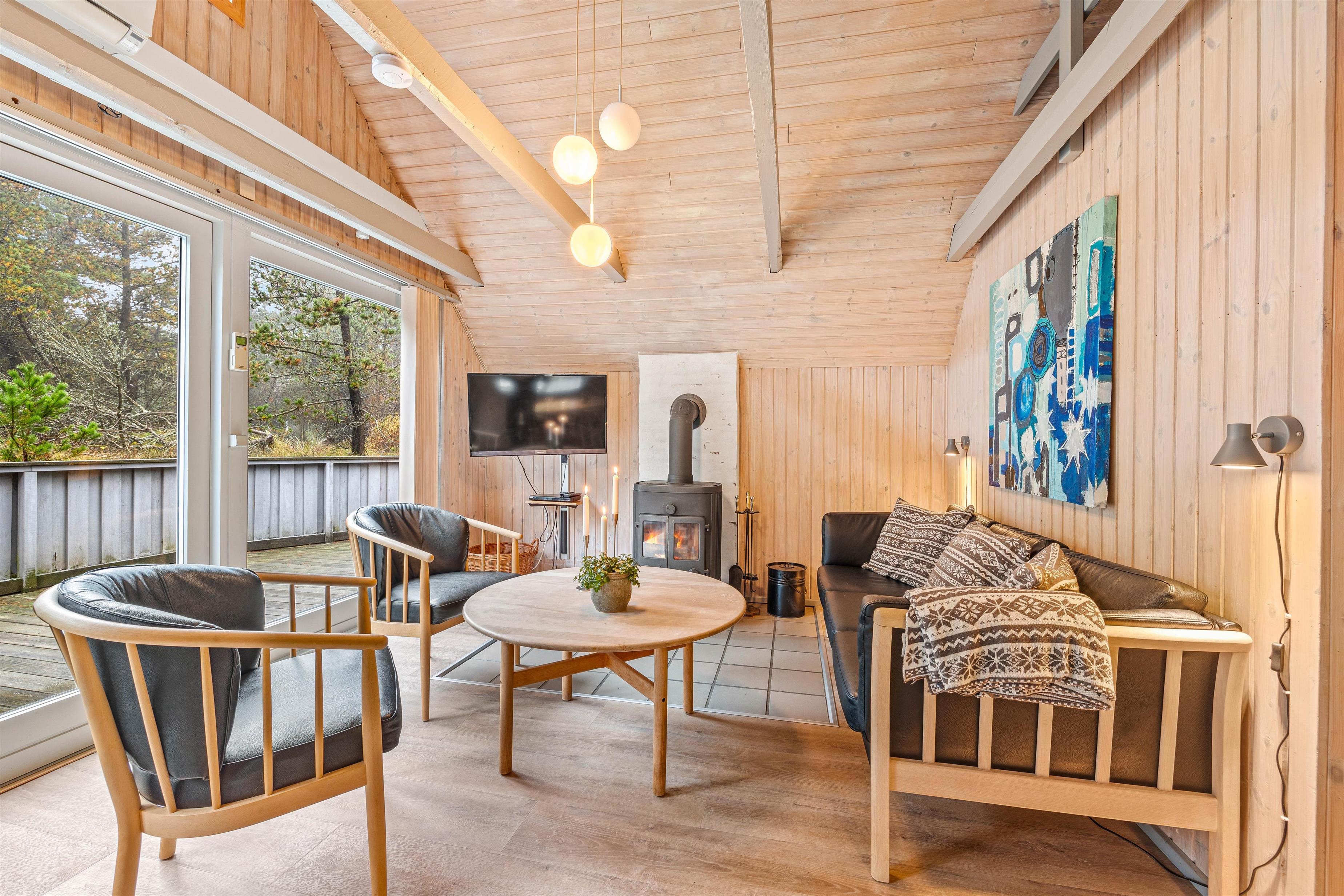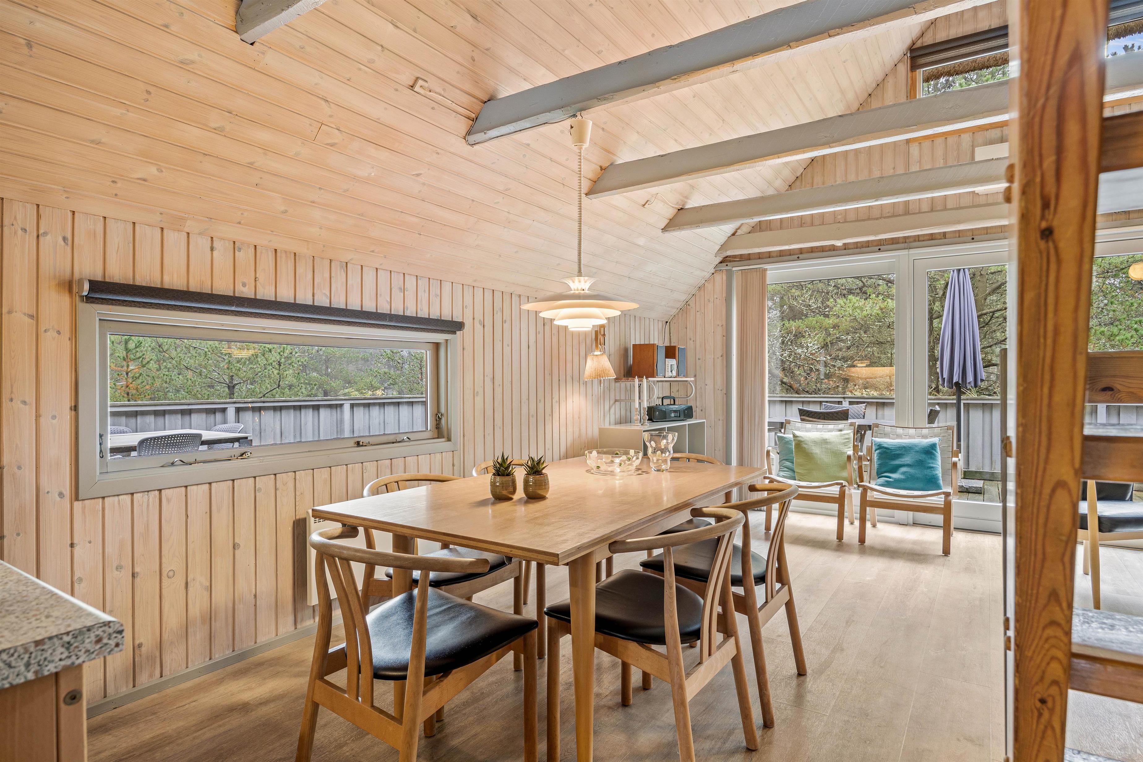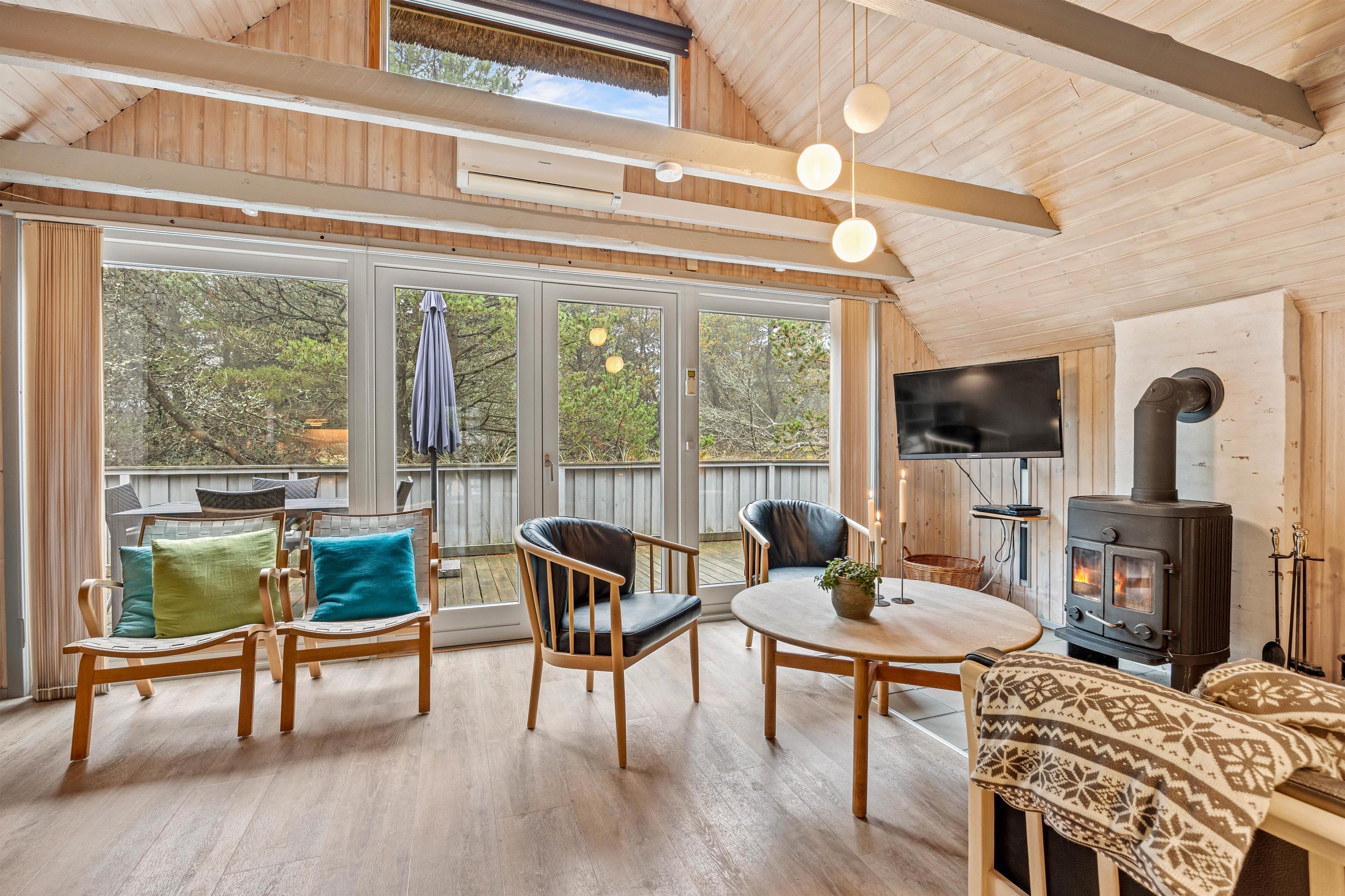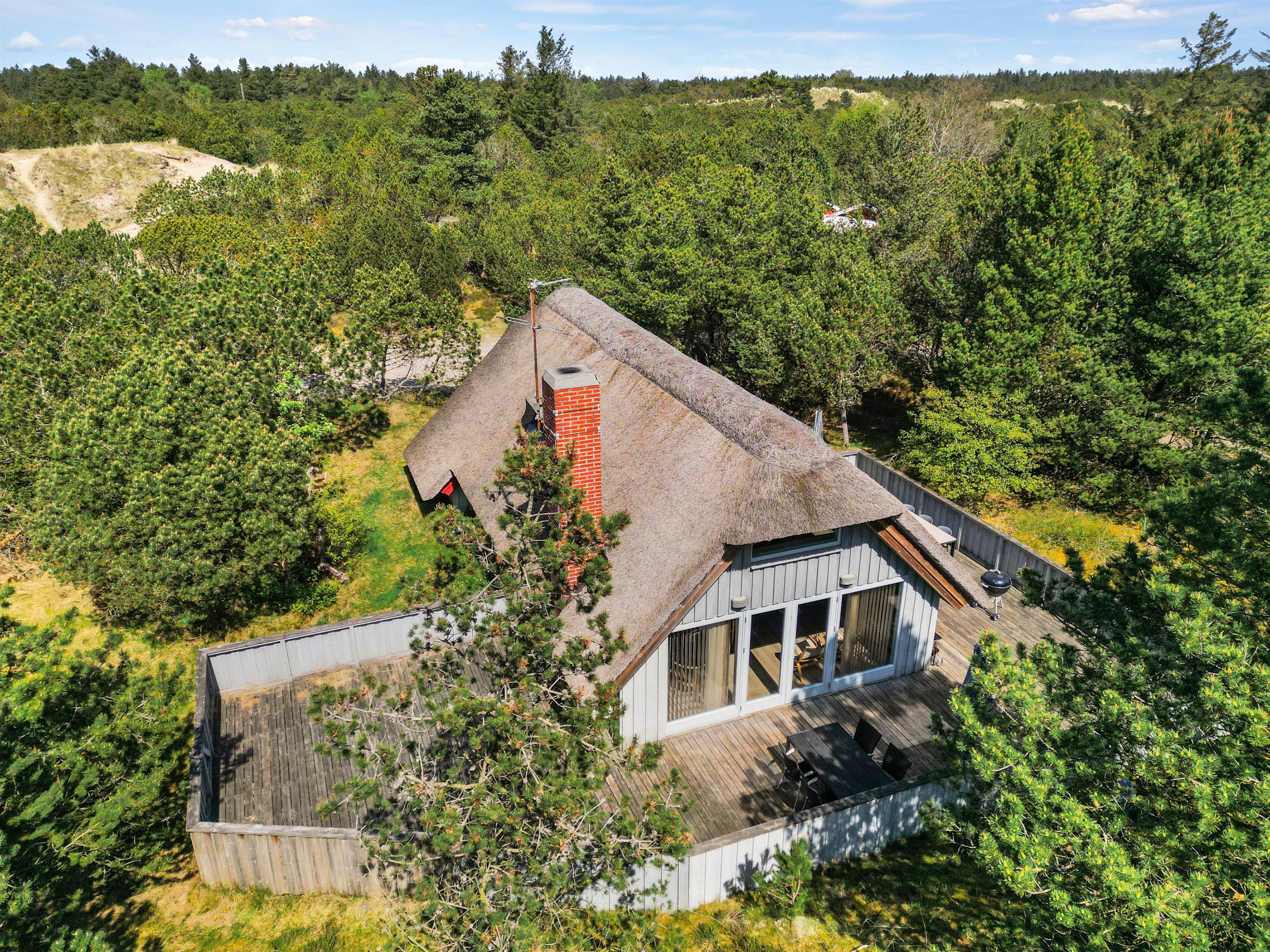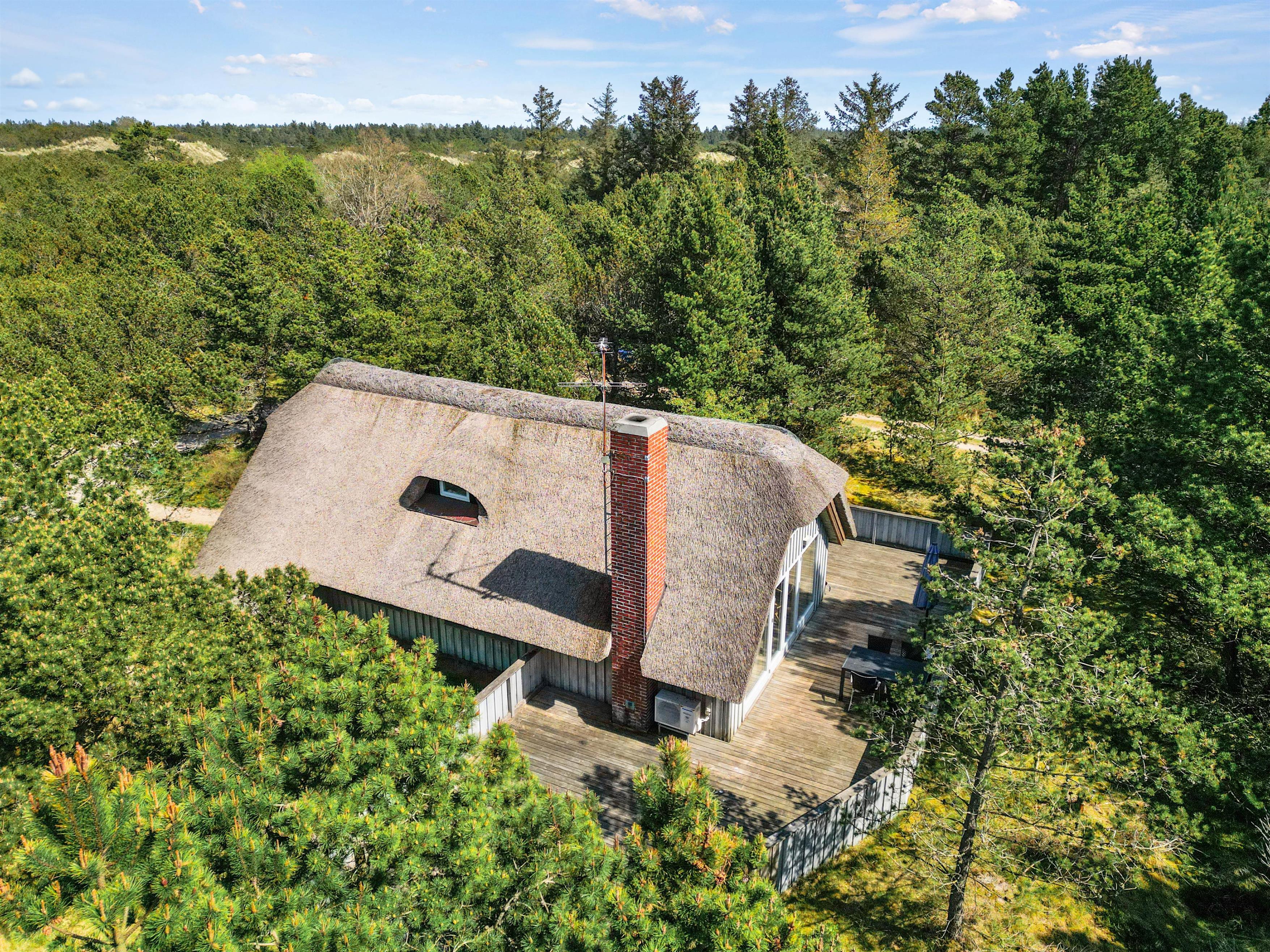 This cosy thatched holiday home at Søren Gades Mark 43 offers a homely atmosphere and sits on a peaceful natural plot surrounded by evergreens at the end of a quiet cul-de-sac. The holiday home accommodates up to 6 people and welcomes up to 2 dogs.