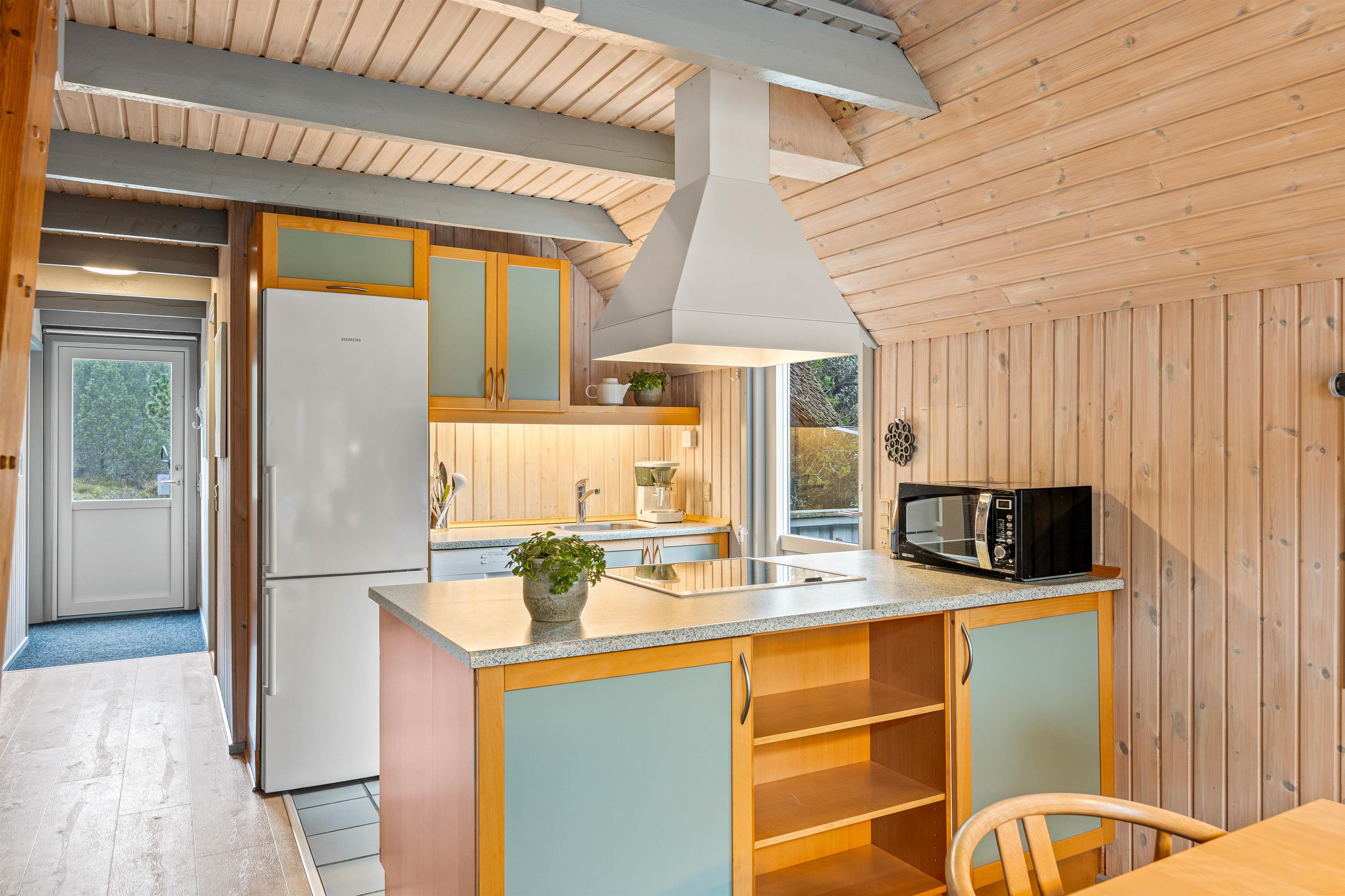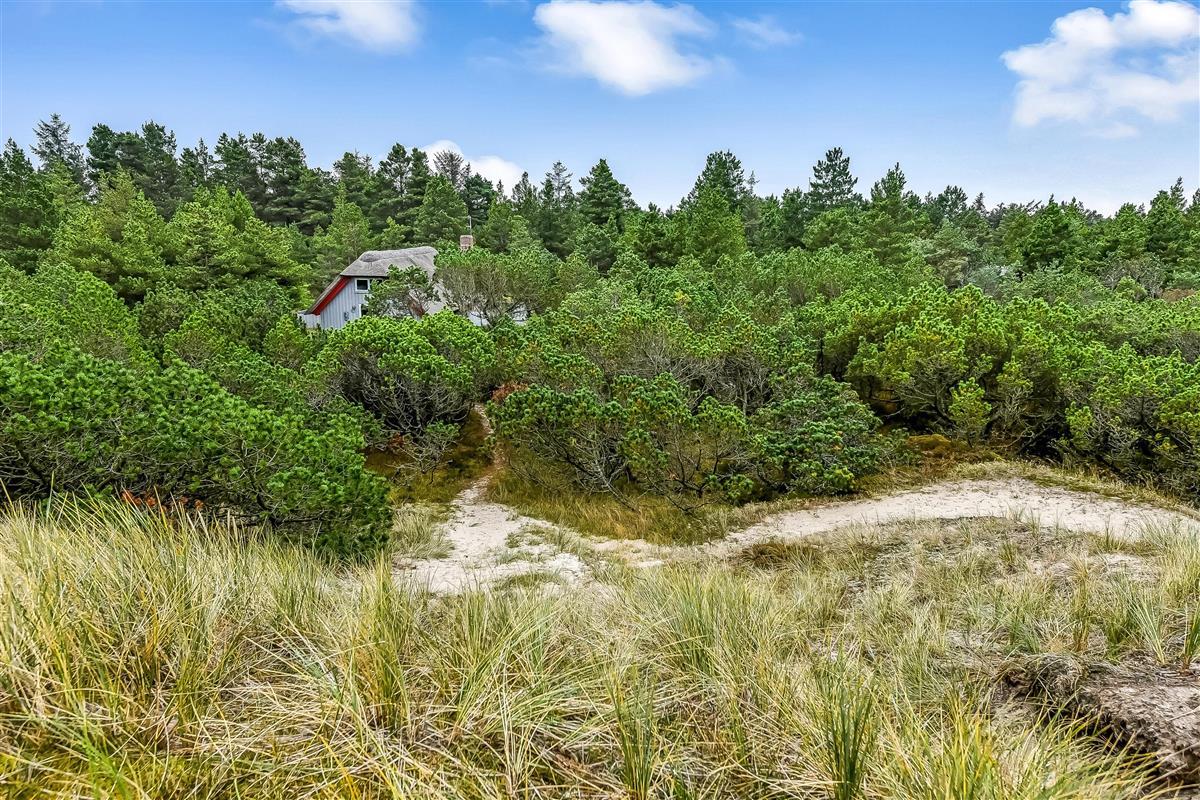 Behind the house, there's an elevated area offering splendid views across the green surroundings. Small paths lead through the beautiful natural environment to the North Sea beach, approximately 0.9 miles (1.5 km) away. For cycling enthusiasts, the area offers excellent opportunities for extended bike rides, and bicycles can be stored securely in the holiday home's shed afterwards.