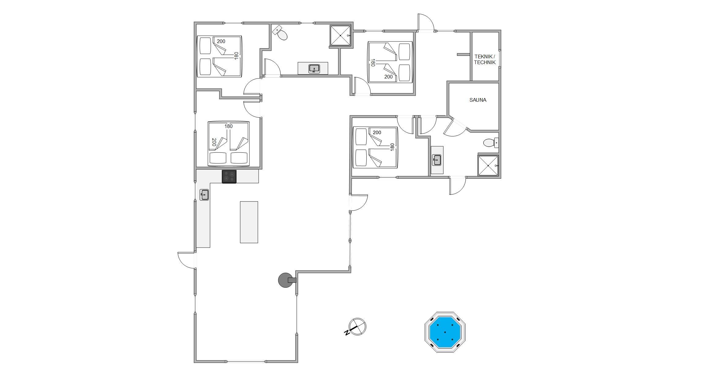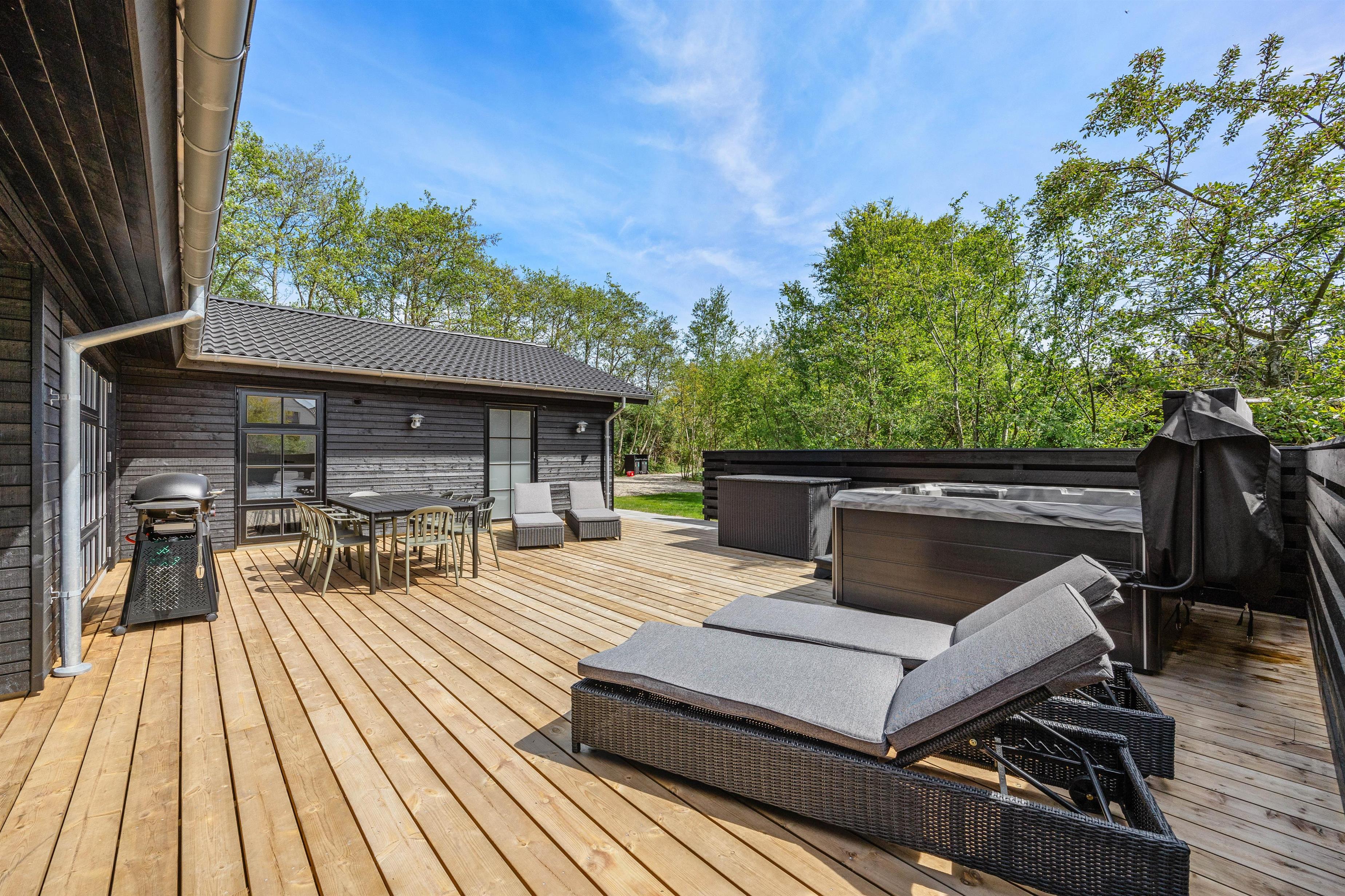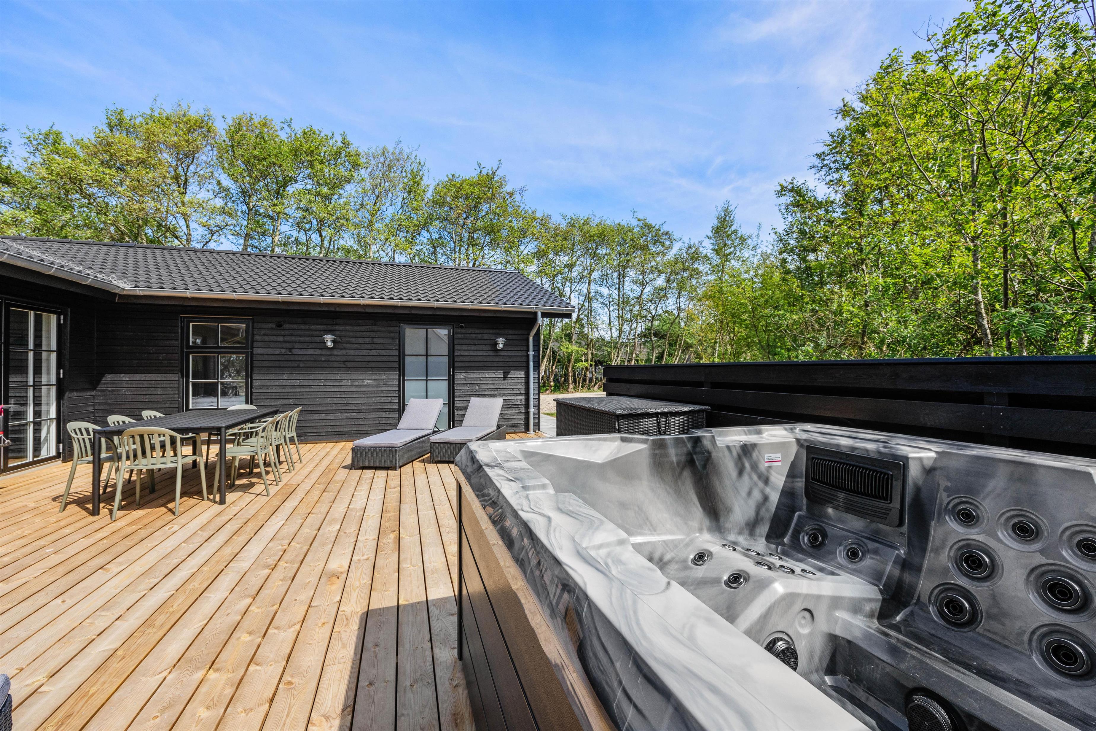 Families will particularly appreciate the sandbox for younger guests. The highlight of your holiday home is the luxurious outdoor hot tub, providing unforgettable wellness moments and helping you forget everyday stress.