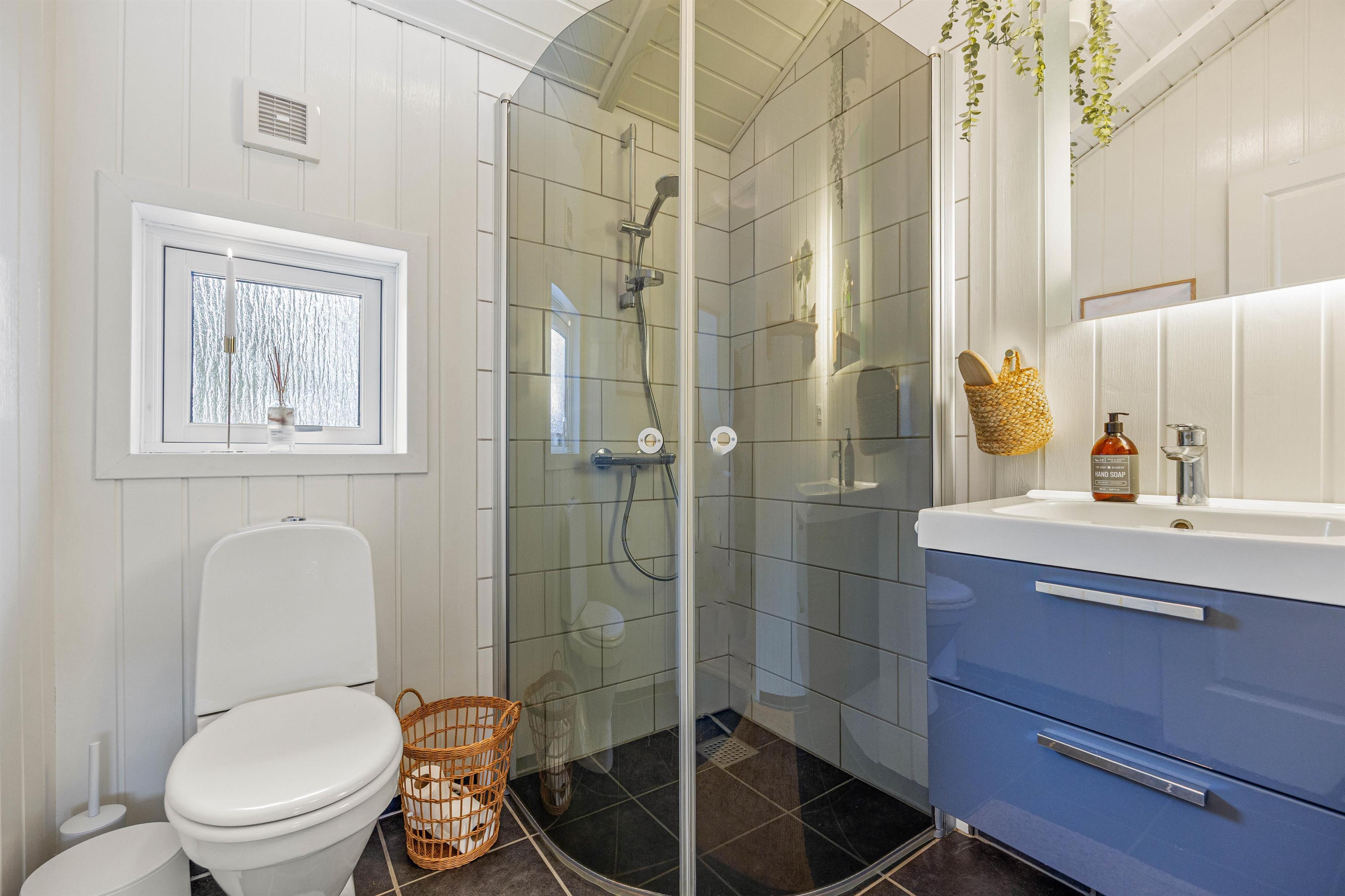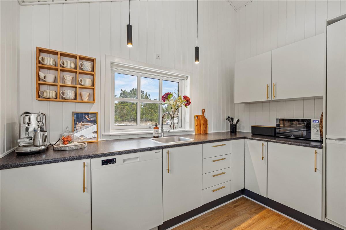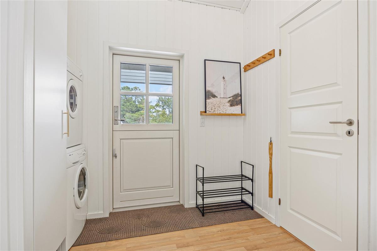 The holiday home is equipped with a bathroom with underfloor heating, and the kitchen has a dishwasher, so you don't have to worry about the worst of the cleaning up after meals. In the entrance hall, you will also find a practical washing machine.