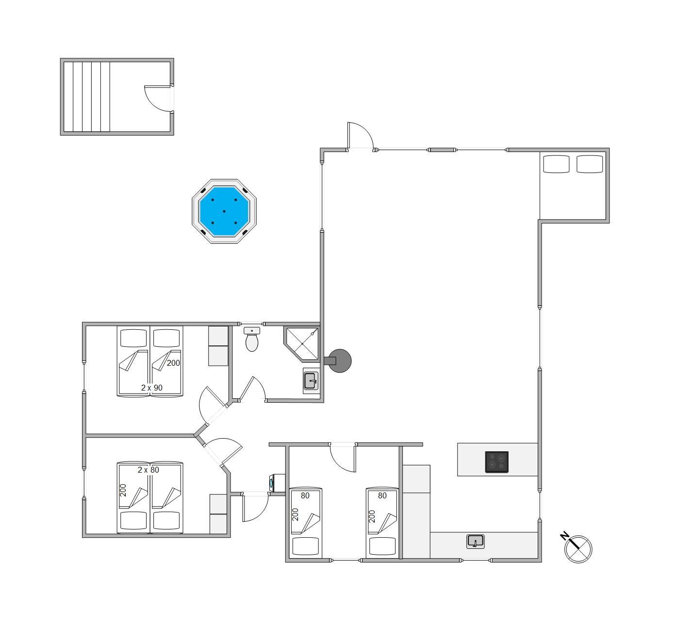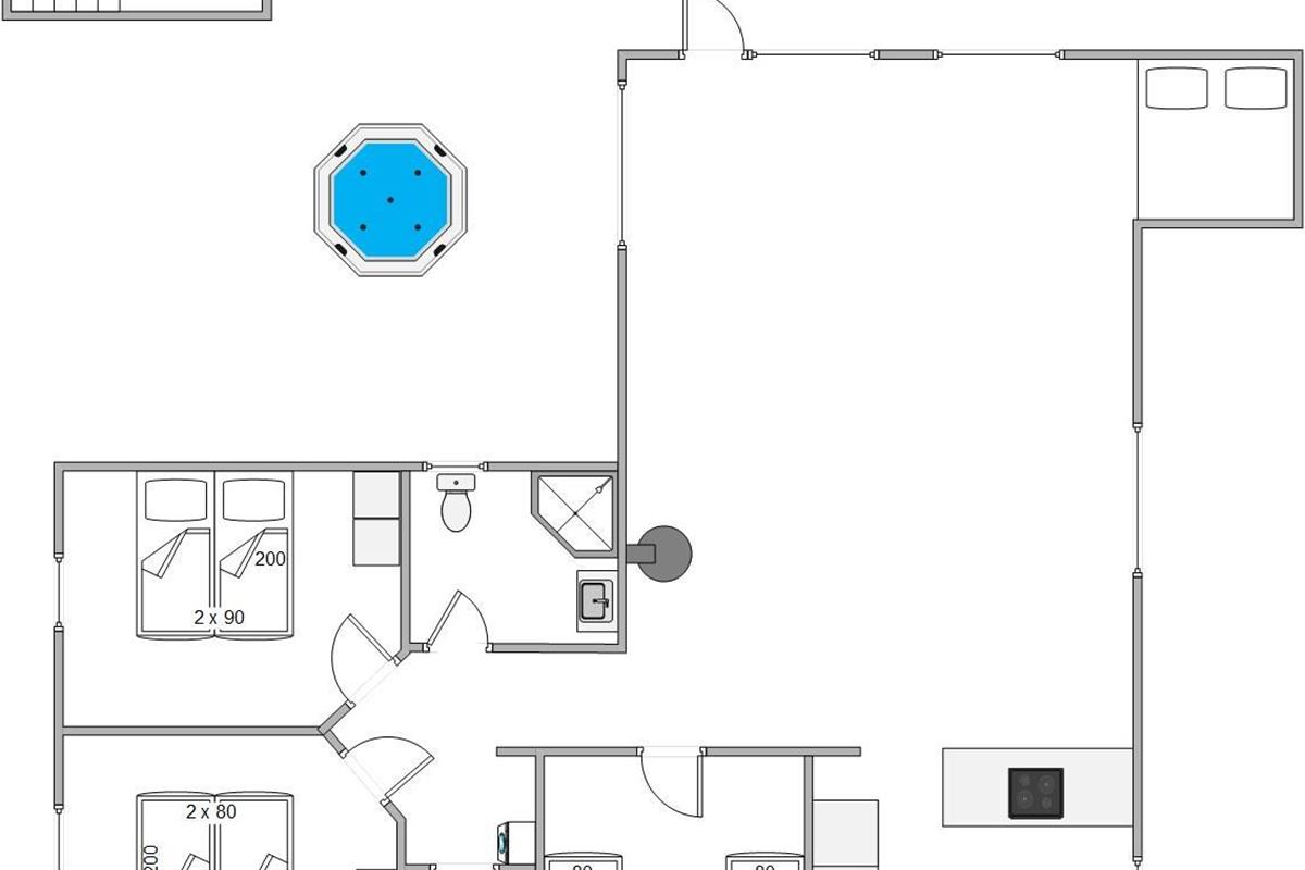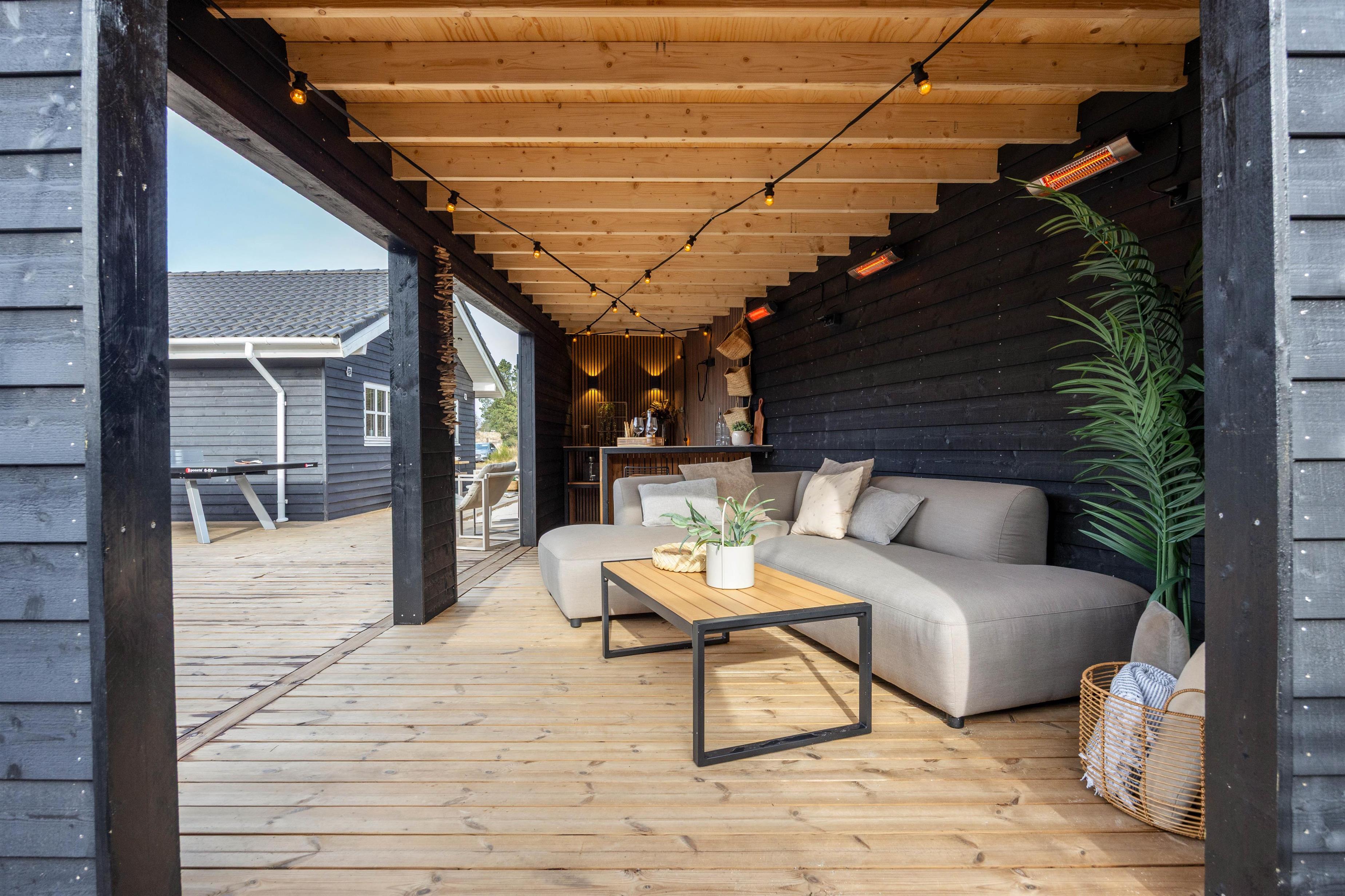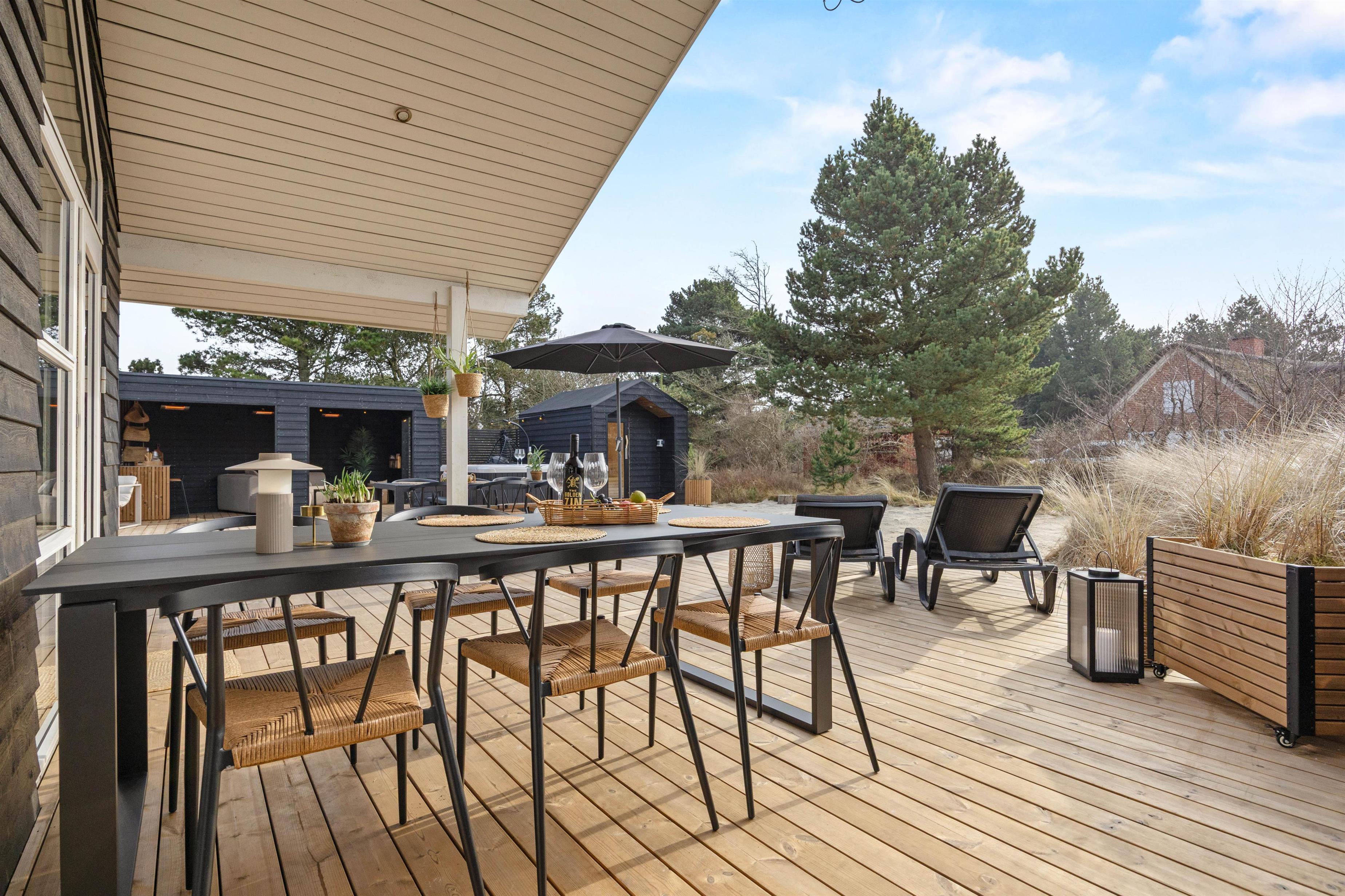 The outdoor area includes an outdoor spa, an outdoor sauna and outdoor table tennis for you to enjoy on the 170 m2 terrace, and here the children can also let off steam in the playground with its sandpit and swing, perhaps after a nice walk together on the beautiful beaches of Blåvand.