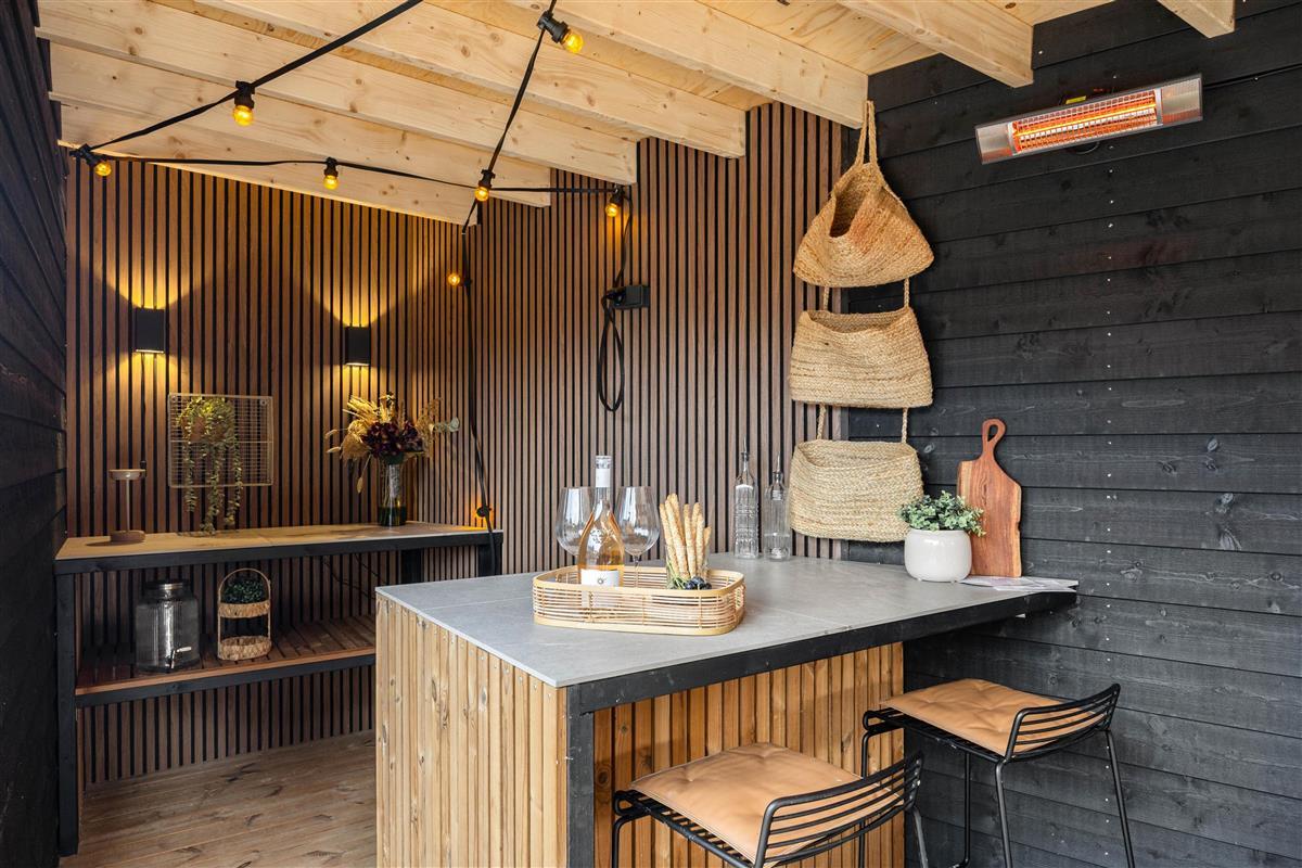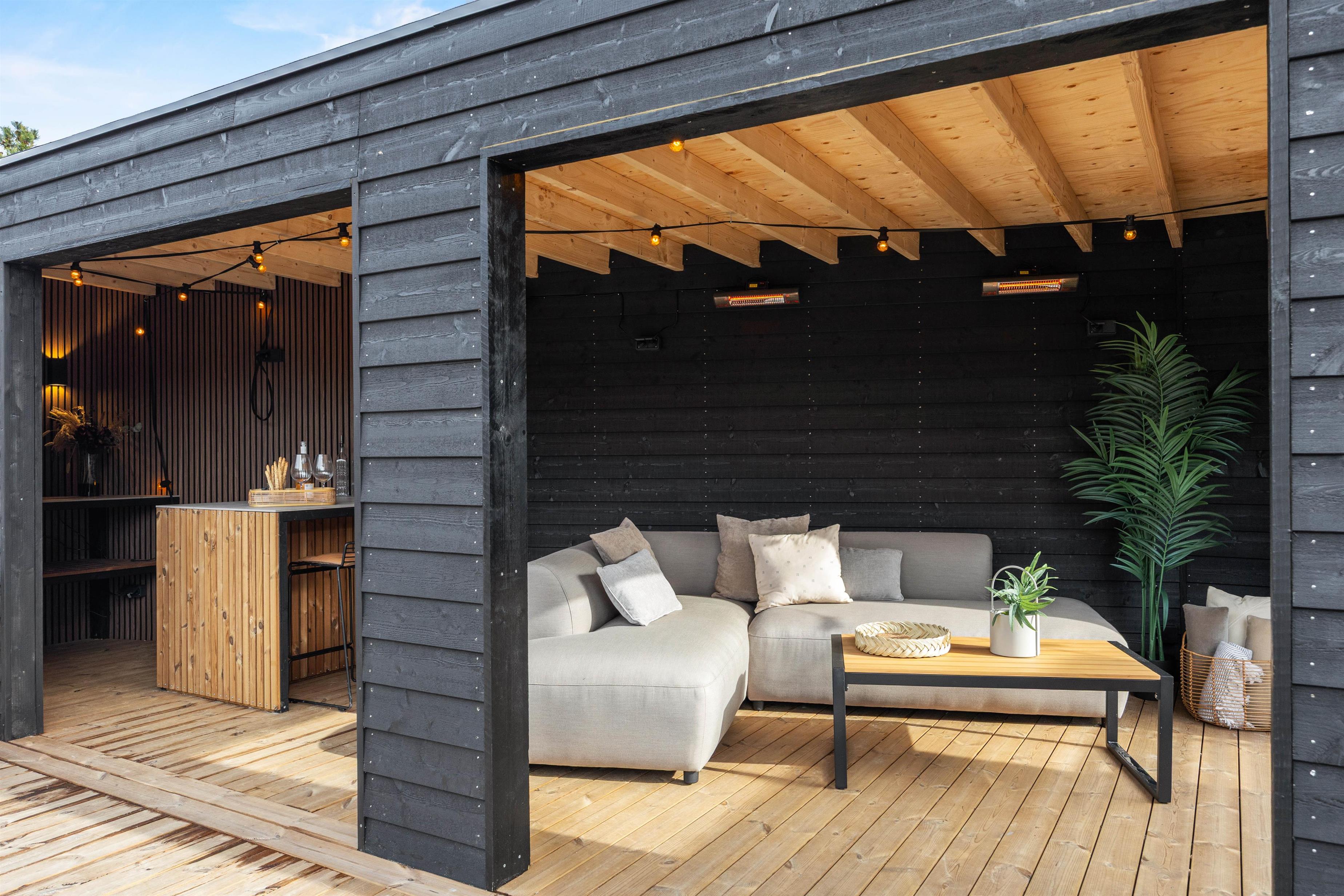 From the living room, you can access the large and versatile terrace, where you will also find a separate covered lounge area with a bar and a comfortable sofa, where you can relax in shelter from the rain and wind and find shade over a cool drink on sunny days. With the gas barbecue, you can easily and quickly prepare your holiday dinner, and on those lovely summer evenings, it is ideal to eat dinner around the garden table in the warm evening sun.