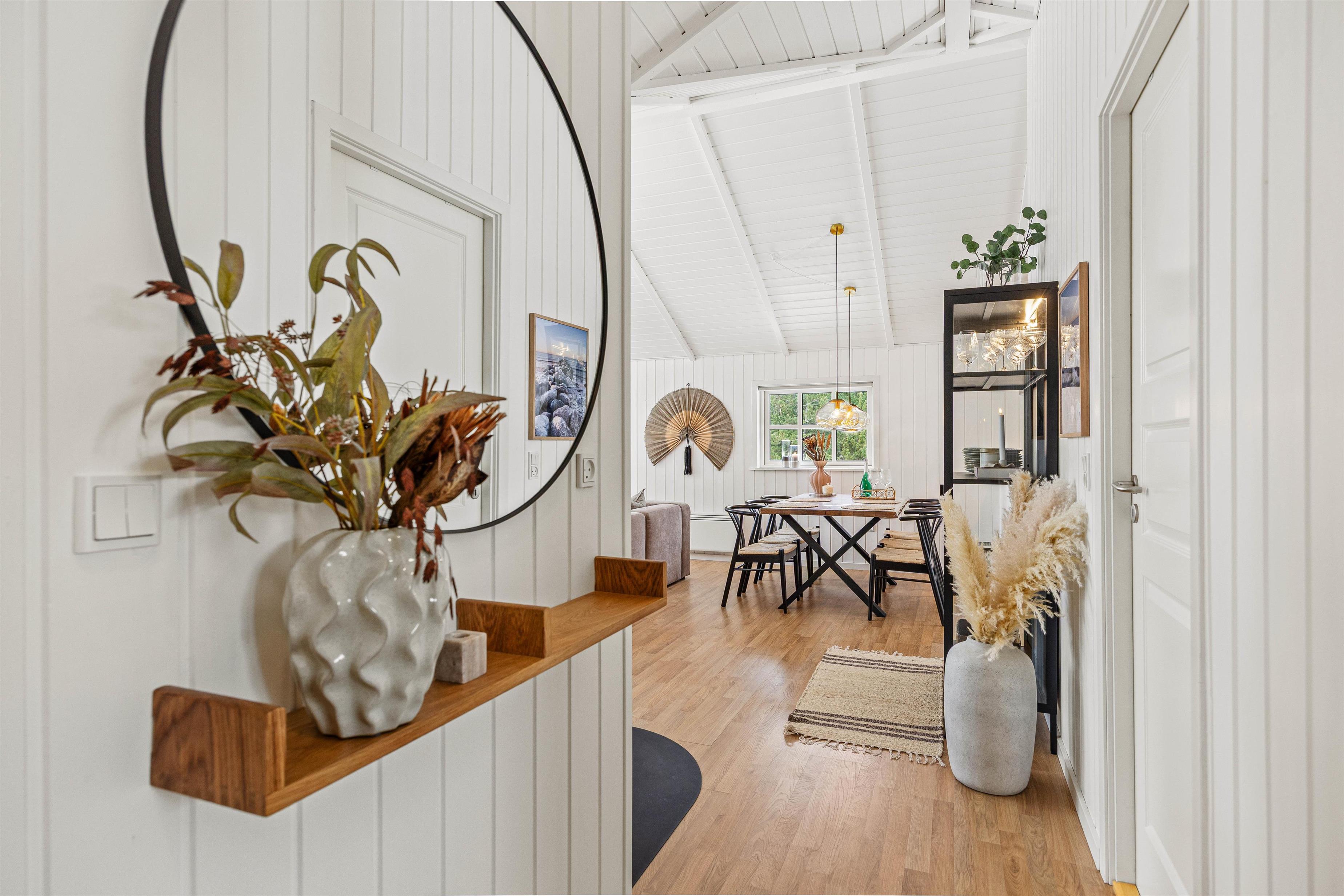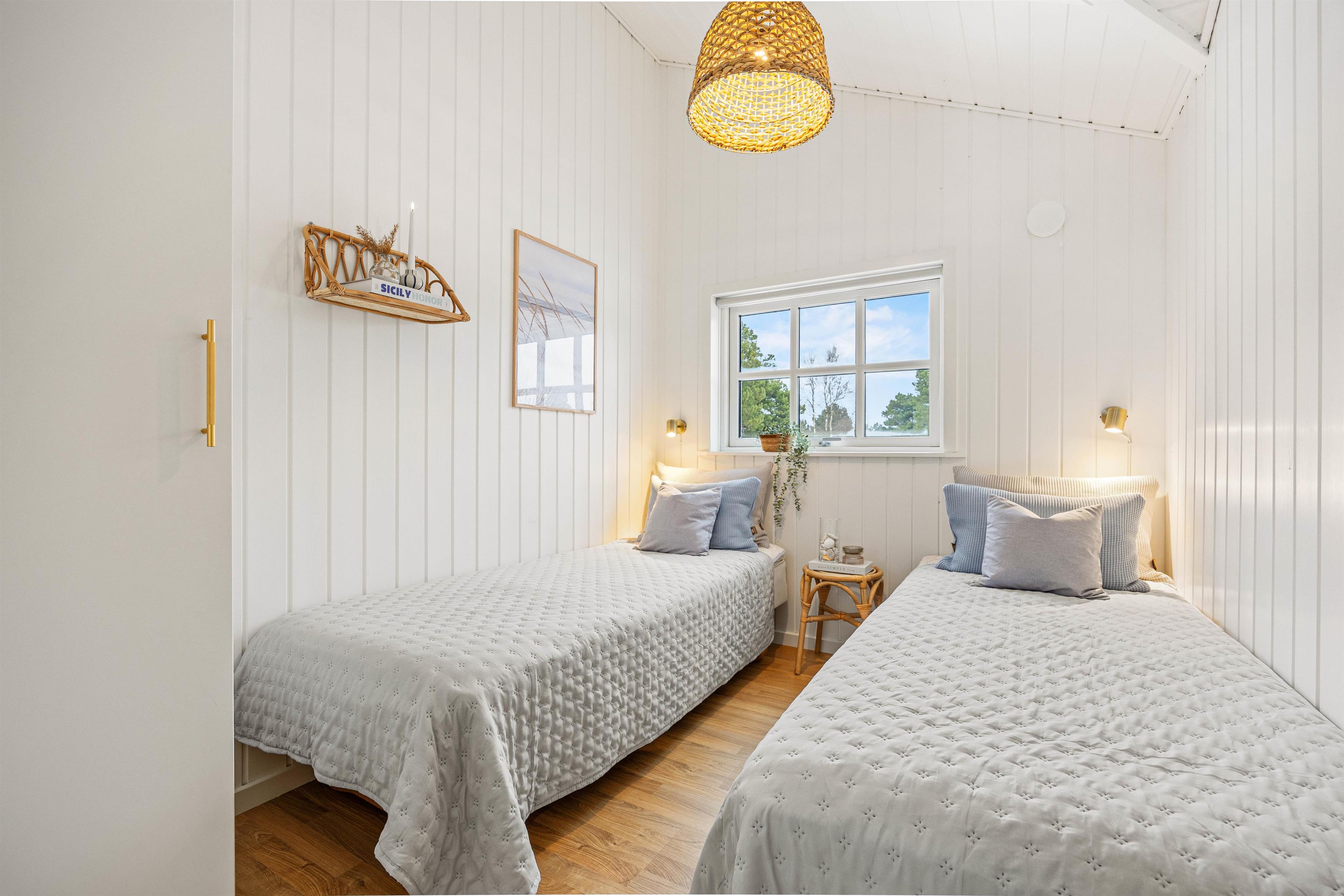 The charming wooden house at Pouls Bjerge immediately brings to mind a classic holiday home holiday by the North Sea. The holiday home can accommodate 6 people and is tastefully decorated, with high ceilings, light wood tones and large windows that let in light and nature.