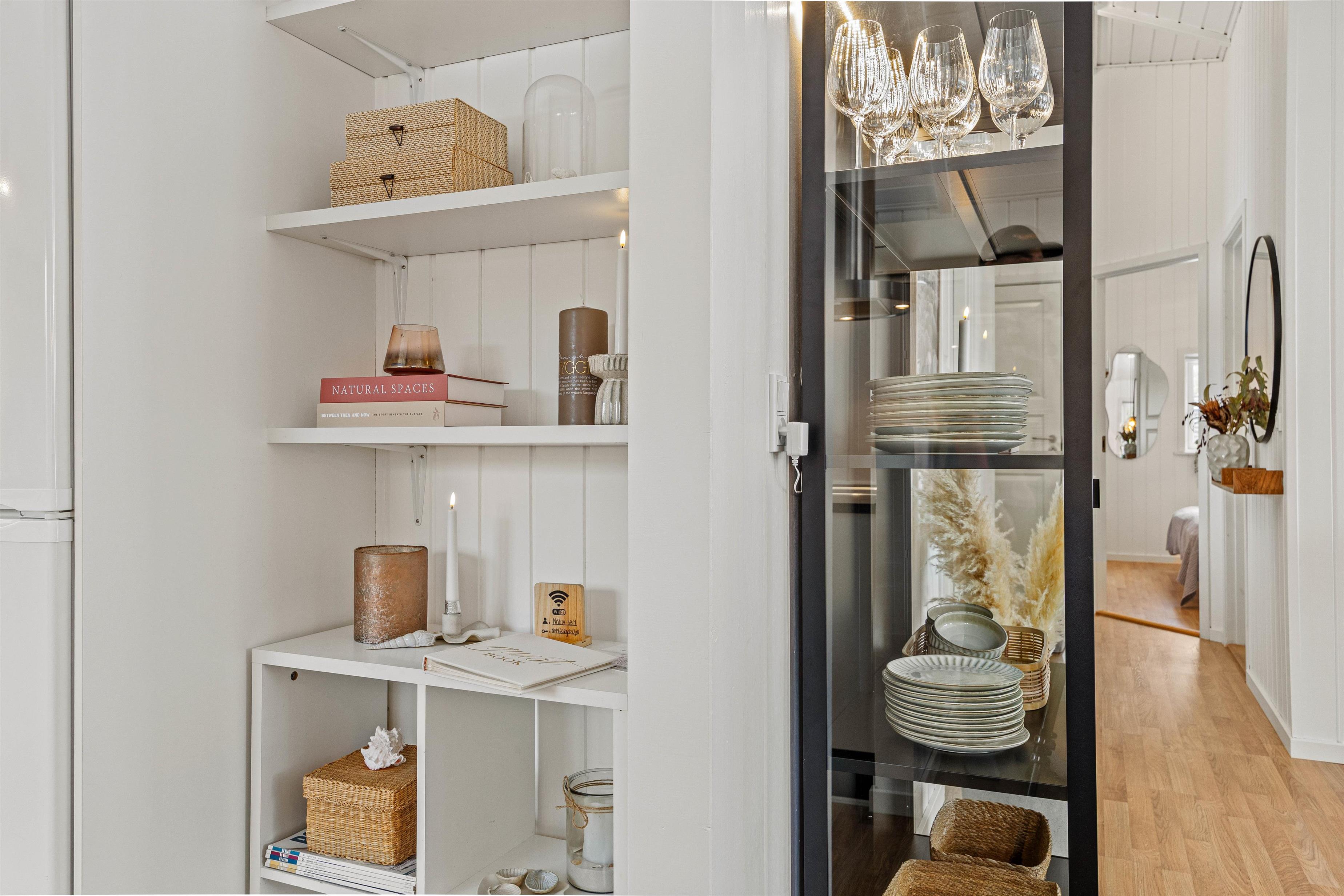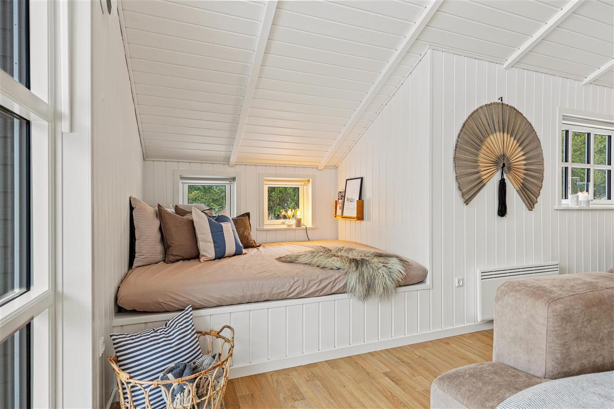 The living room is the heart of the holiday home and is guaranteed to be the gathering place during your holiday. Here you can gather for everything from cooking to cosy evenings on the sofa with the crackling flames of the wood-burning stove providing almost meditative background music. Two comfortable armchairs invite you to put your feet up and relax, and the small alcove is perfect for an afternoon nap or a quiet moment with a good book.