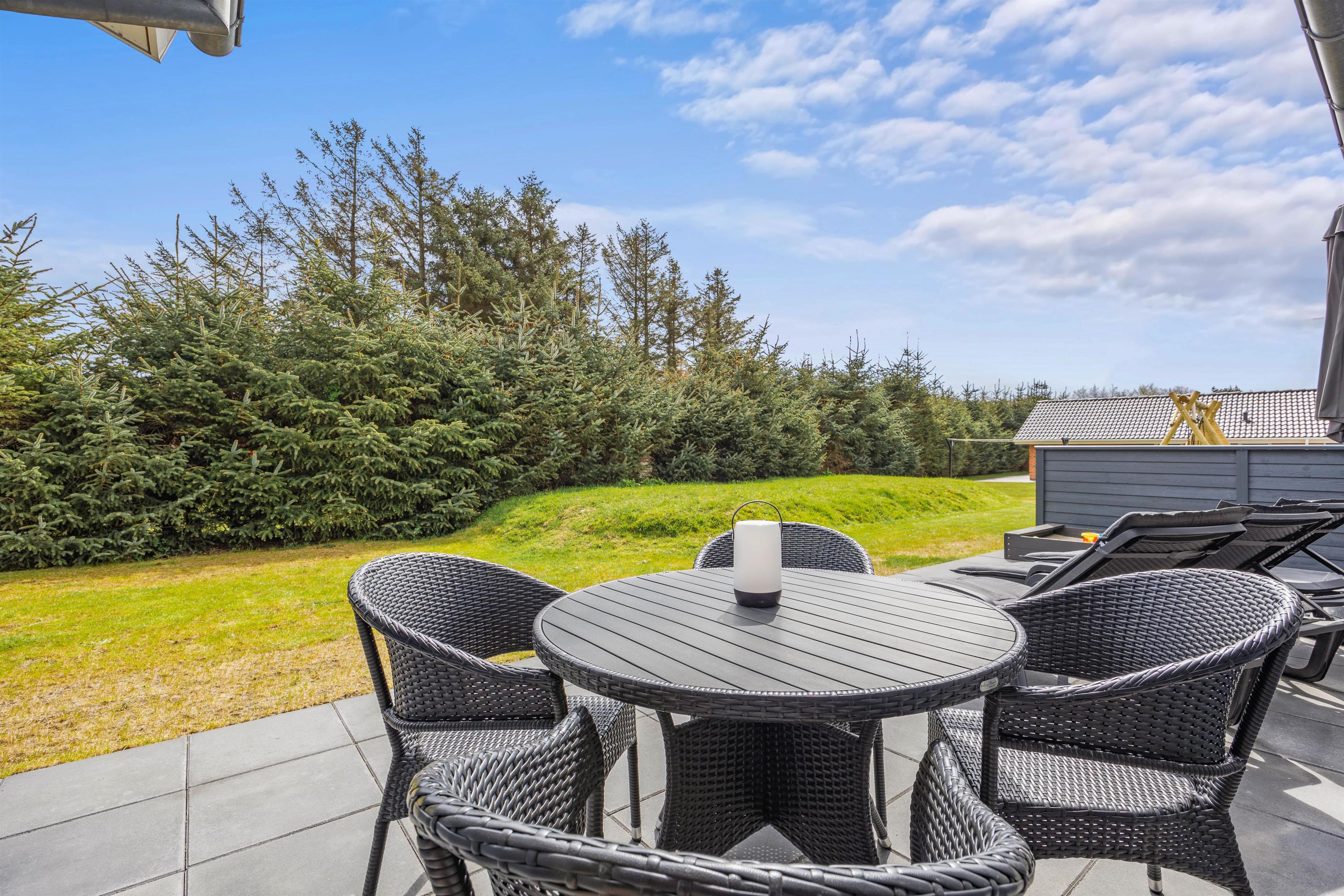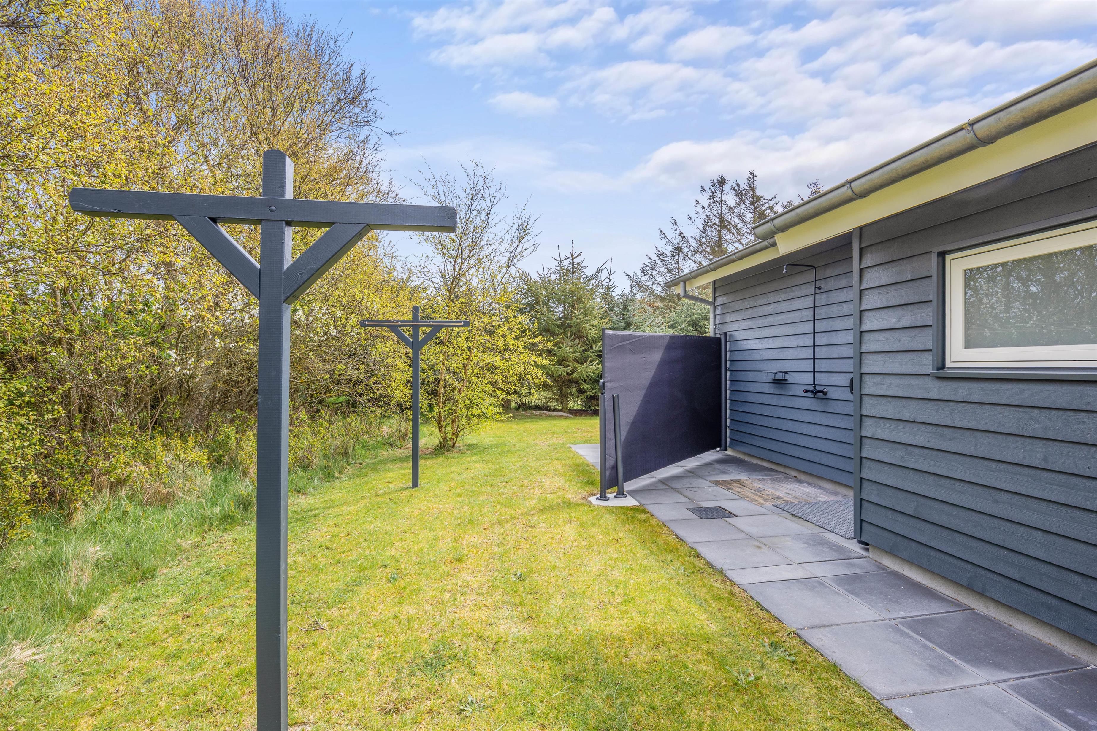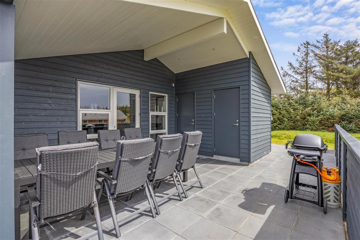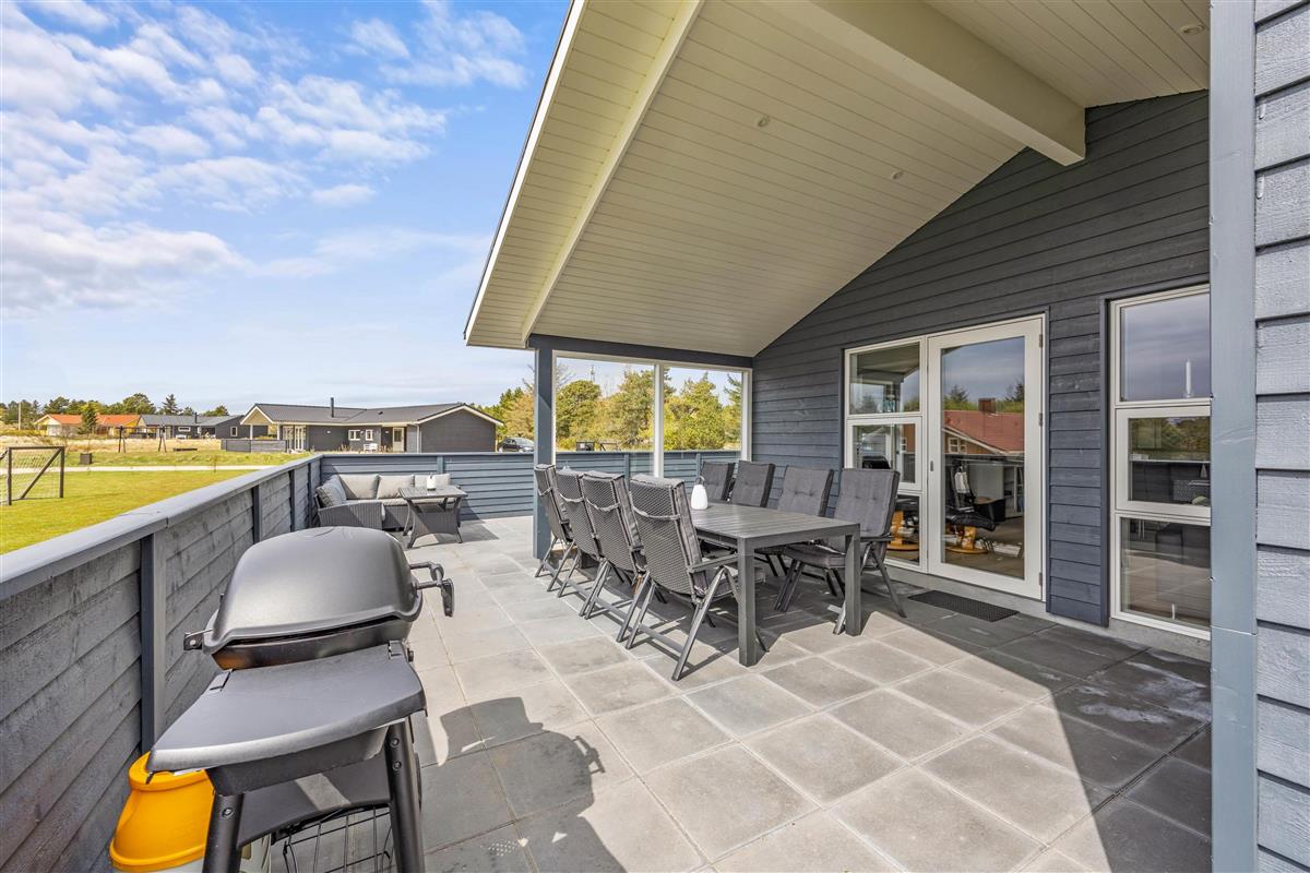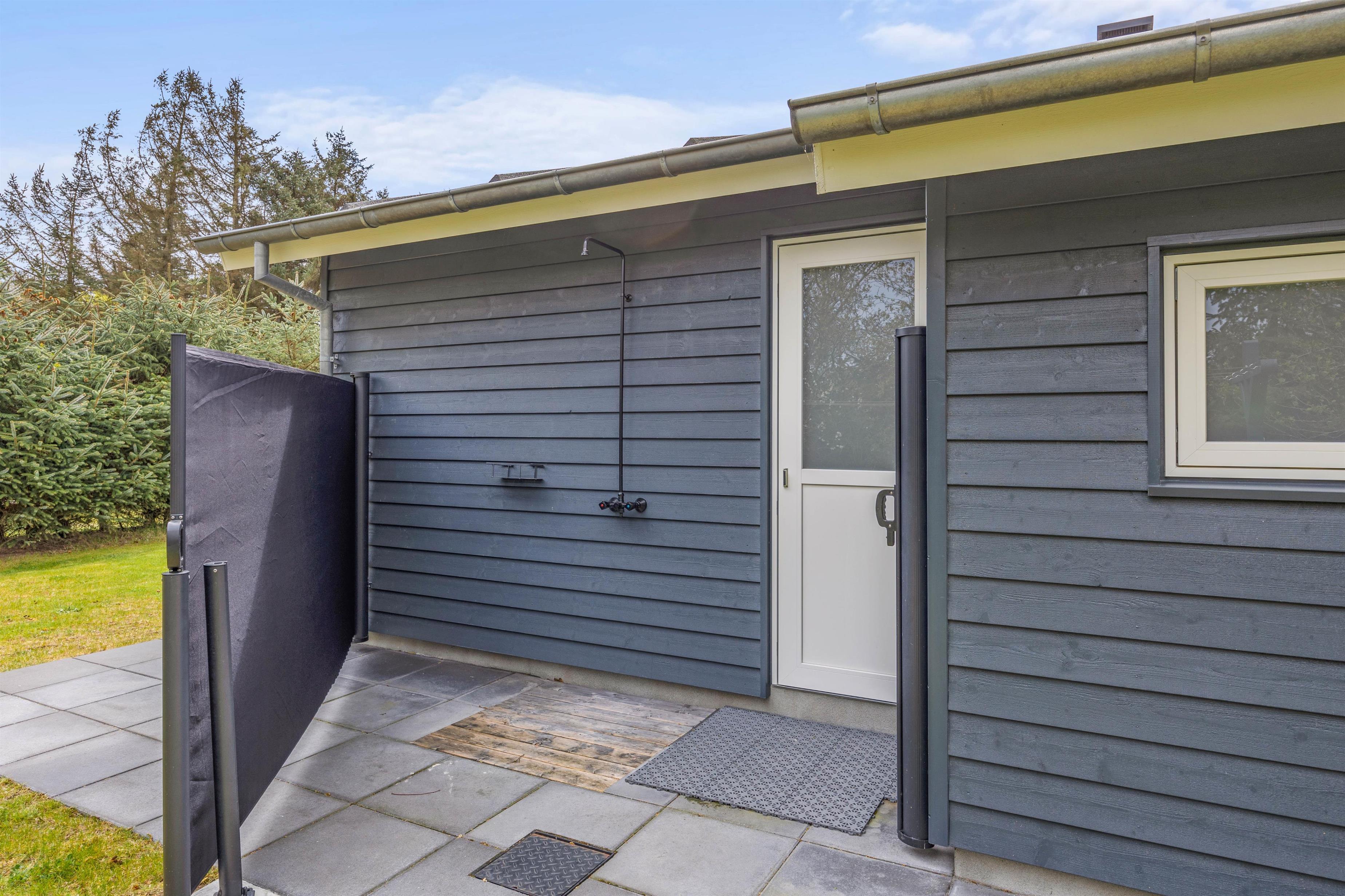 This five-star holiday home features a beautiful outdoor area. The screened terrace, with both covered and open sections, offers versatile options ensuring everyone's comfort when enjoying sunny days outdoors. There's also an outdoor shower, available for use from 1. April to 31. October.