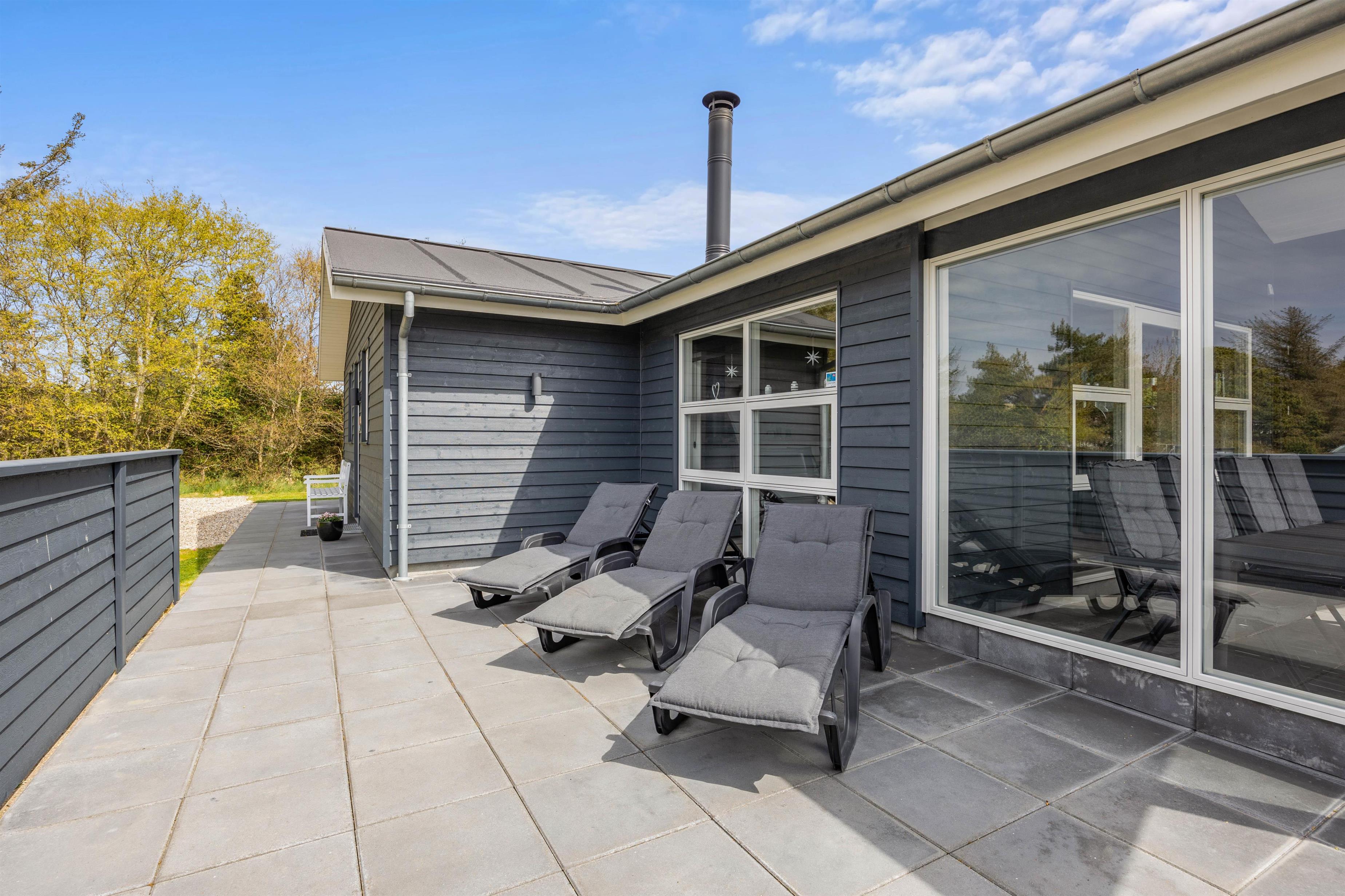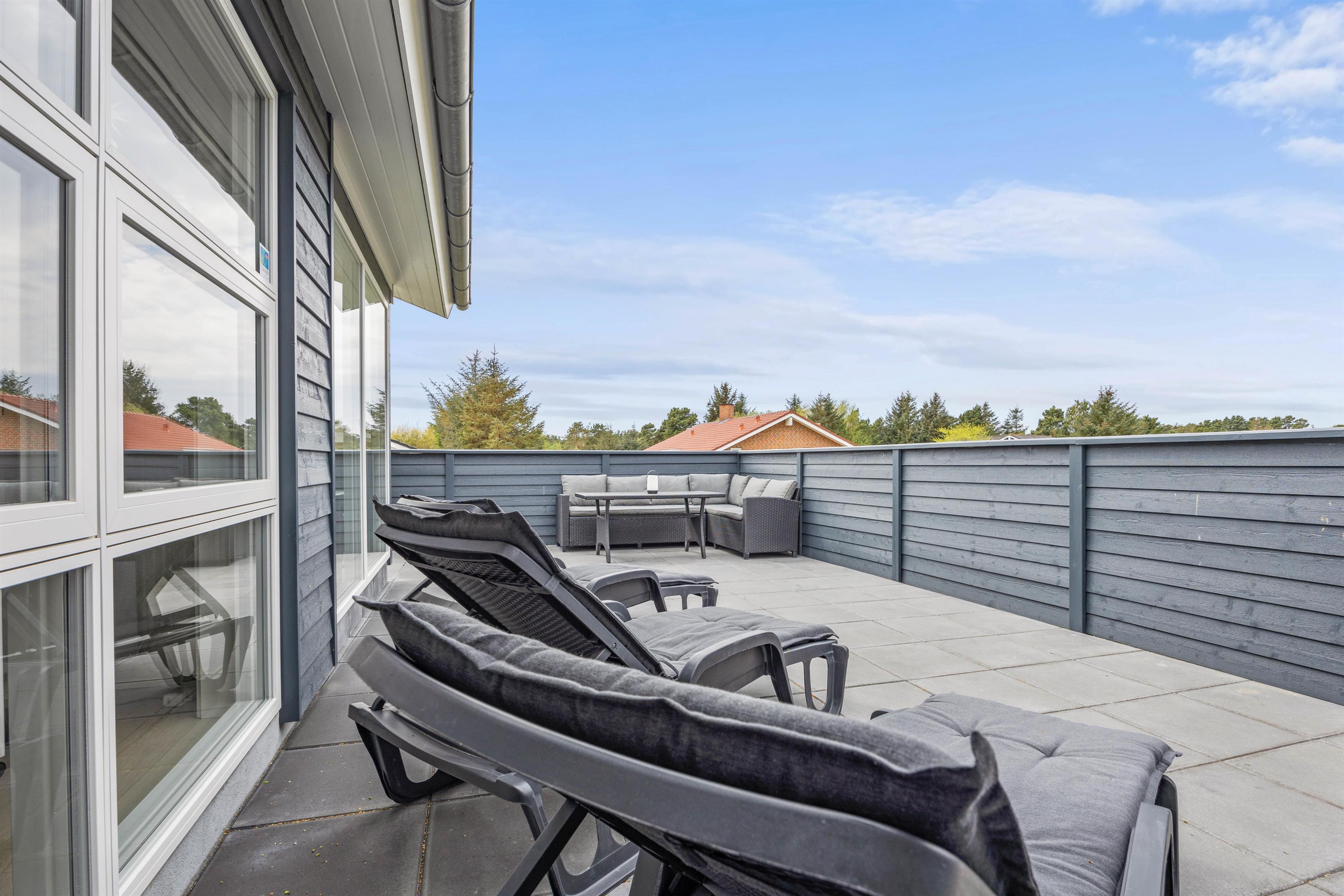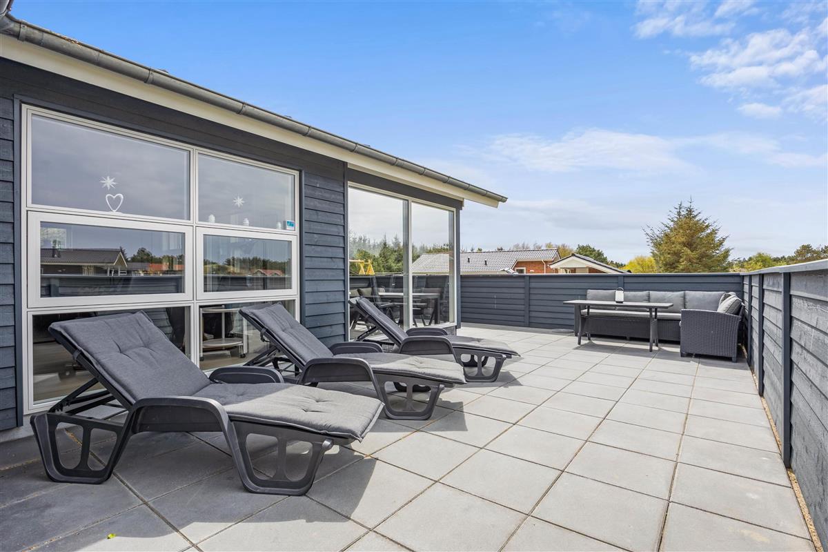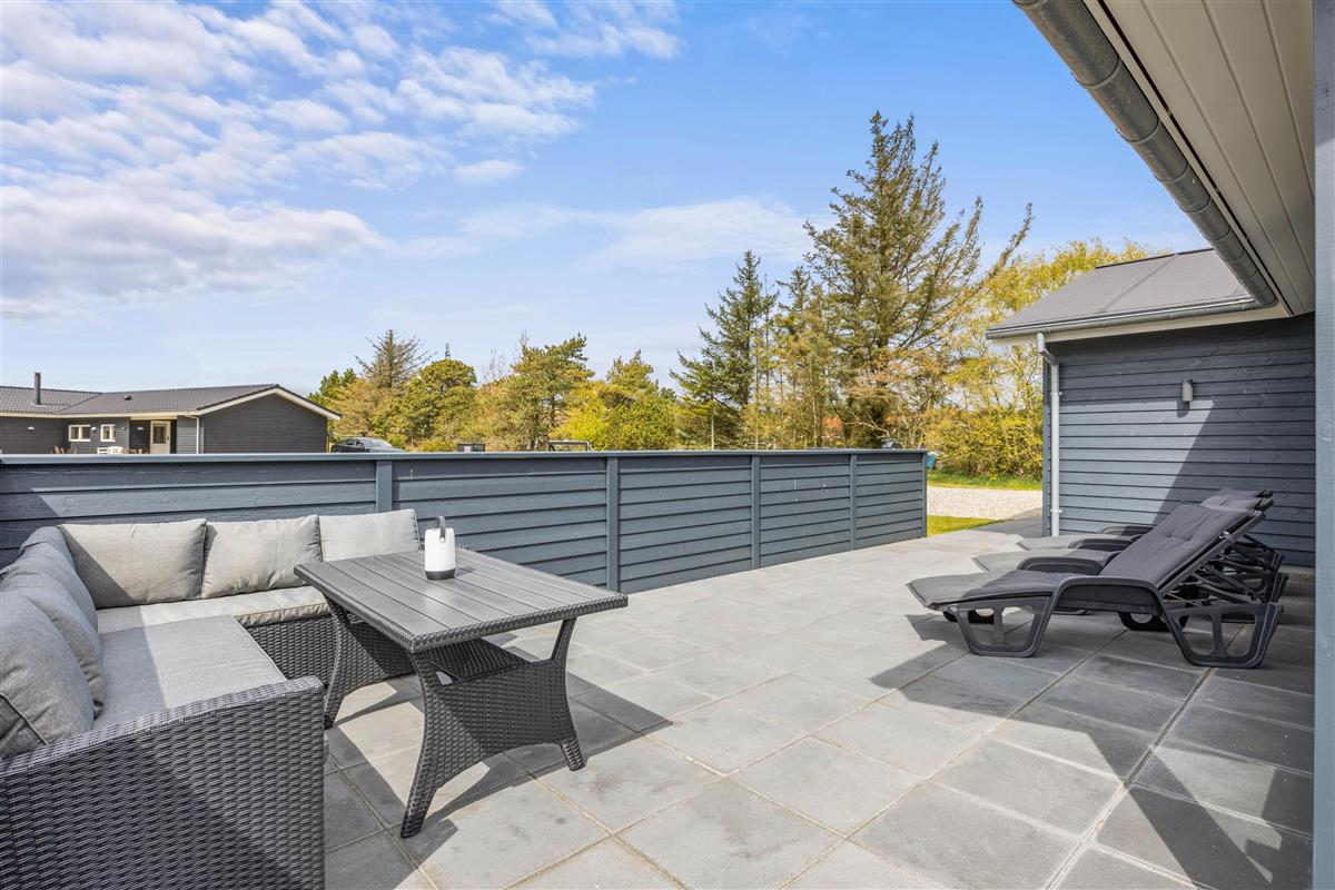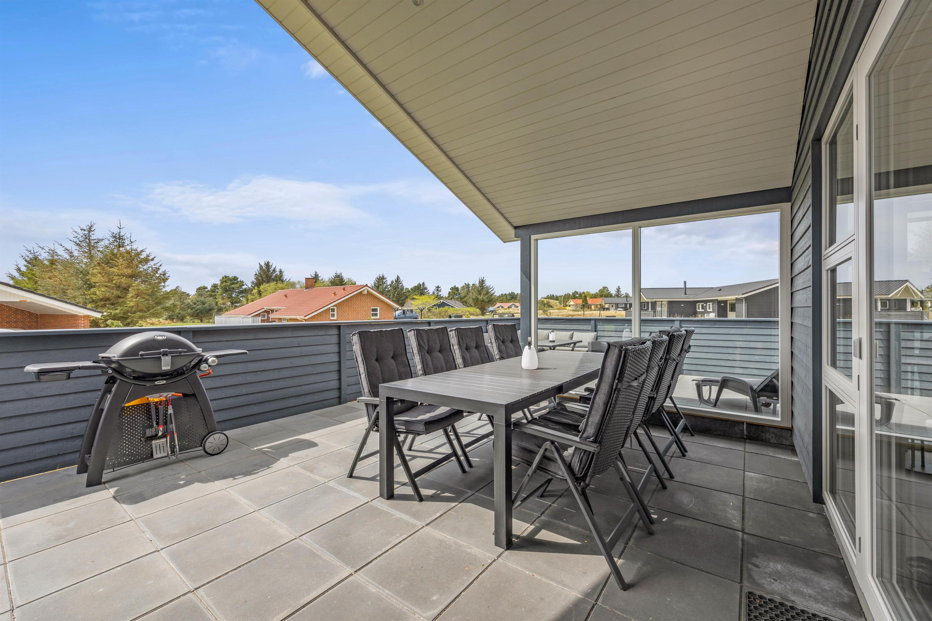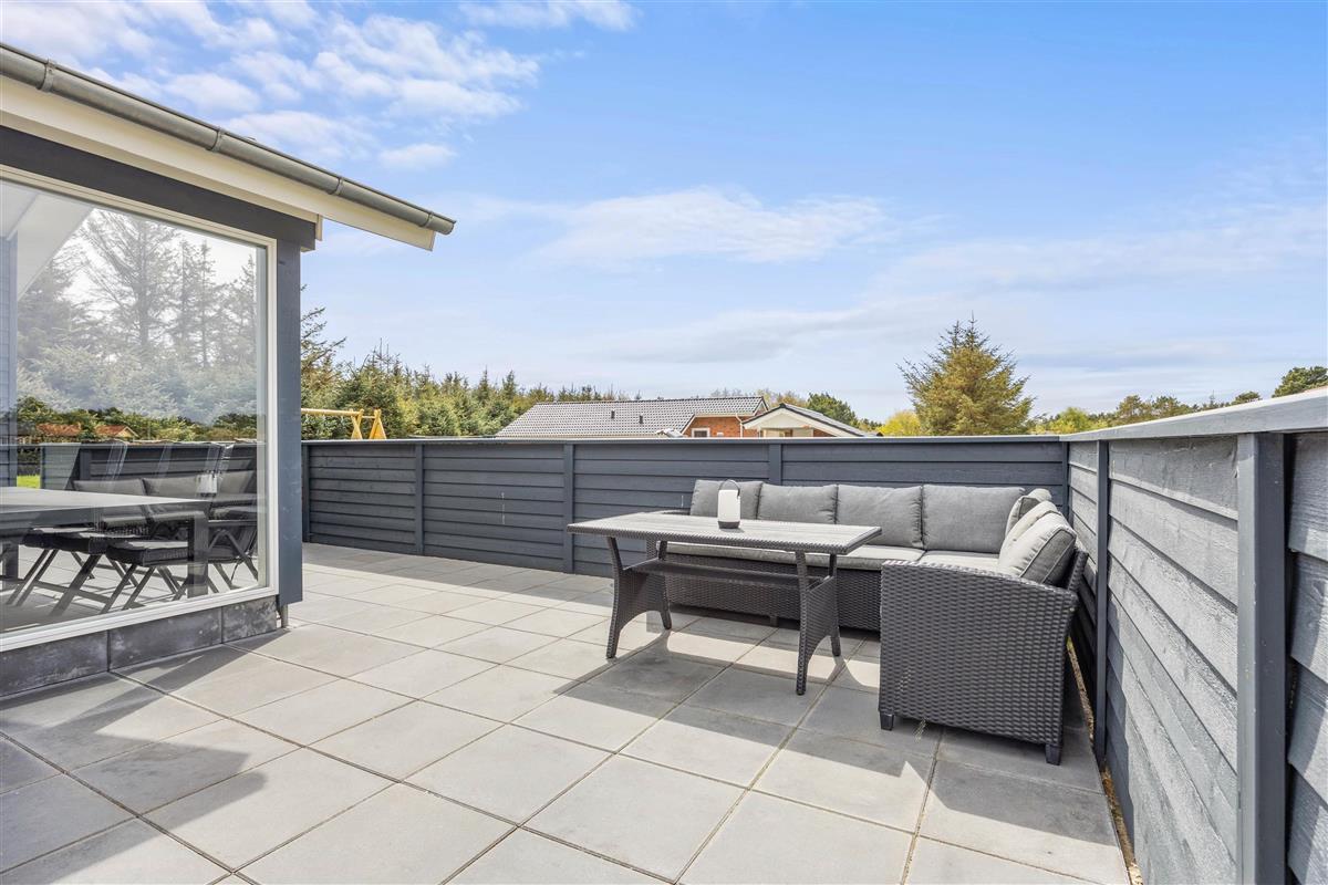 This five-star holiday home features a beautiful outdoor area. The screened terrace, with both covered and open sections, offers versatile options ensuring everyone's comfort when enjoying sunny days outdoors. There's also an outdoor shower, available for use from 1. April to 31. October.