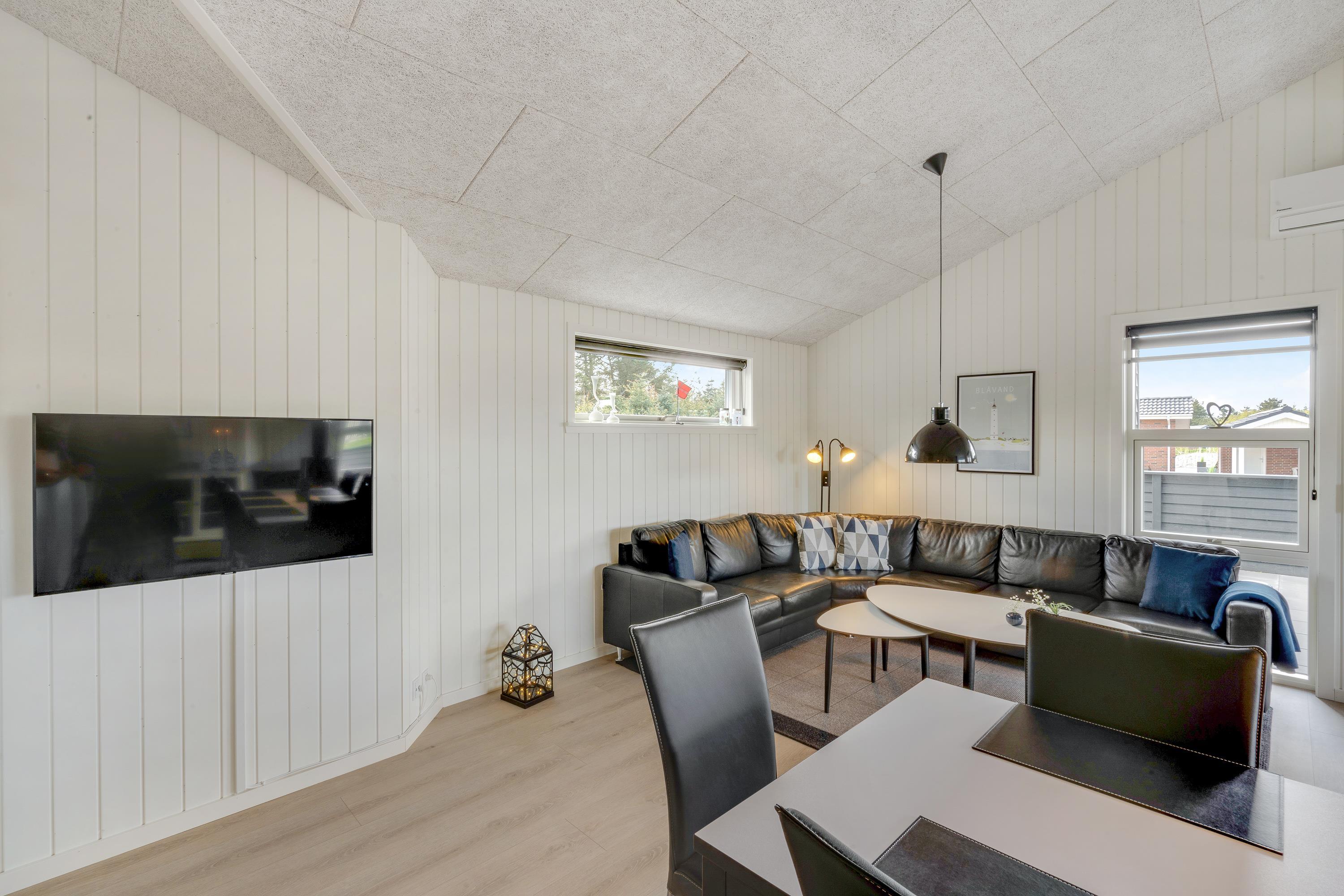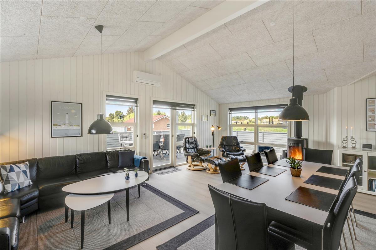 Located at Poul Thøstesensvej 6 in Blåvand, this five-star holiday home accommodates up to 8 people, providing the perfect setting for a holiday with family or friends. Stylishly and modernly furnished, the holiday home features a sauna and hot tub, along with a beautiful outdoor area. The holiday home enjoys an excellent location, just a 5-minute walk from the centre.