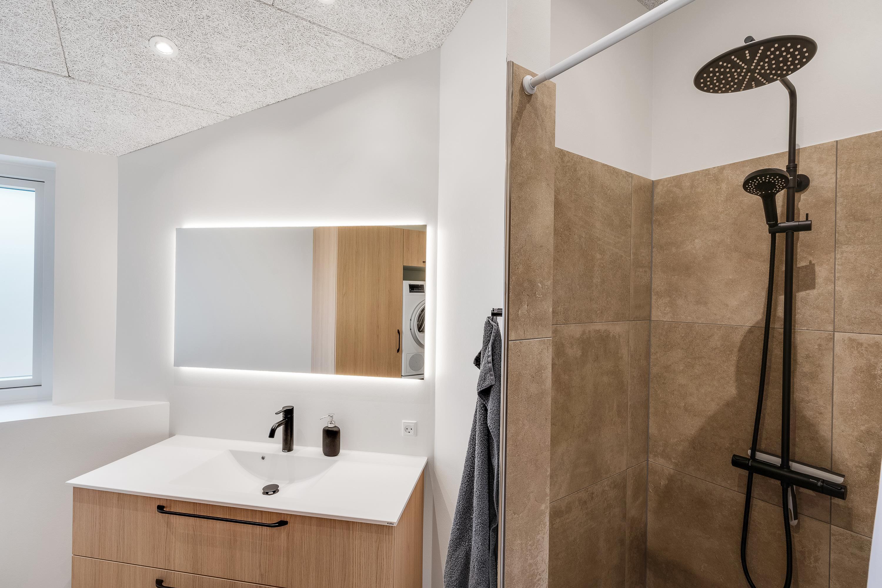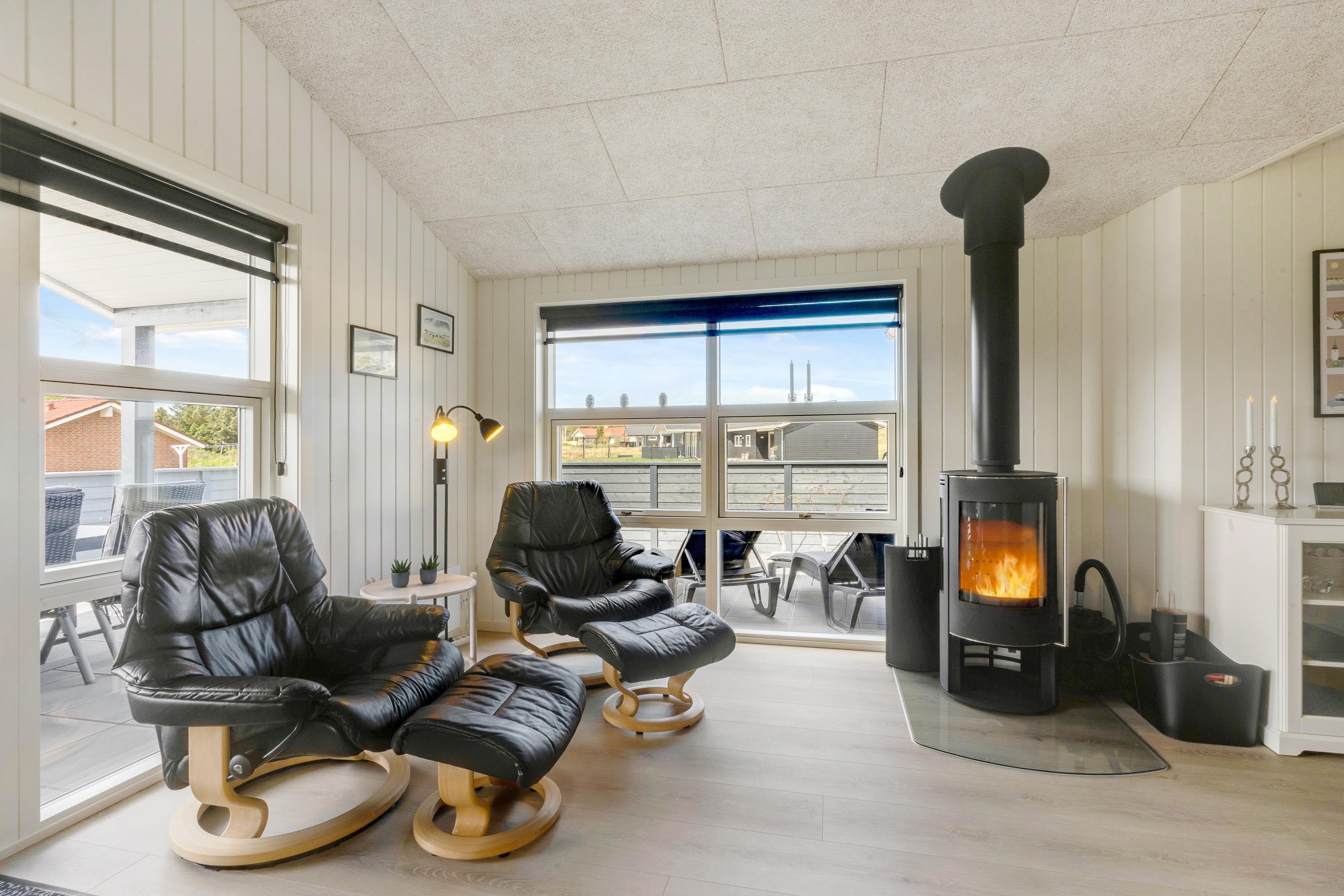 Thanks to the energy-efficient heat pump, the house maintains a comfortable temperature throughout. The television is equipped with Chromecast, allowing you to stream your favourite films and series while relaxing on the sofa with the wood-burning stove crackling in the background.