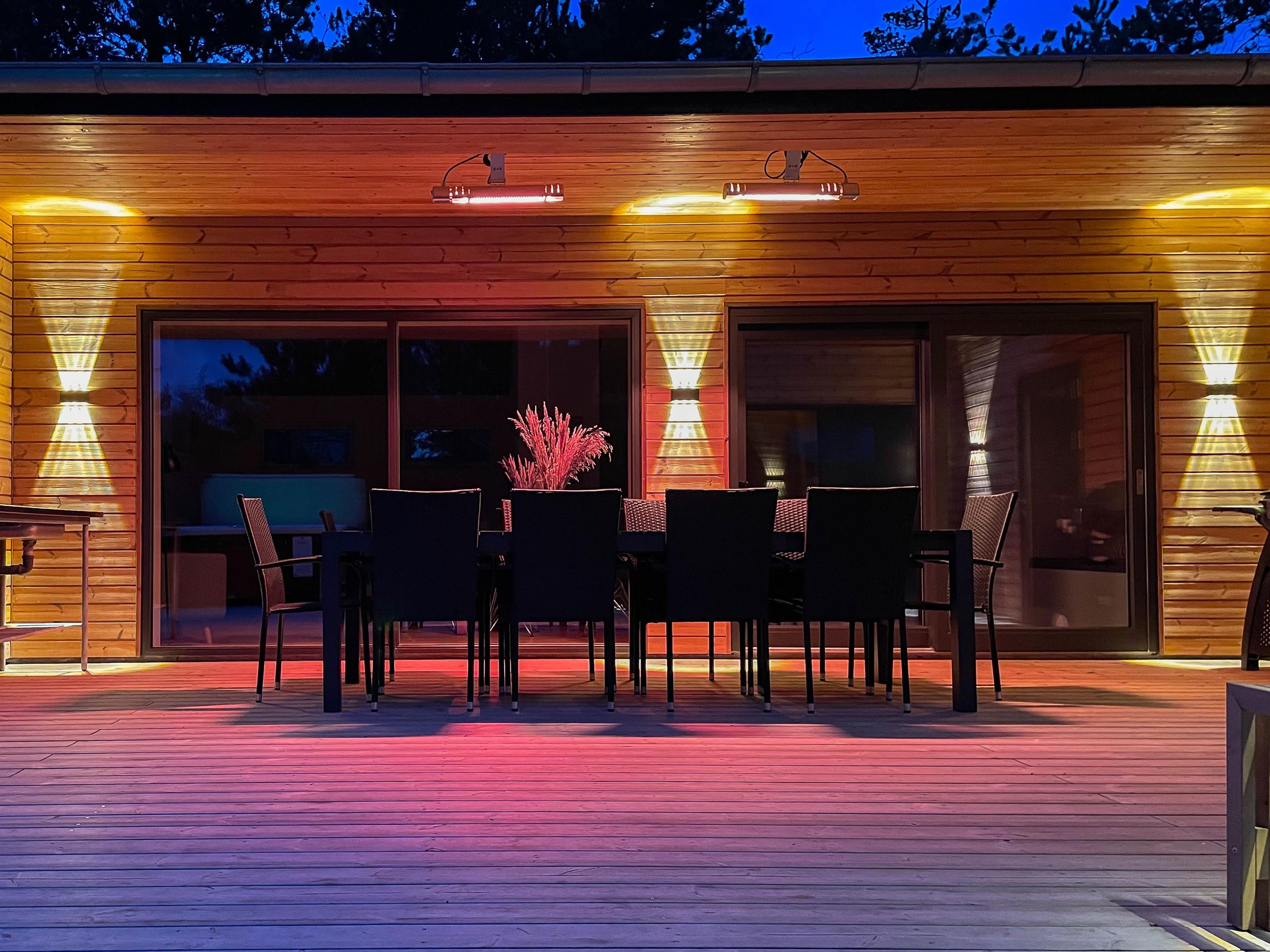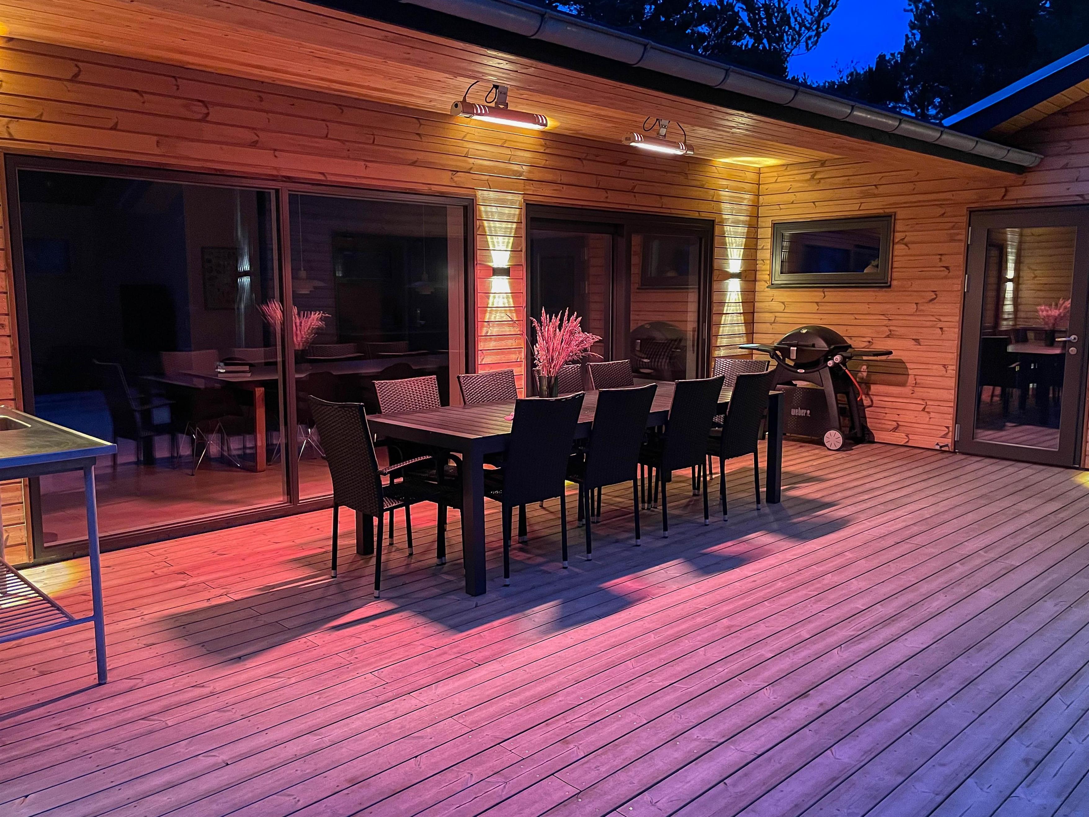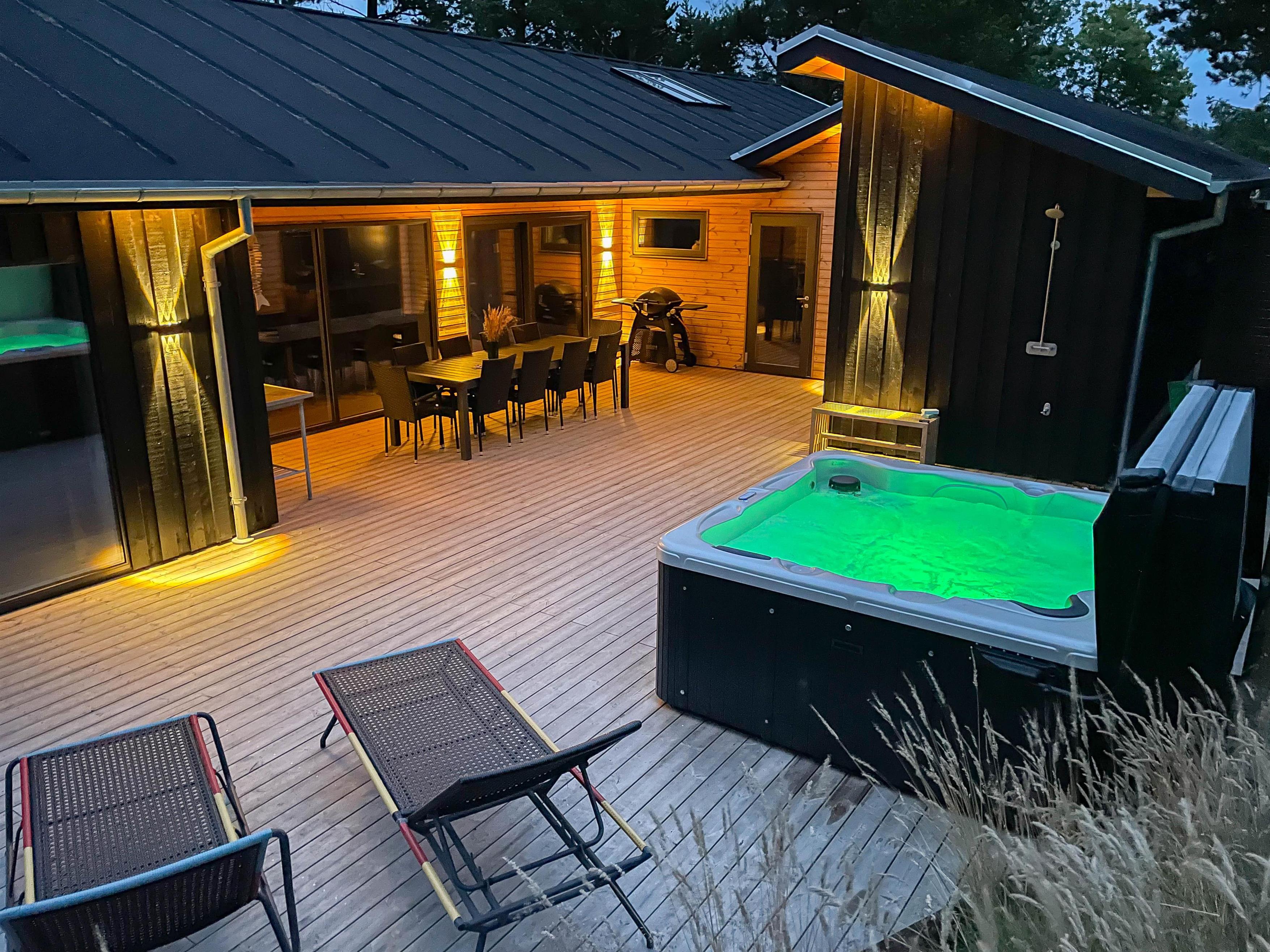 Open and covered terrace with outdoor hot tub, sauna and shower
