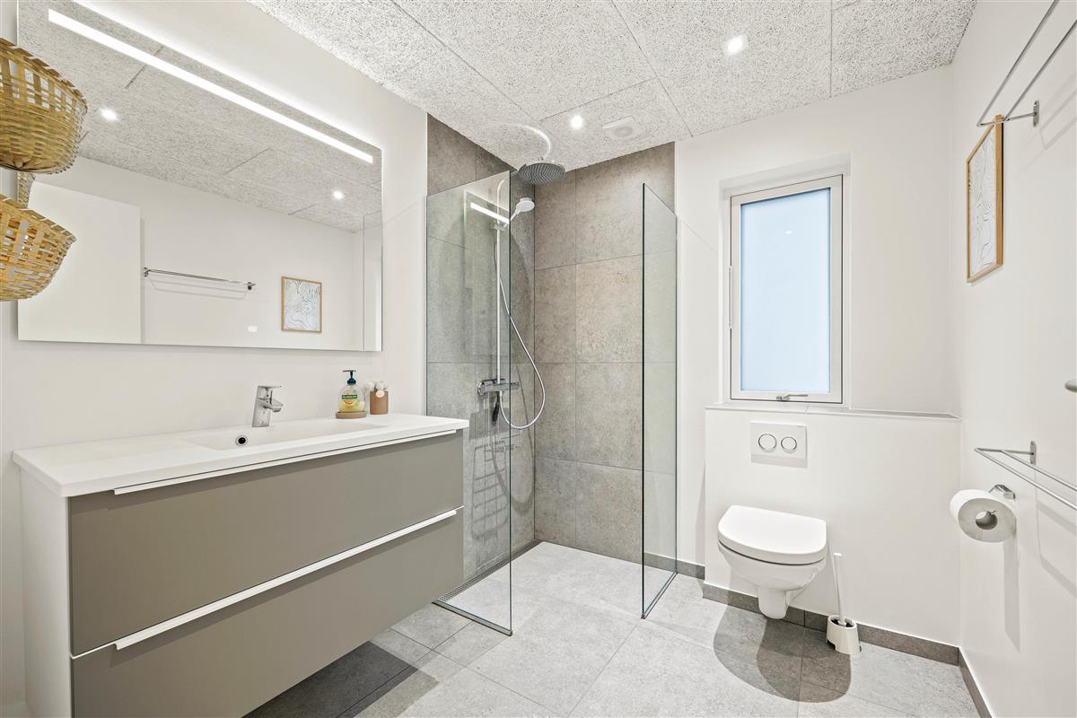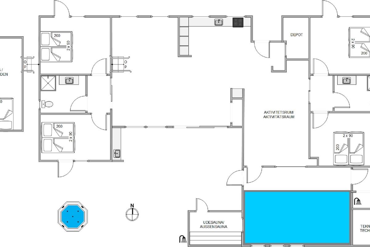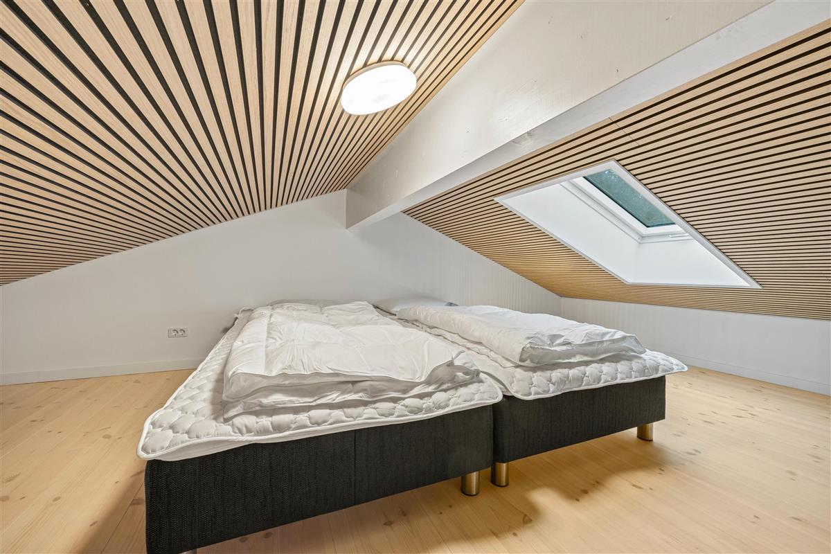 The holiday home features 4 comfortable bedrooms and a loft sleeping area for 2 people. With 3 bathrooms, there's never a morning queue. All bathrooms have underfloor heating for comfort. One bathroom is located by the pool room, while the other two are en-suite, each serving two bedrooms. This layout allows separate living areas when two families holiday together.