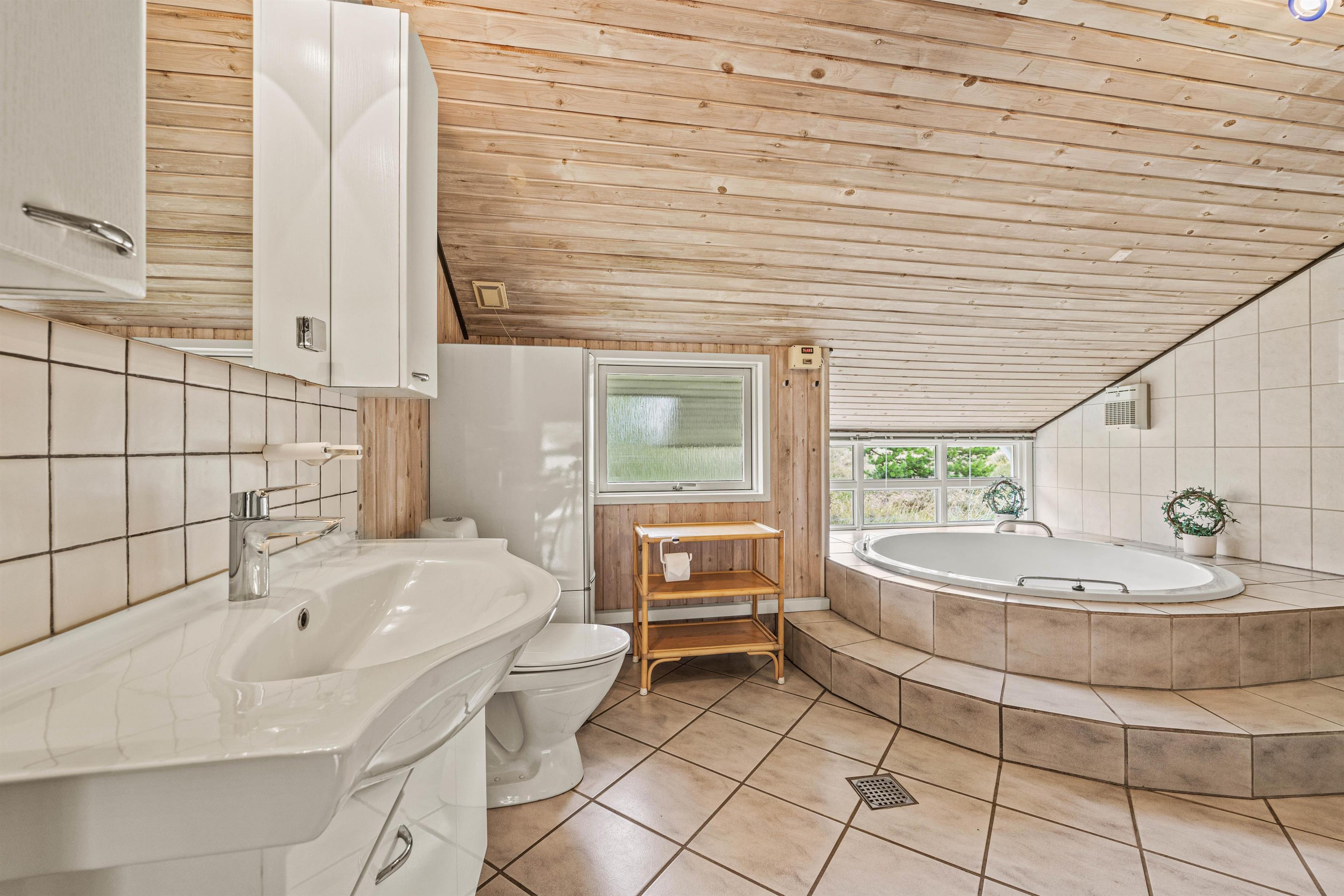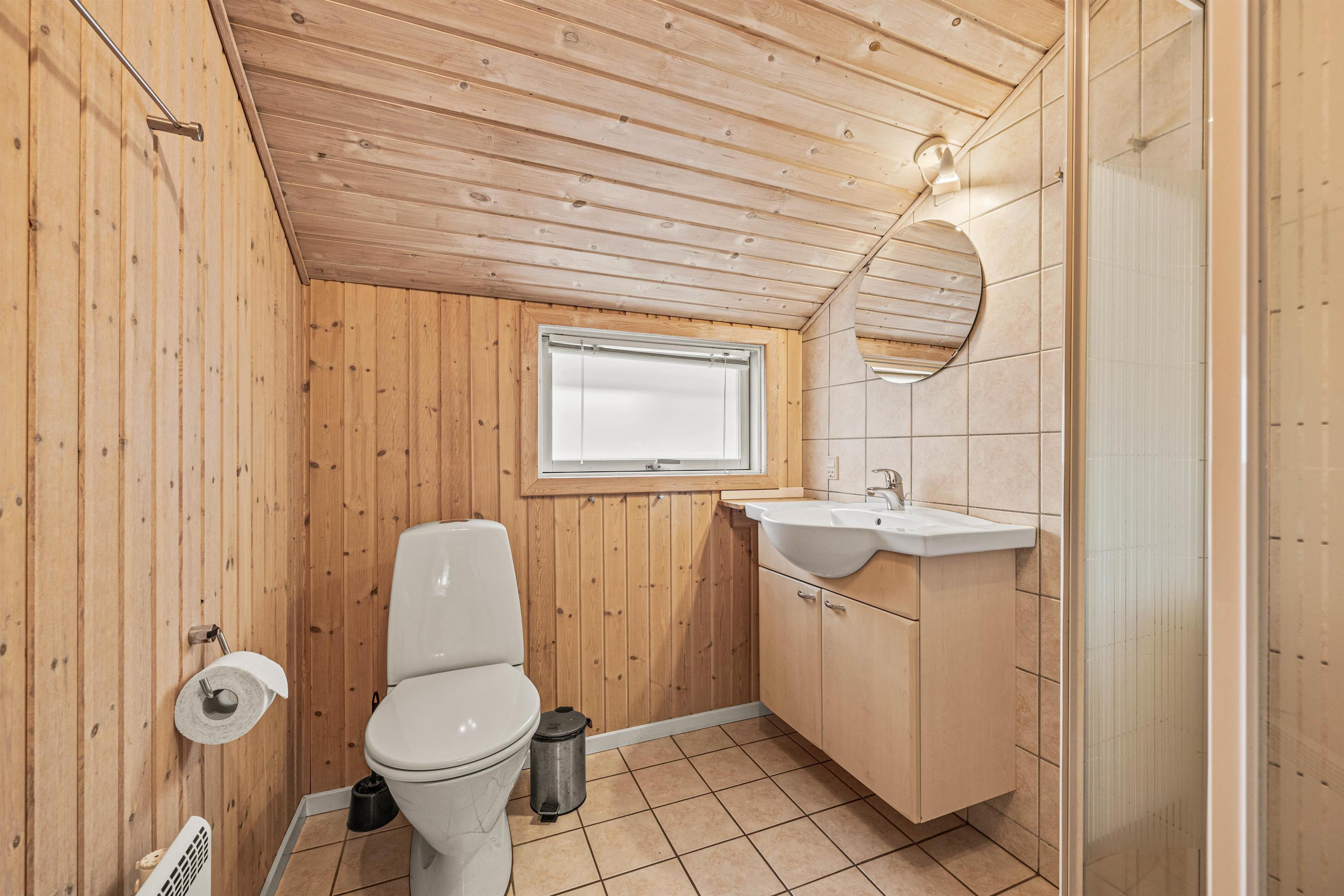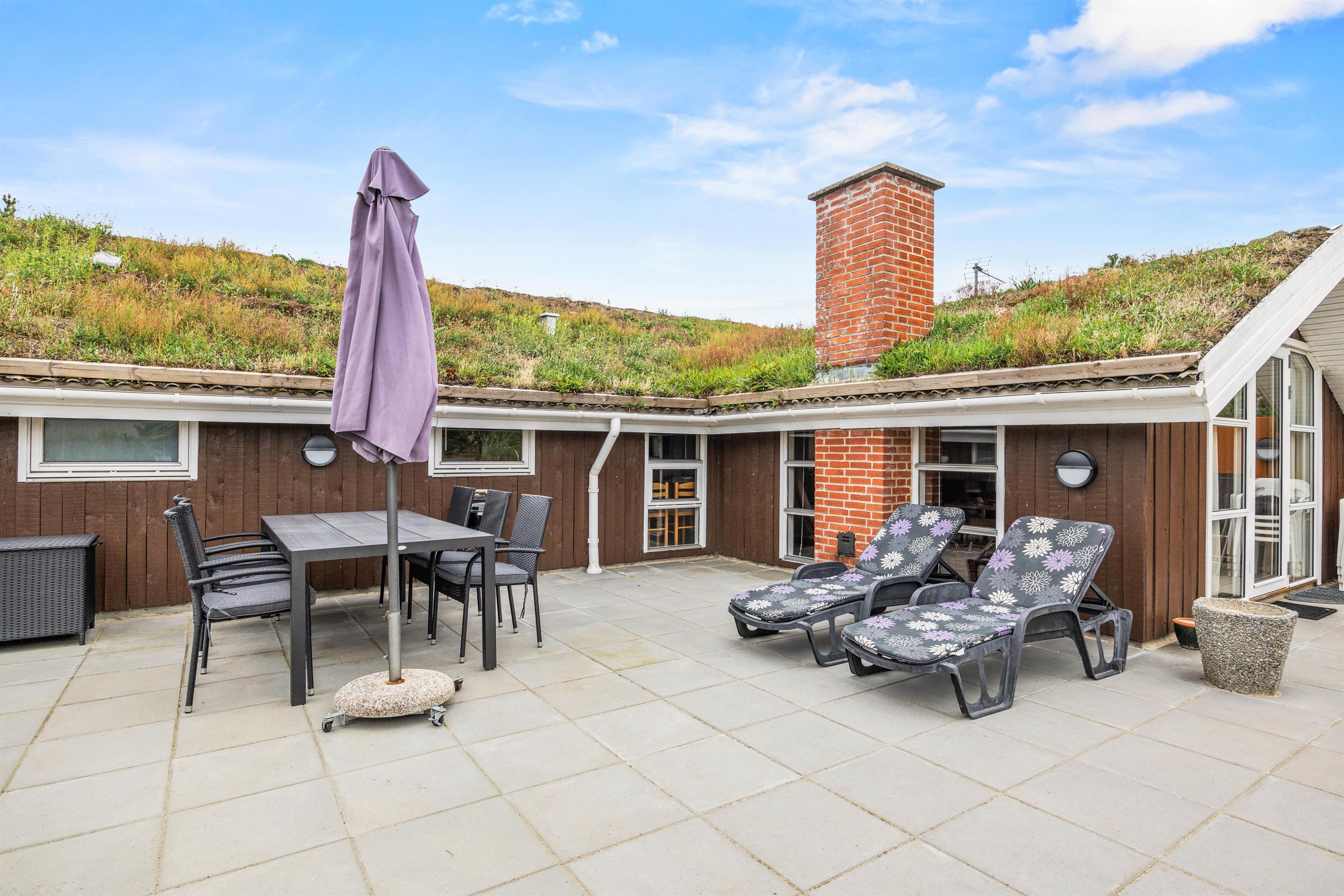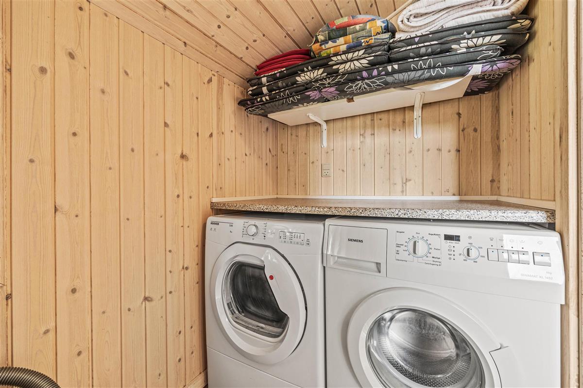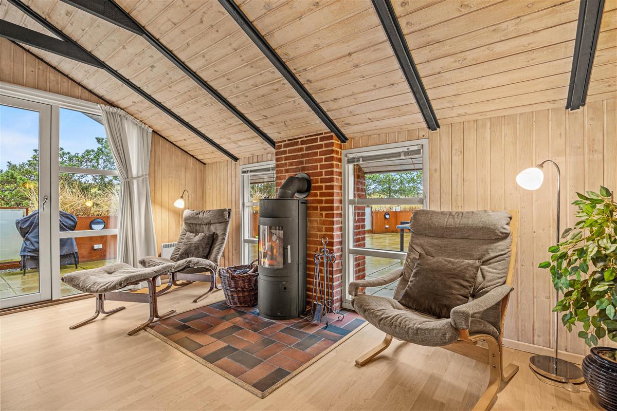 As soon as you enter, you'll feel the traditional atmosphere of a Danish holiday home. Wood-clad walls and ceilings throughout create a warm ambiance. The bright, comfortable living area forms the heart of this traditional holiday home, combining the living room, kitchen and dining area in one open-plan space. Thanks to this open architecture, the whole family can enjoy their holiday together.