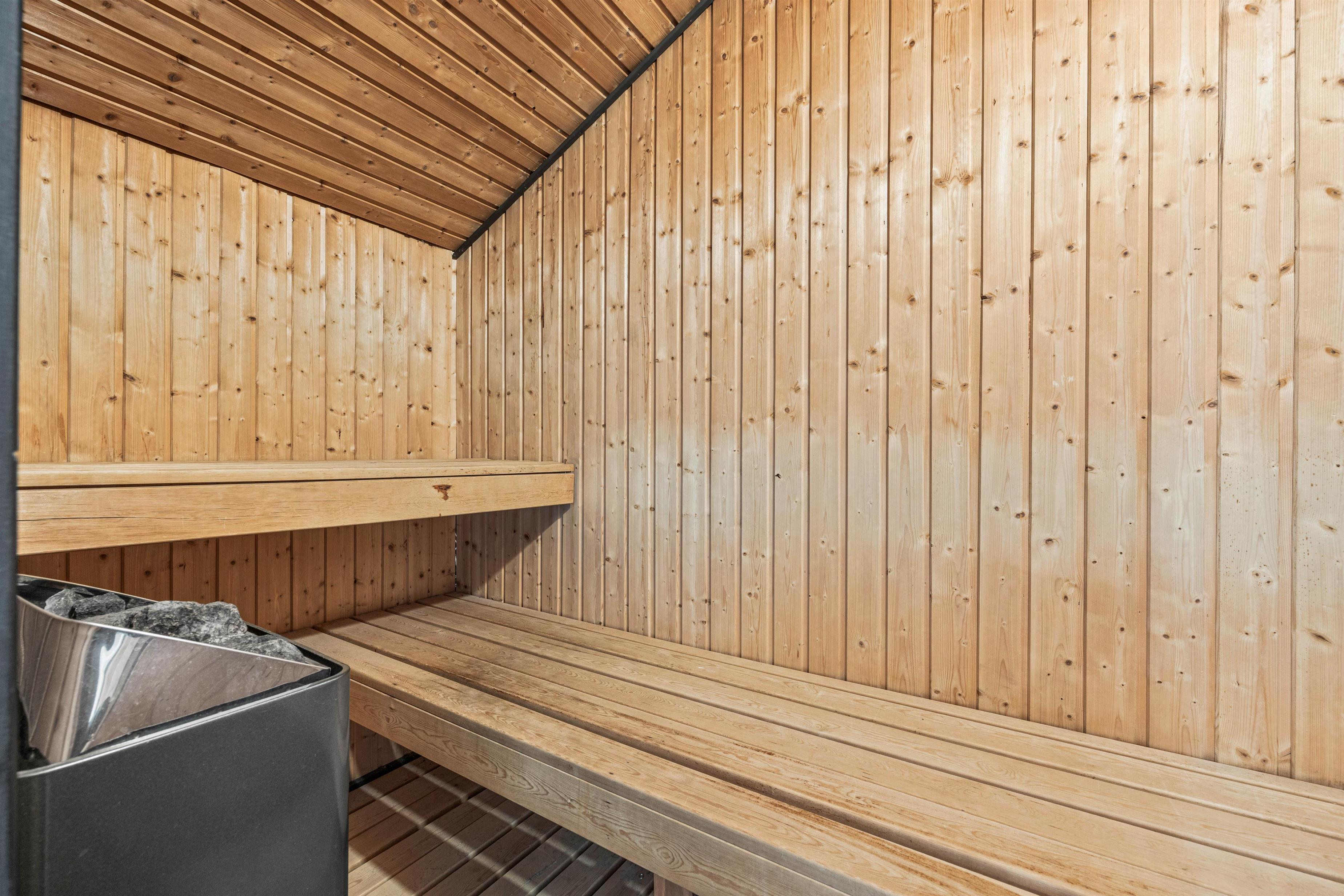 Both bathrooms feature underfloor heating, with the larger bathroom being more of a wellness suite. Here you'll find both a sauna and a whirlpool with space for 4 people.