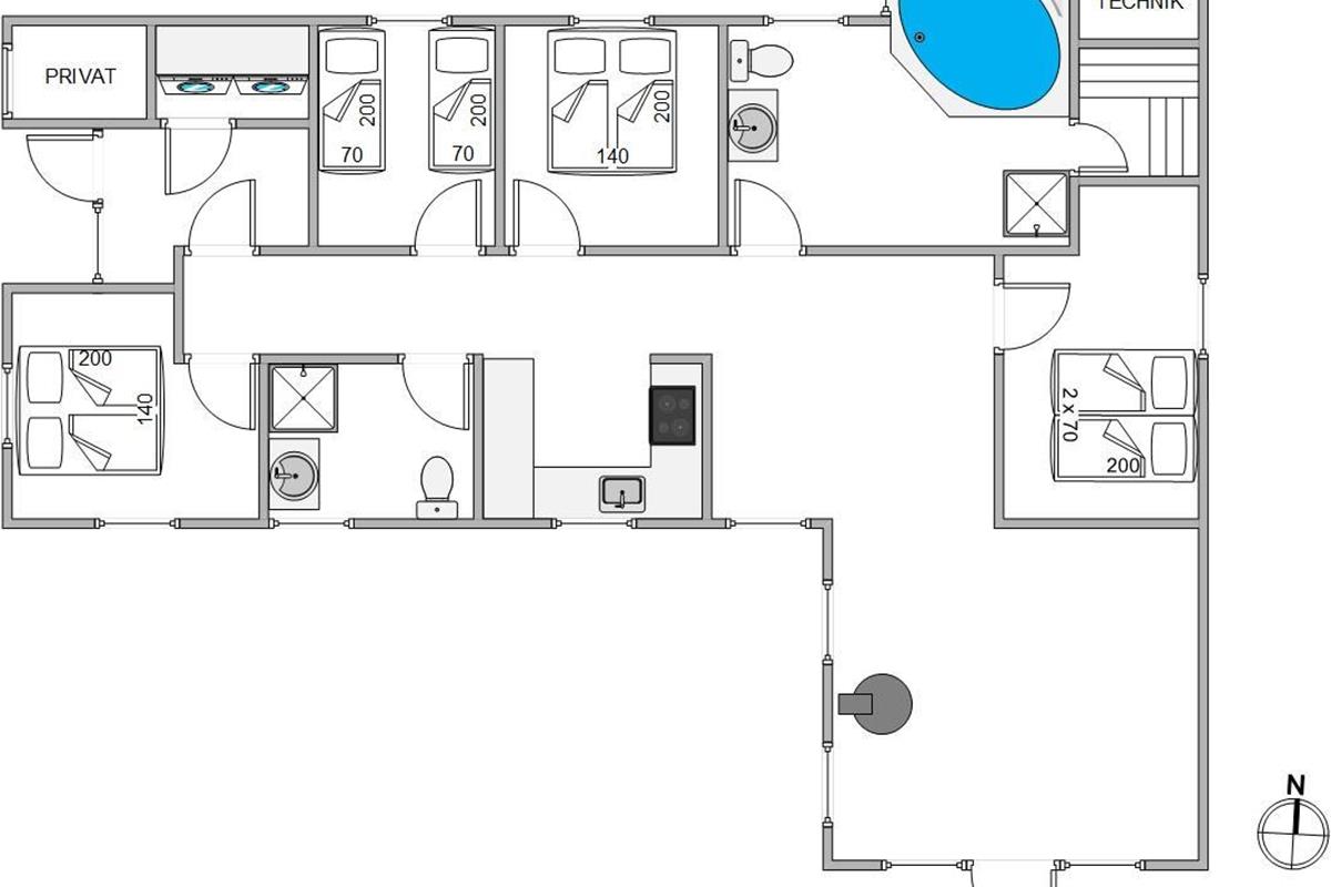 The summer house is just 1.2 miles (2 km) from the North Sea. No North Sea holiday is complete without beach days. Whether in summer or winter, the endless beaches along the North Sea coast have their own charm in every season. Though nestled in nature, the holiday home is just over half a mile from Blåvand town centre. This holiday destination offers a wide selection of local shops, good restaurants and excellent places to enjoy traditional Danish soft ice cream and waffle cones.