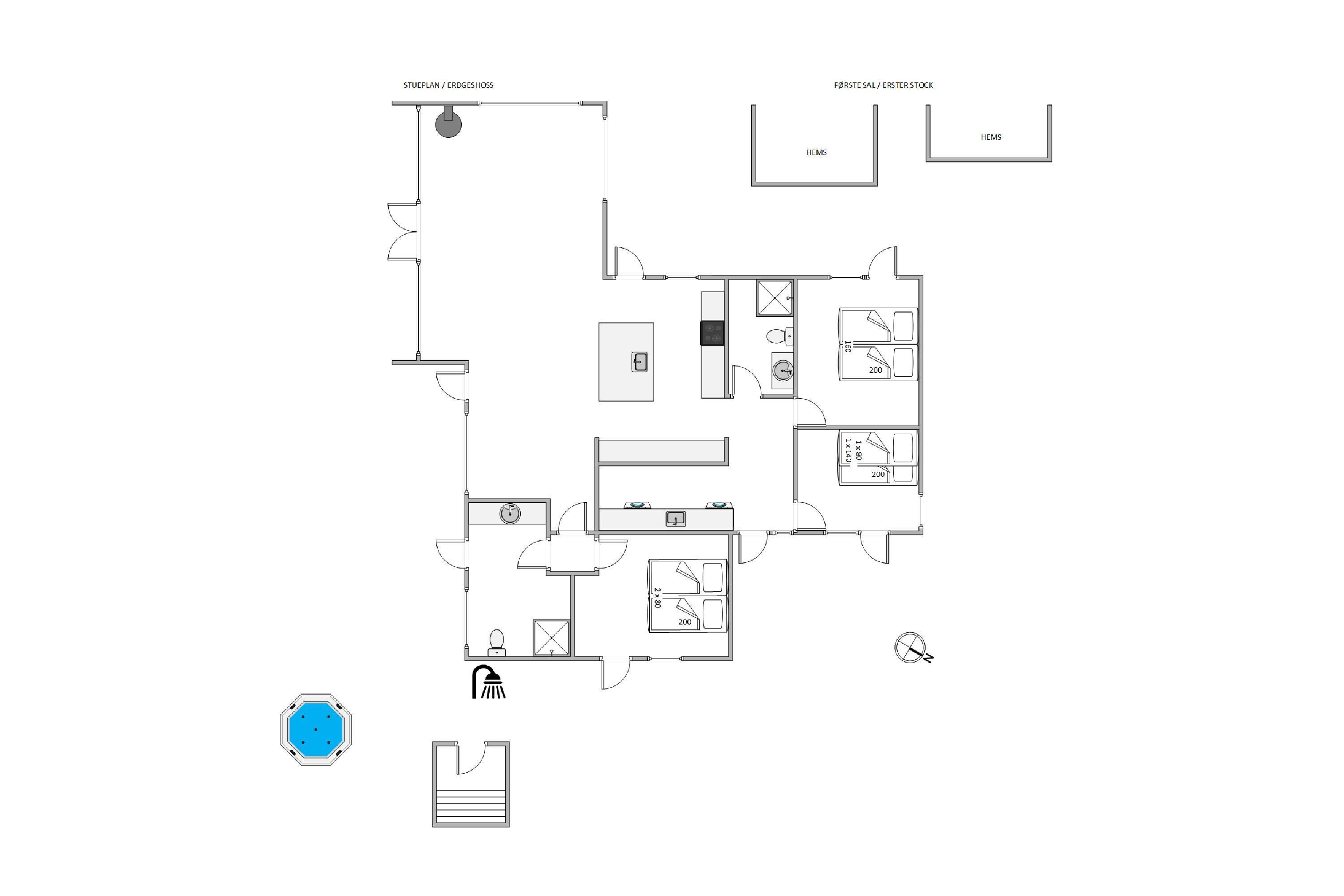 The covered terrace offers protection in all weather conditions, allowing you to breathe in the fresh sea breeze undisturbed. The highlight of your wellness oasis is the outdoor hot tub and infrared outdoor sauna, which comfortably accommodates 2-3 people simultaneously, complemented by a refreshing outdoor shower. The outdoor shower can be used from 1st April to 31st October. These facilities guarantee hours of luxurious relaxation - ideal for pampering body and mind.