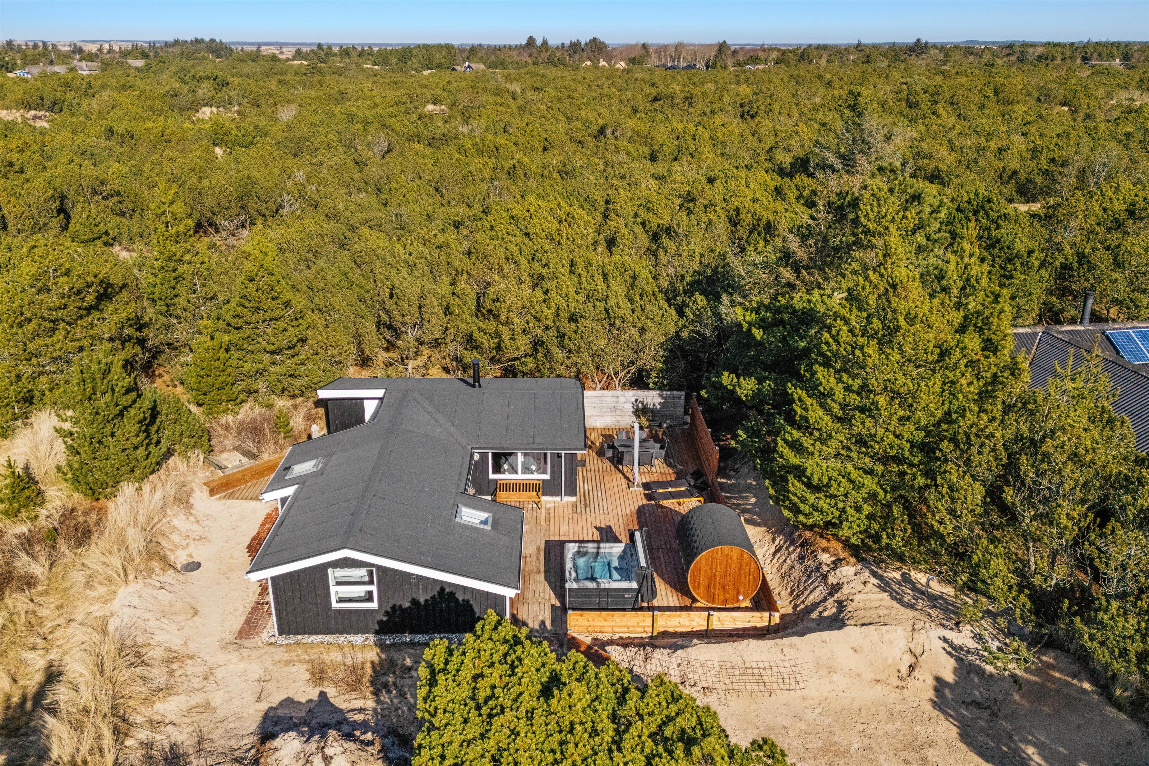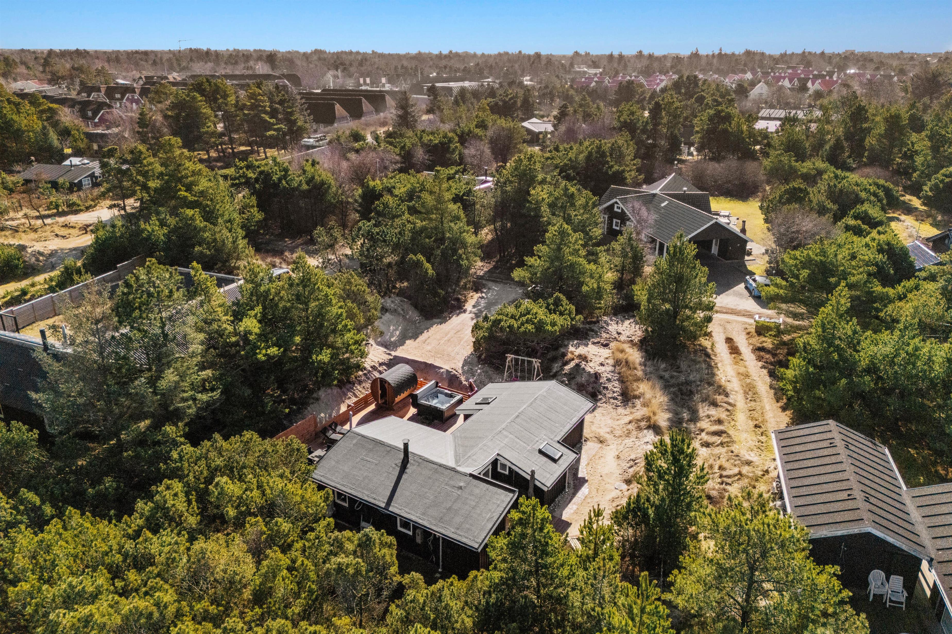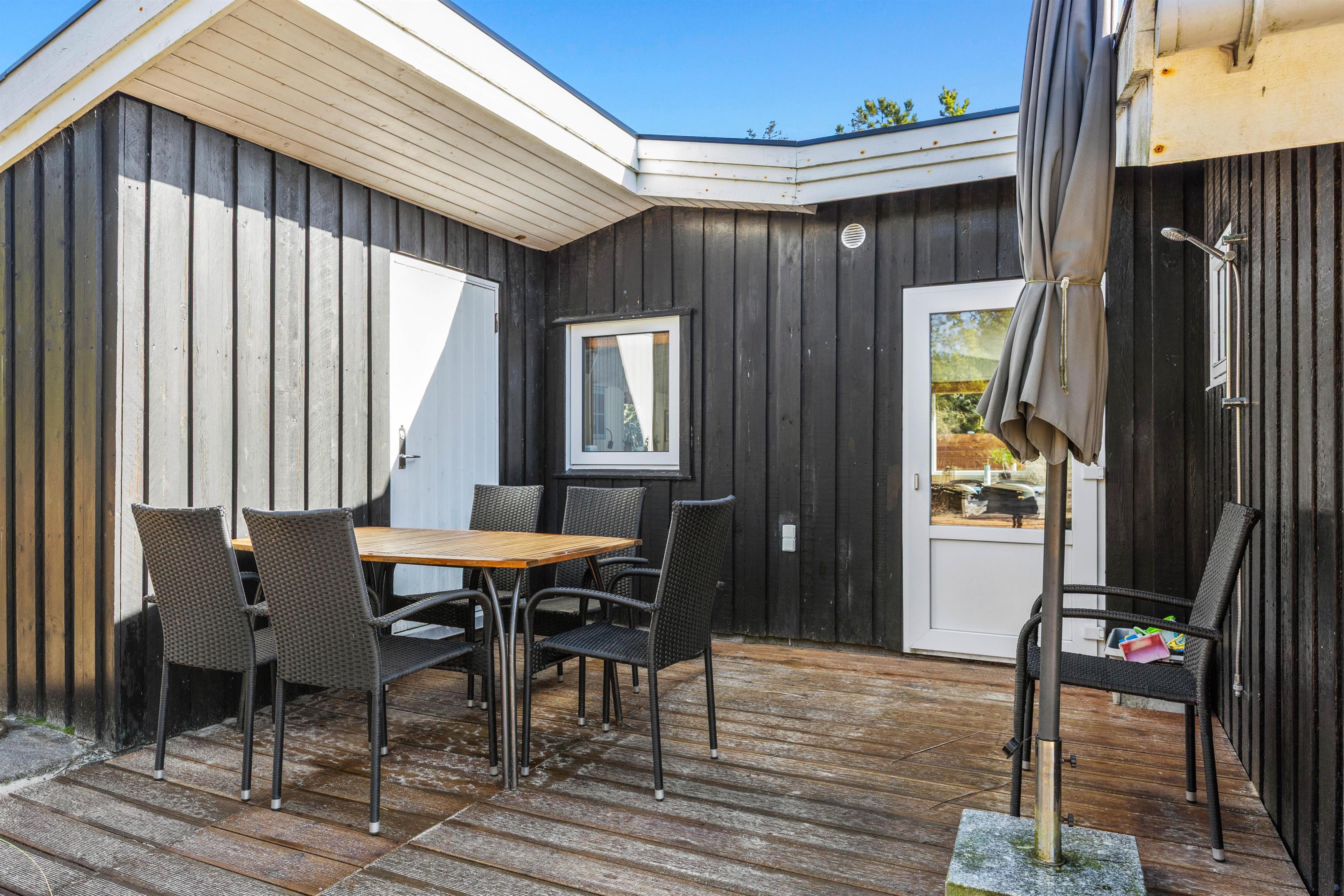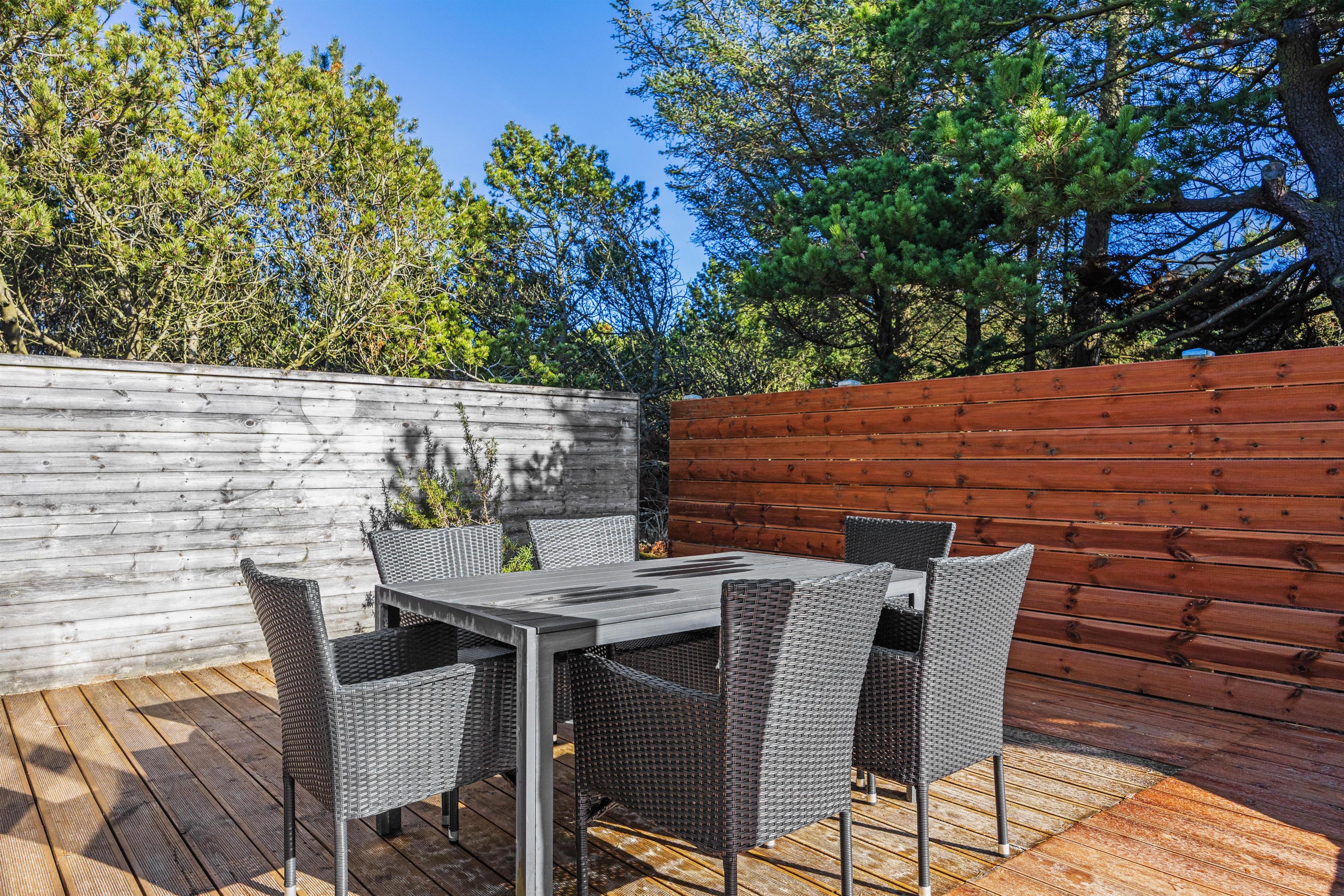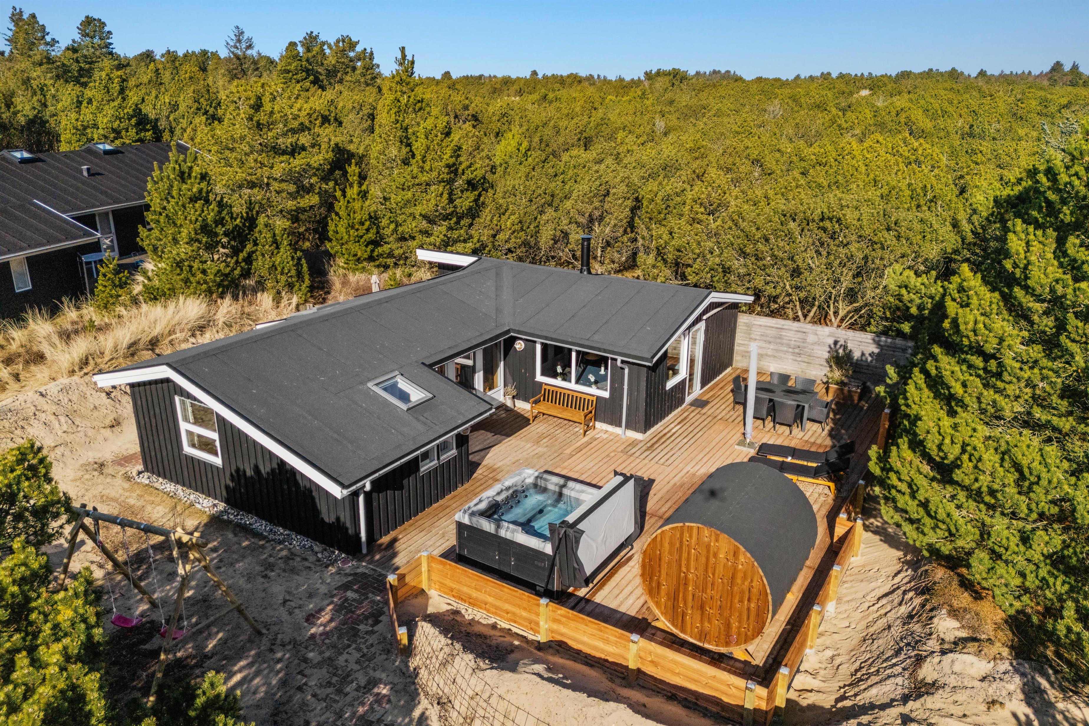 The holiday home in Blåvand is set on an impressive 3,000 m² natural plot, inviting exploration and relaxation. On the open terrace or the sheltered area, you can enjoy the sun and spend leisurely hours outdoors. Children can play on the swing or in the sandbox while you enjoy peace and quiet on the garden furniture, and you can finish the day with delicious meals from the house’s gas grill.