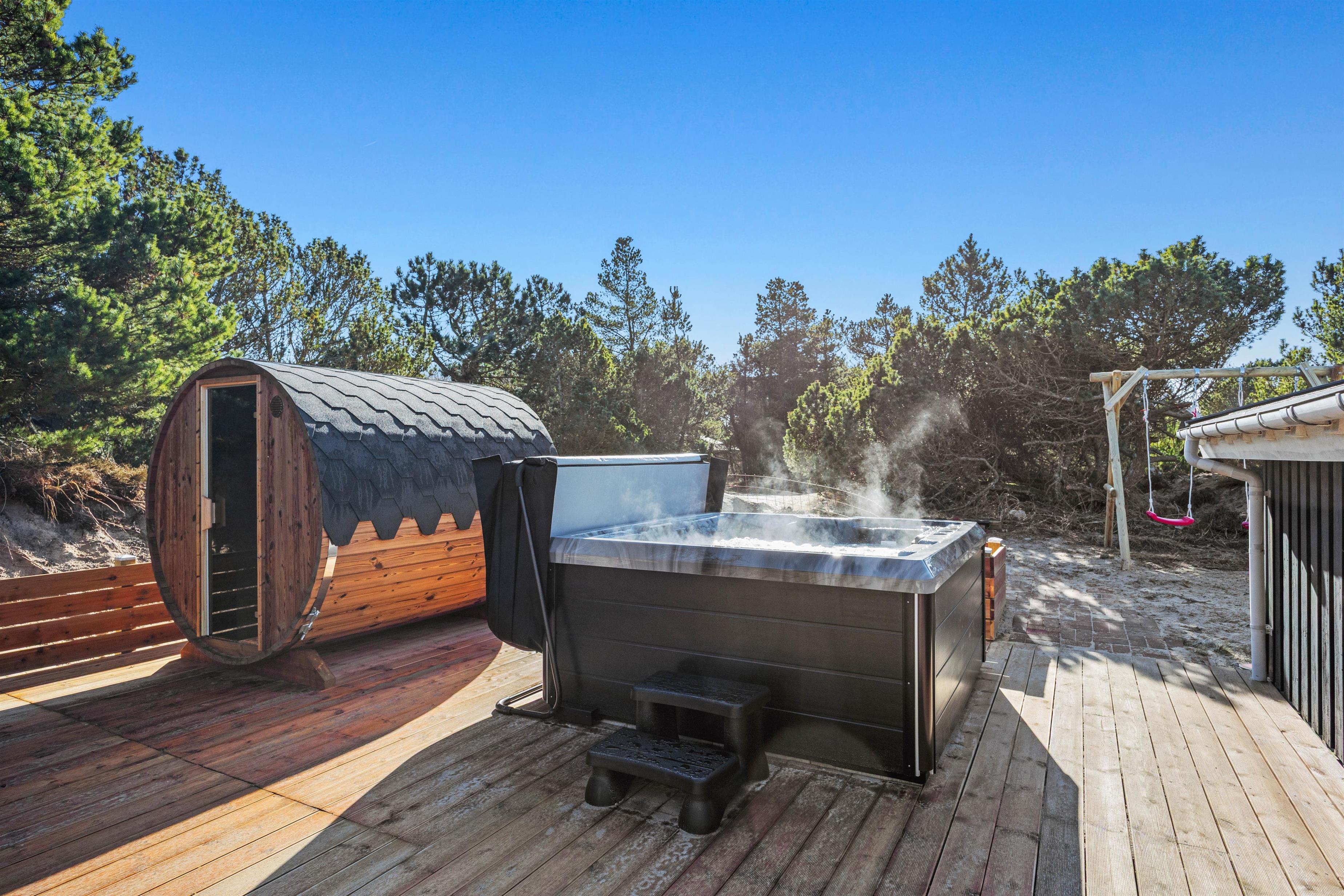 A special highlight is the outdoor hot tub and barrel-shaped sauna, offering a true wellness experience right at your doorstep. Here, you can warm up, relax, and leave everyday life behind.