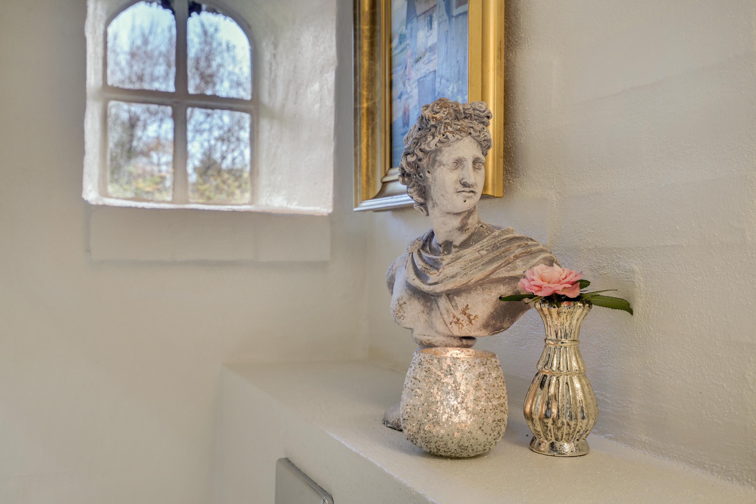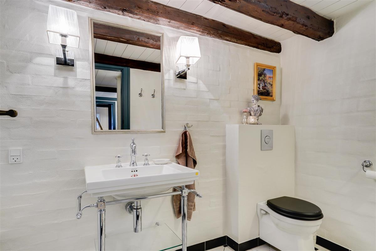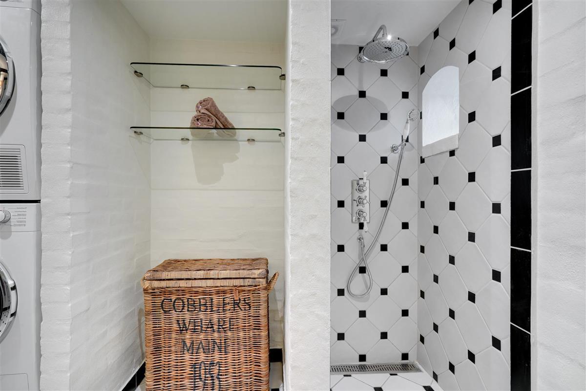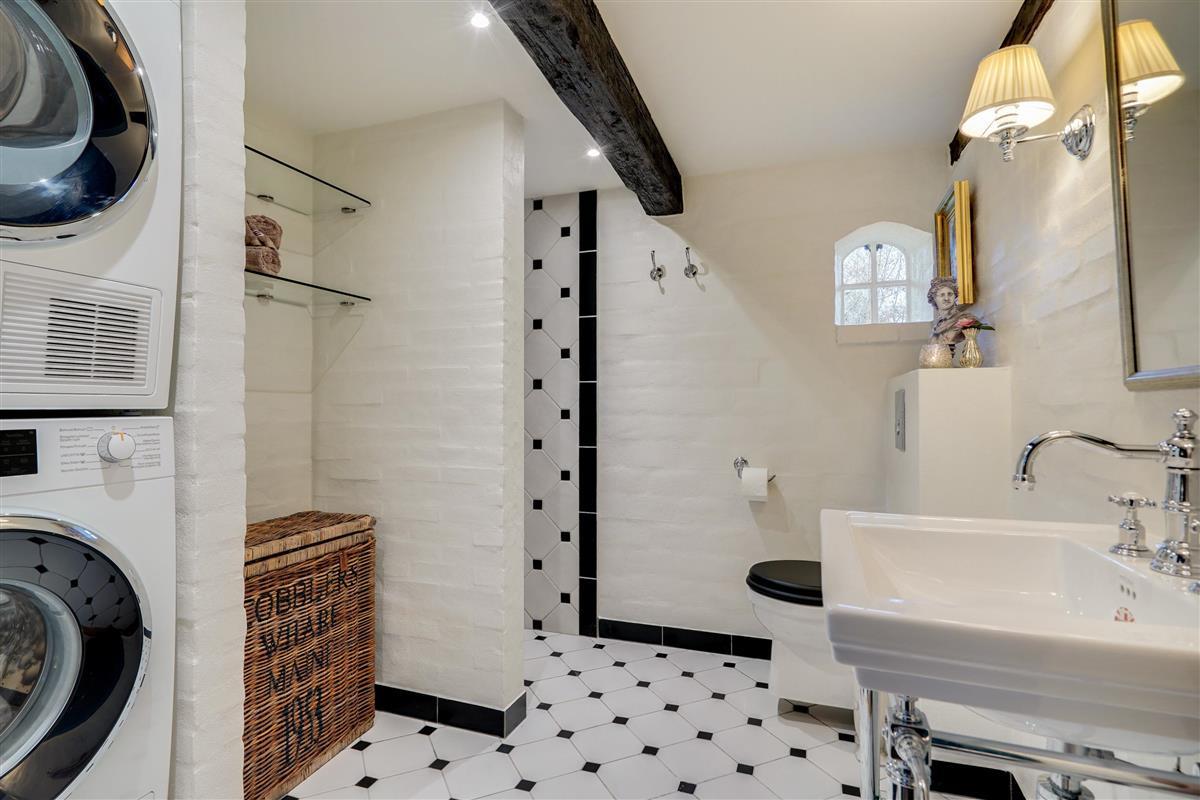 Start your day with a refreshing shower in one of the two beautiful bathrooms with underfloor heating. One bathroom houses both a washing machine and tumble dryer for your convenience. The bathrooms have been renovated in keeping with the holiday home's traditional style, maintaining the home's cohesive character.
