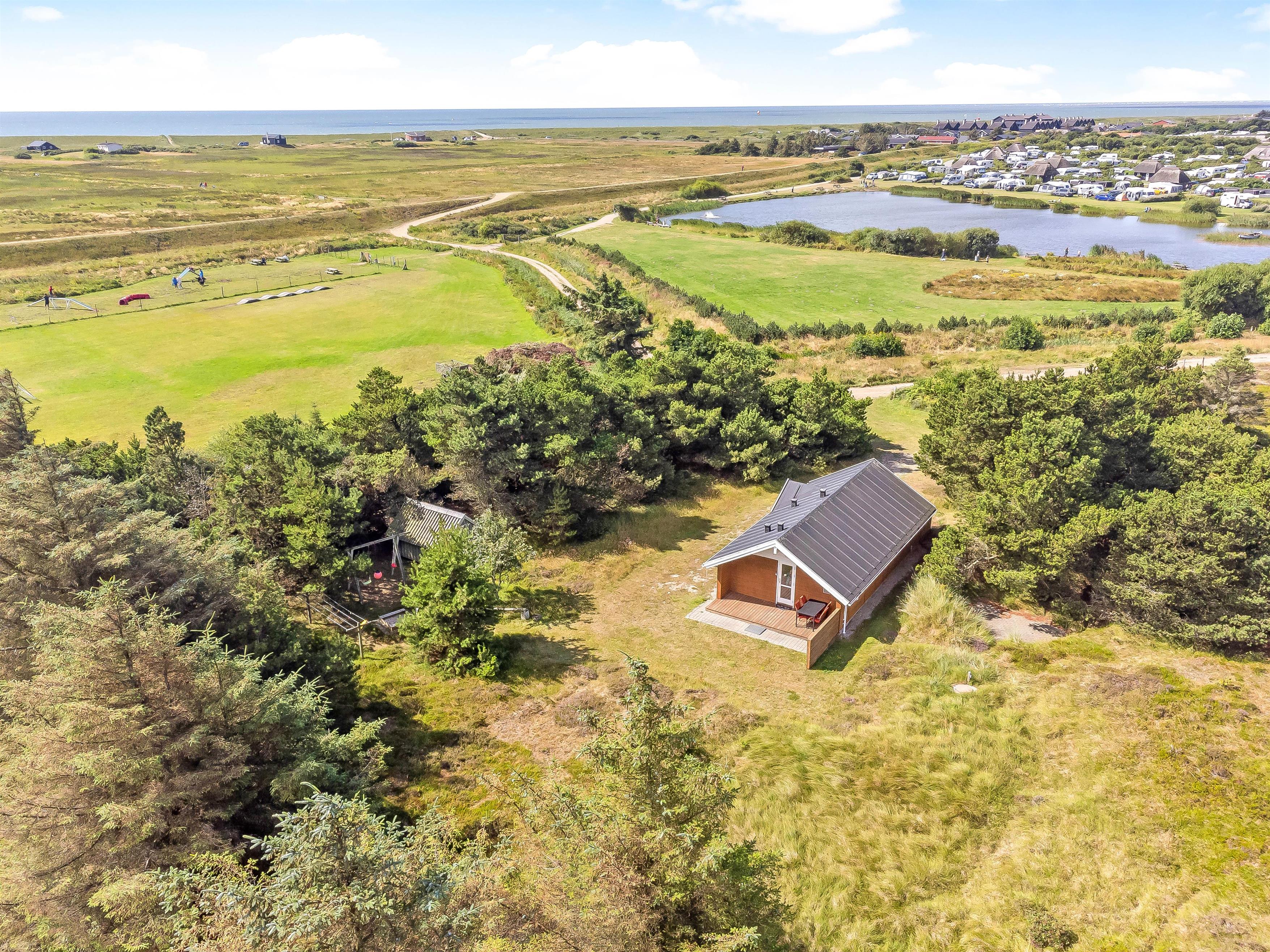 The holiday home's location is unbeatable, offering complete tranquility. The distance to the nearest neighbour is such that you'll feel completely private – yet you're just 400 metres from the rolling waves and beautiful sandy beaches of the North Sea, and only 0.6 miles from the town centre. Next to the holiday home lies Skt. Enders Chapel, the oldest church remains in the Ho-Oksby parishes. Directly opposite, you can enjoy views of the small pond by the camping site. Simply beautiful!