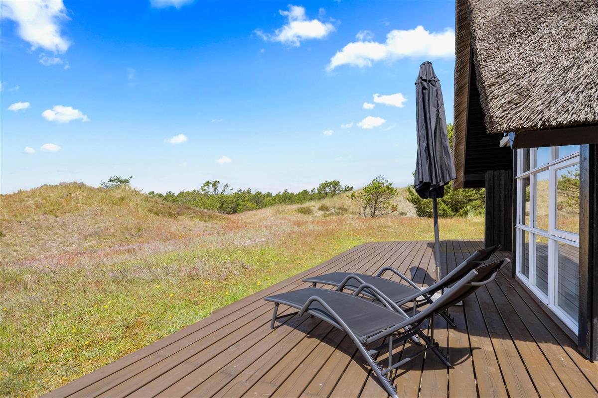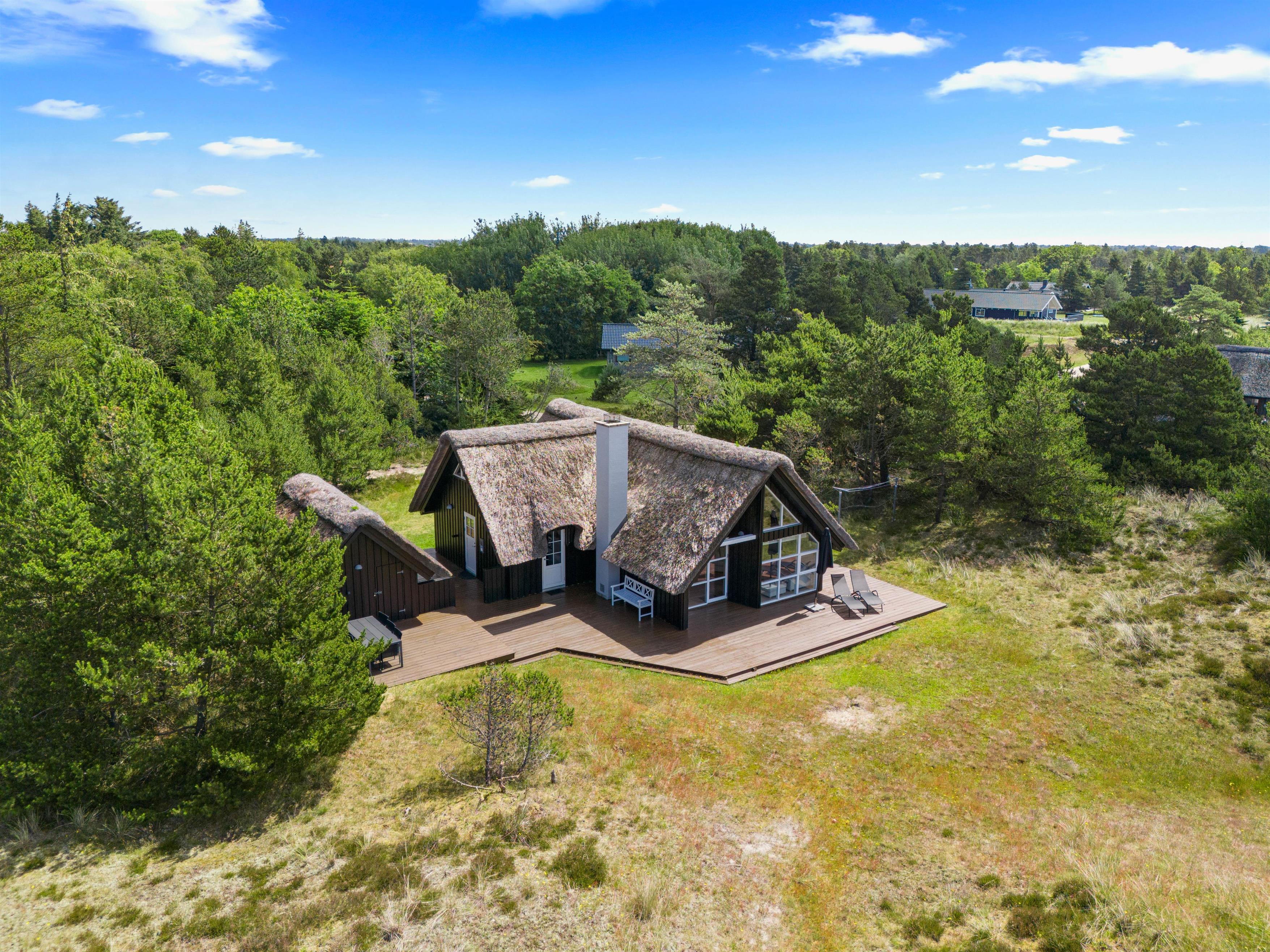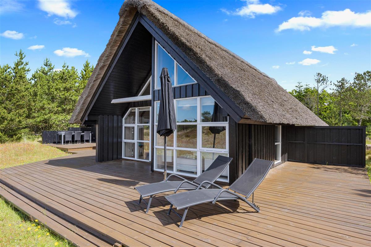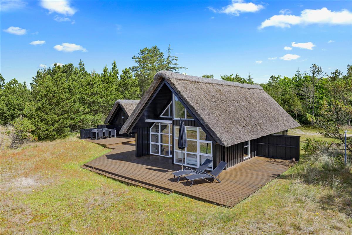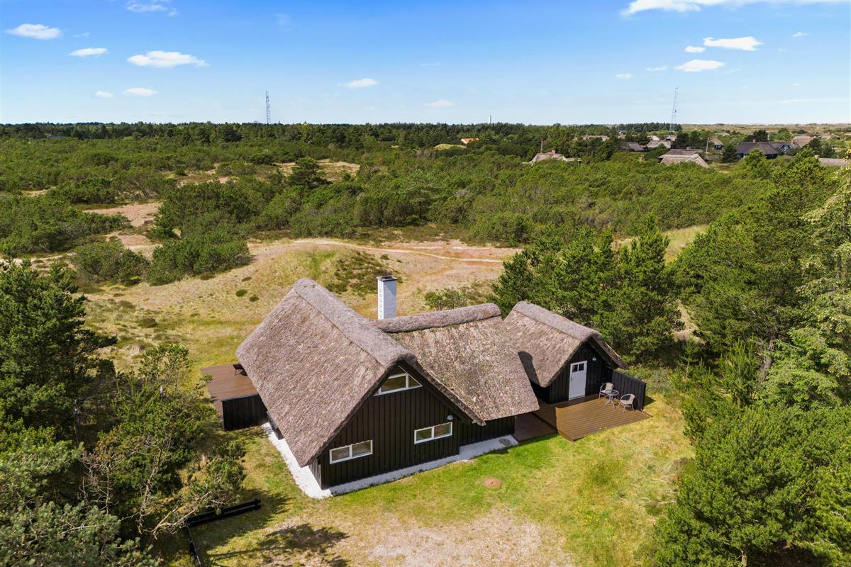 This beautiful thatched holiday home is situated on a large natural plot at Bjergbovej 27, on the outskirts of Blåvand. Set across two floors, it offers plenty of space for families of up to 5 people, and your dog is welcome too!