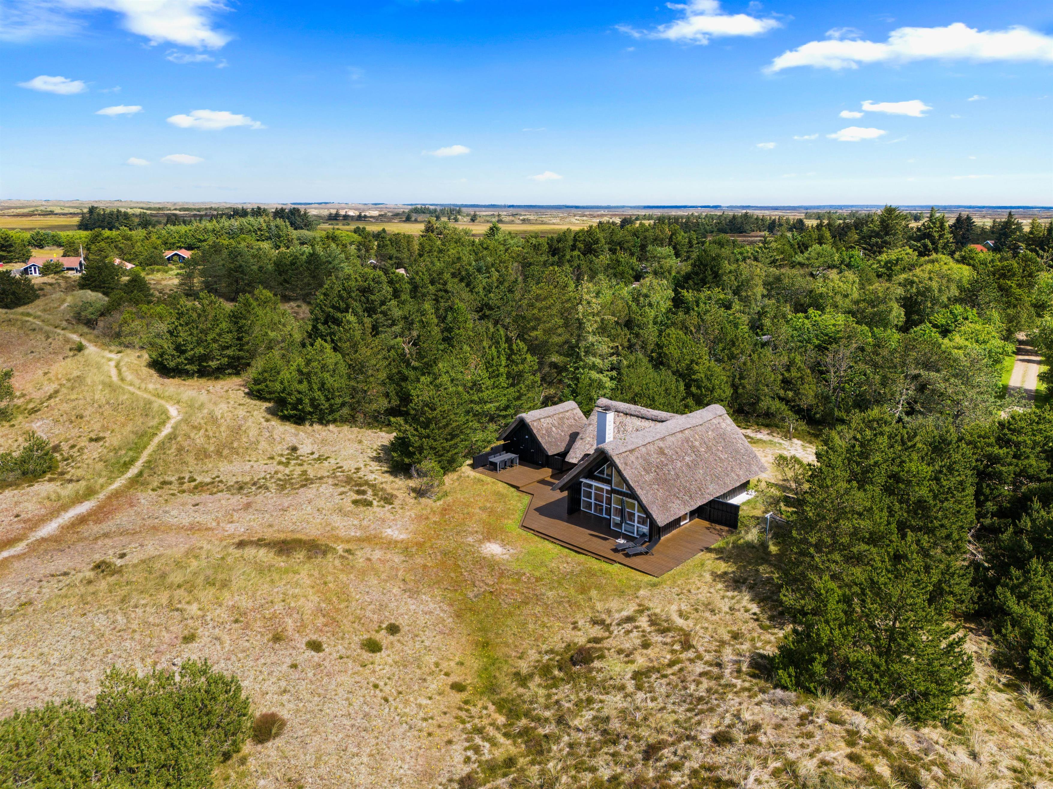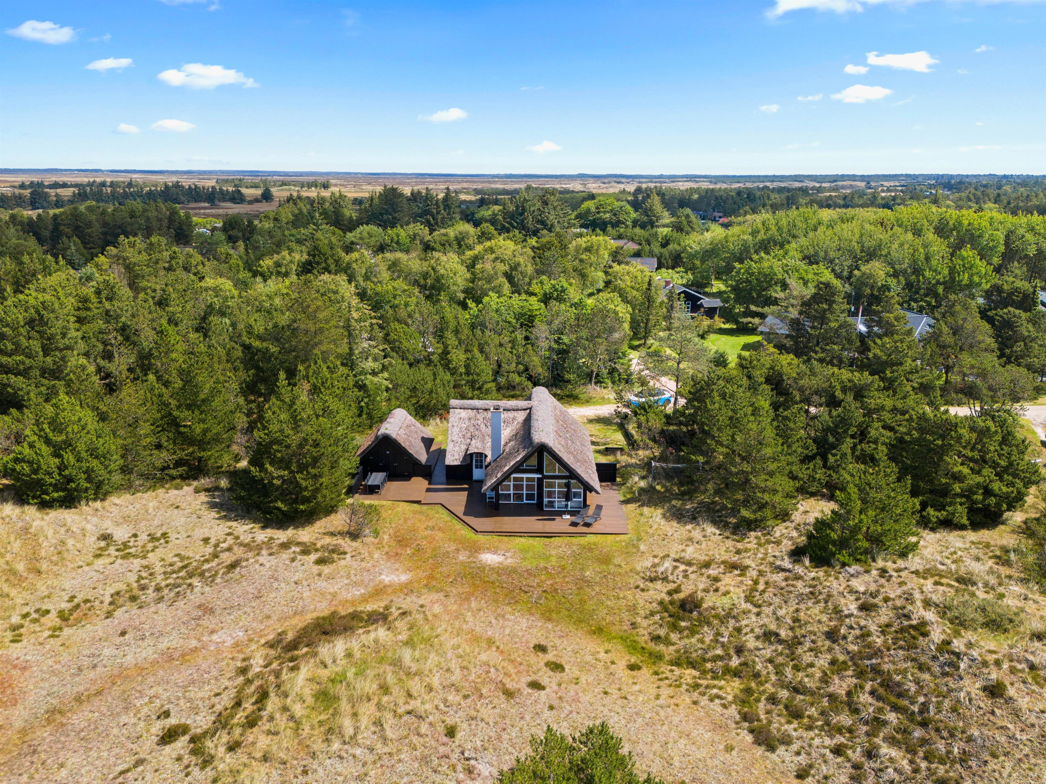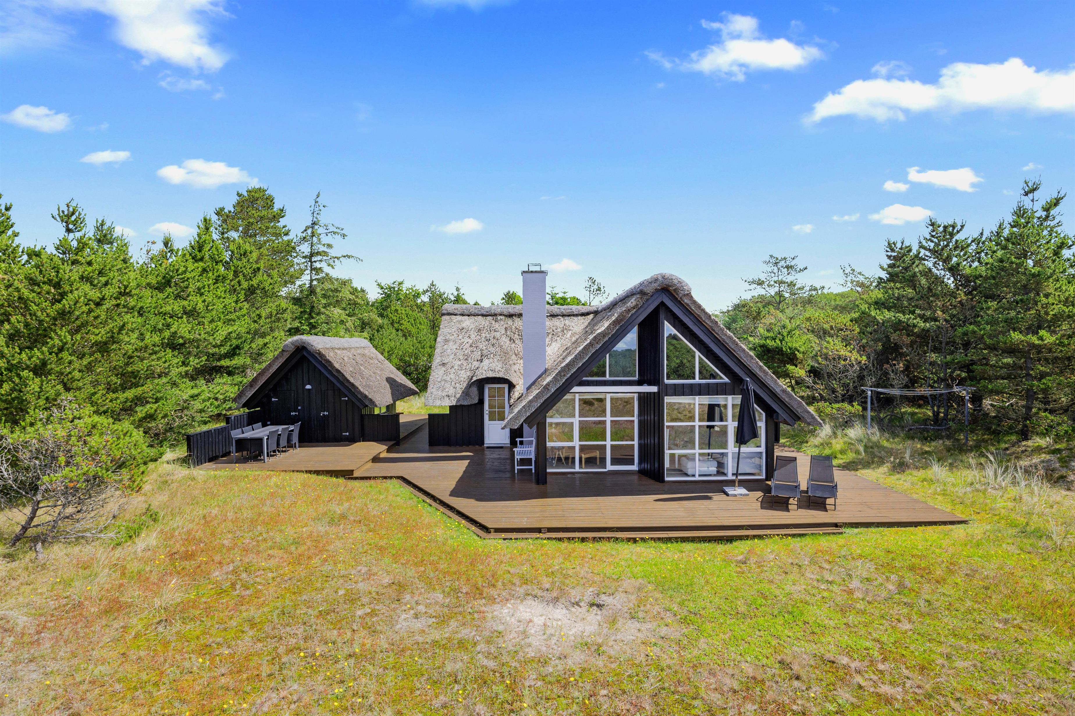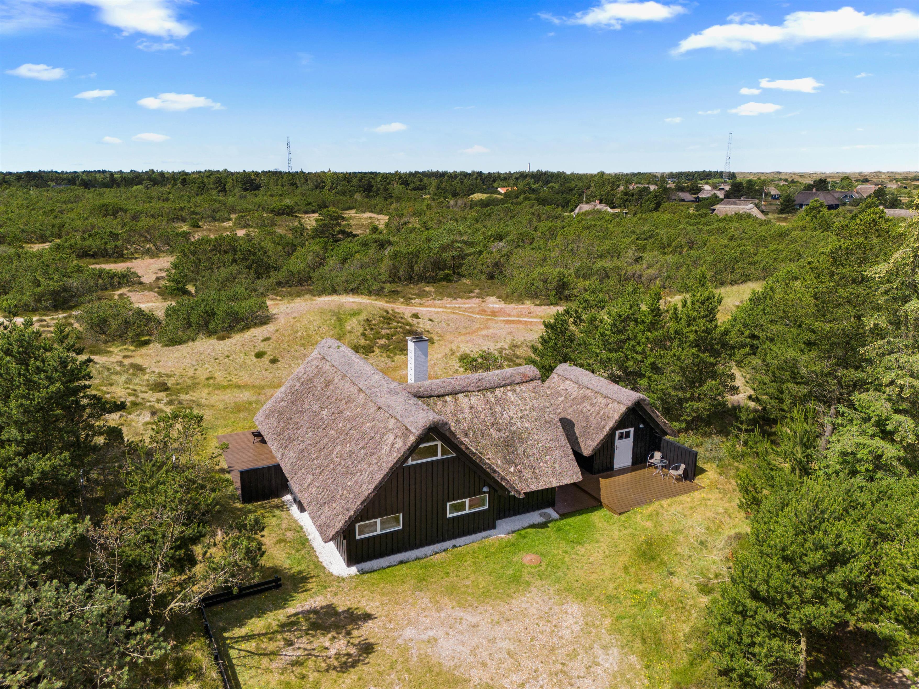 This beautiful thatched holiday home is situated on a large natural plot at Bjergbovej 27, on the outskirts of Blåvand. Set across two floors, it offers plenty of space for families of up to 5 people, and your dog is welcome too!