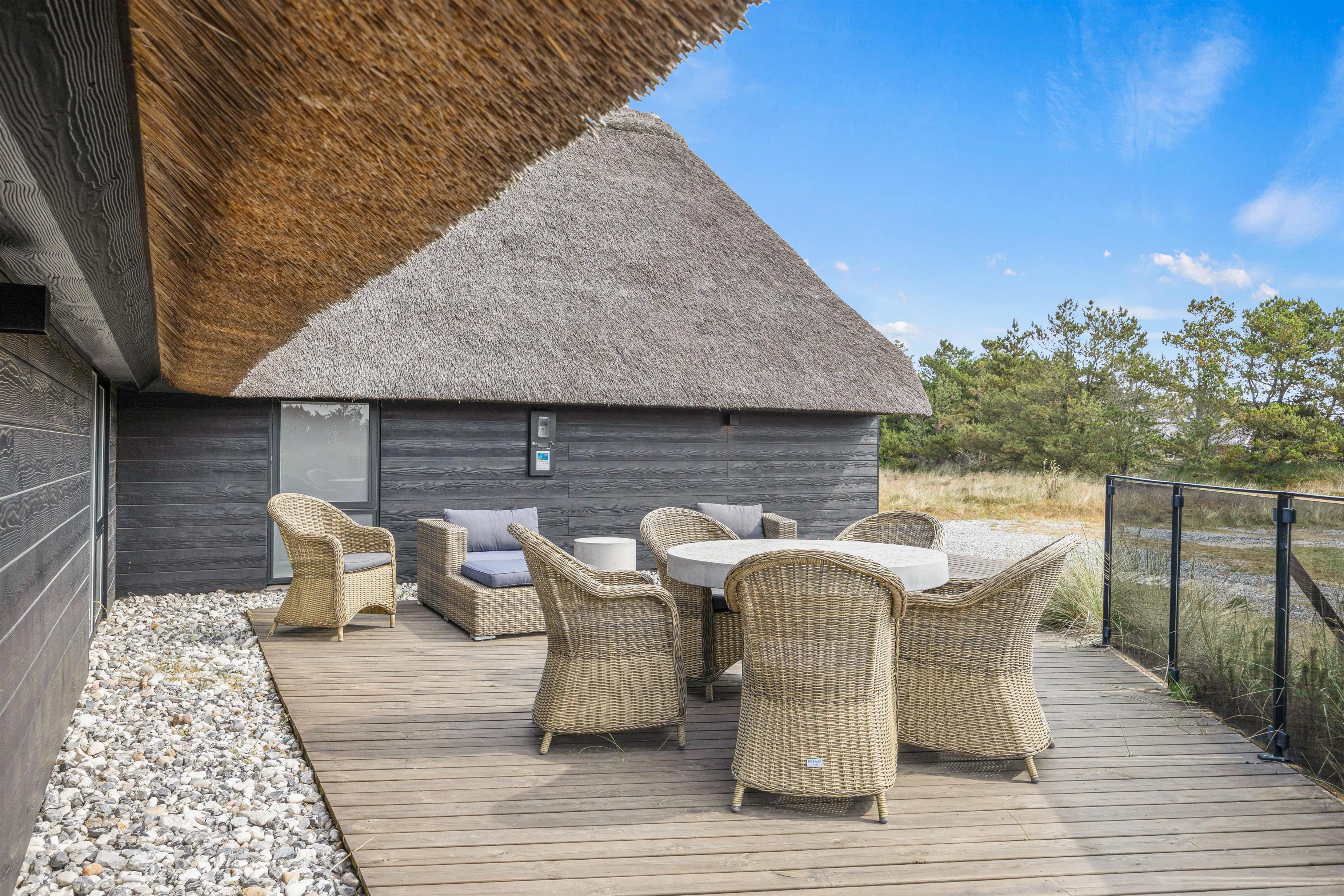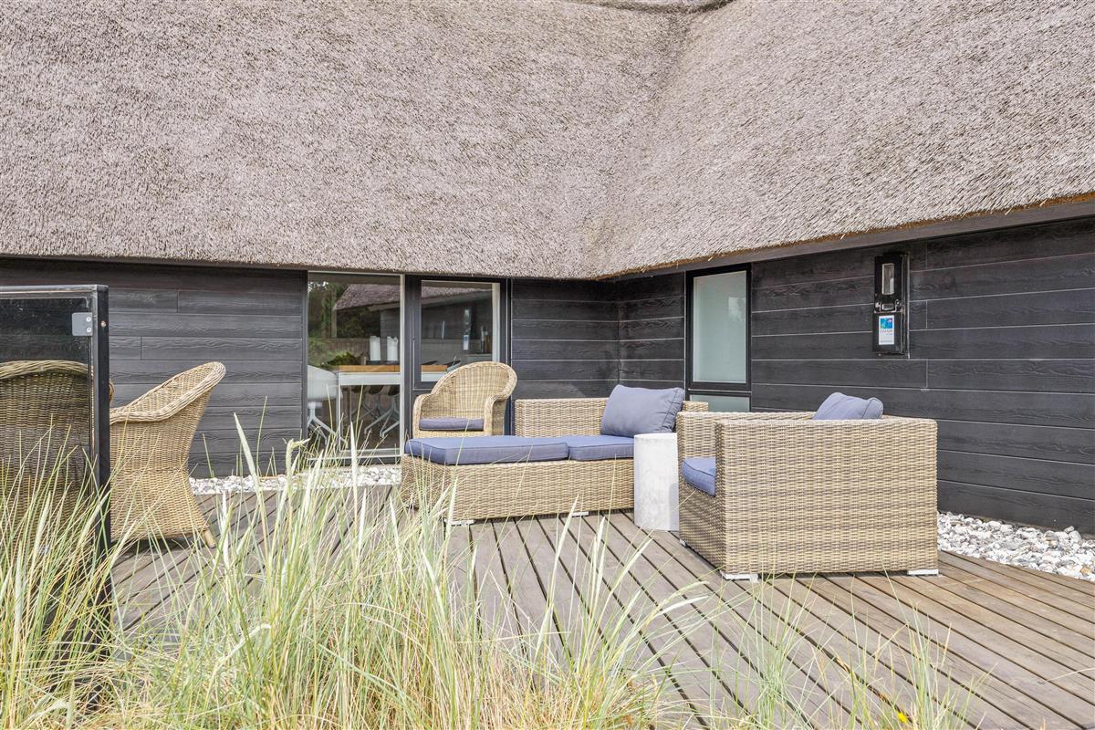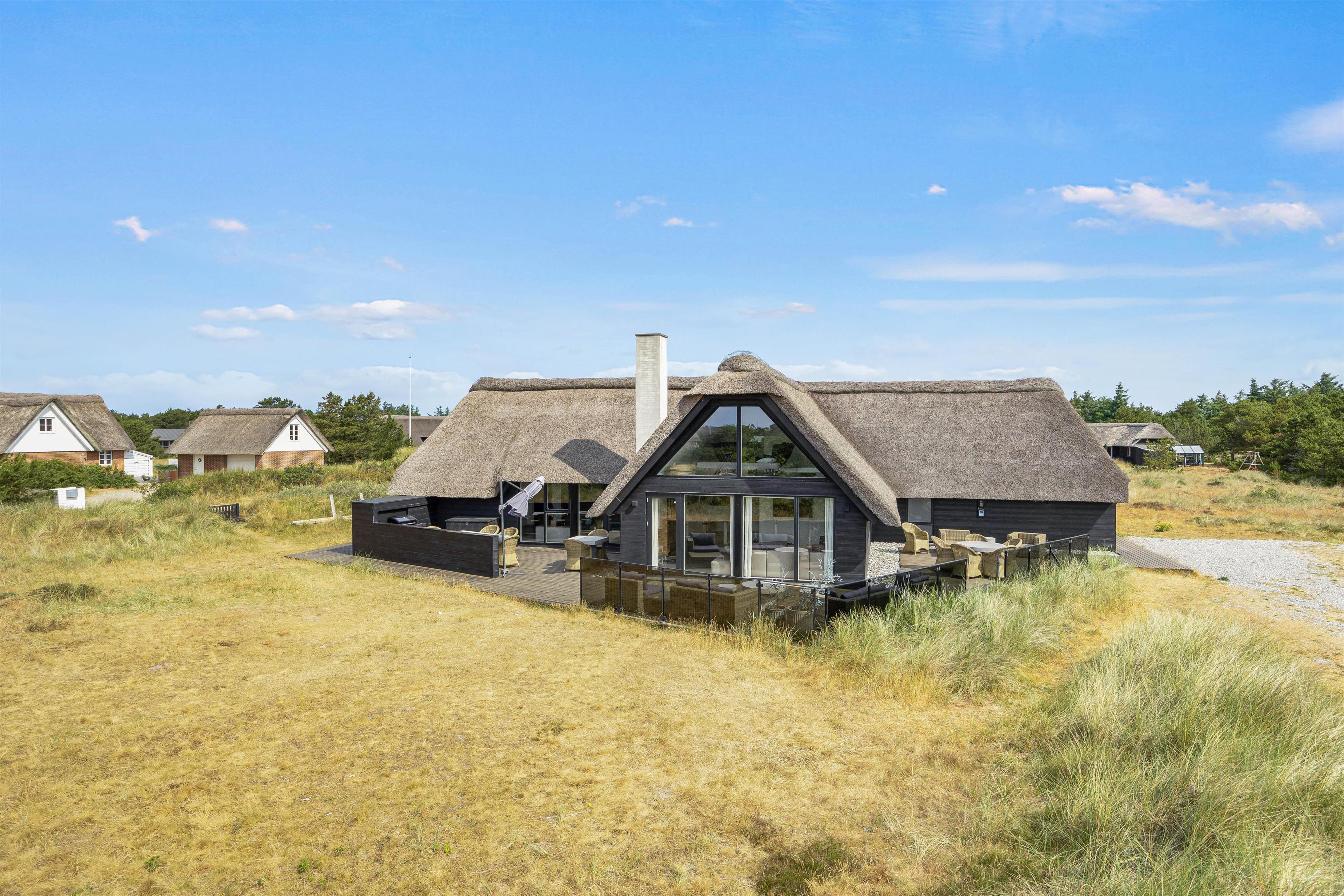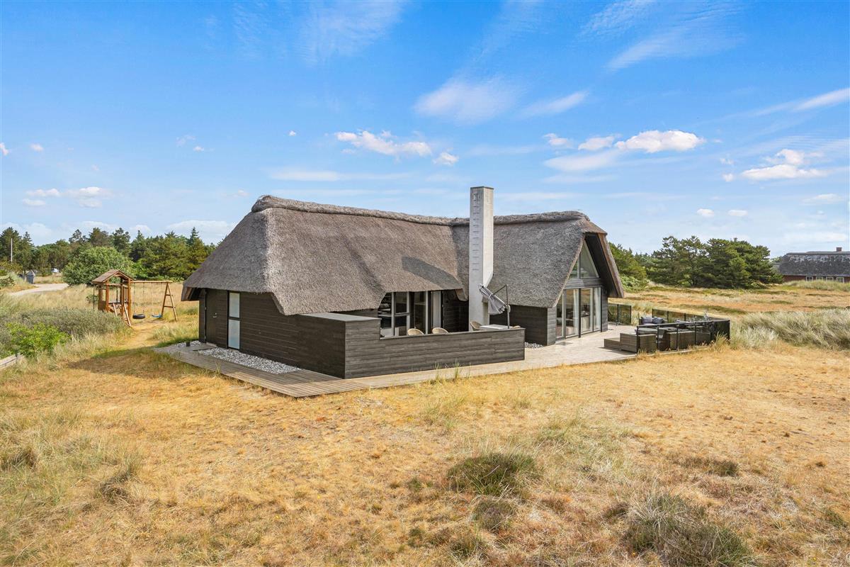 This modern thatched holiday home on Sønder Vasevej 18, renovated in 2018, offers luxury accommodation for up to 10 people in an authentic setting whilst remaining close to Western Jutland's unique natural surroundings. Here, excellent amenities and location work hand in hand to ensure an unforgettable dream holiday. One dog is also warmly welcome.