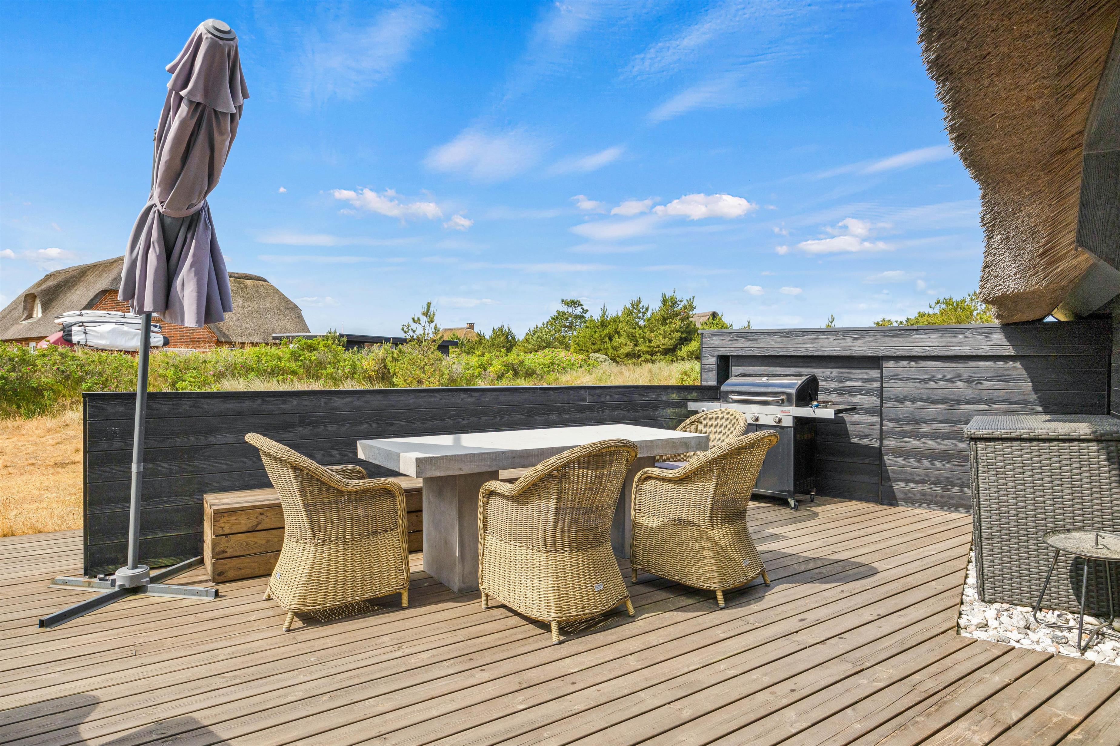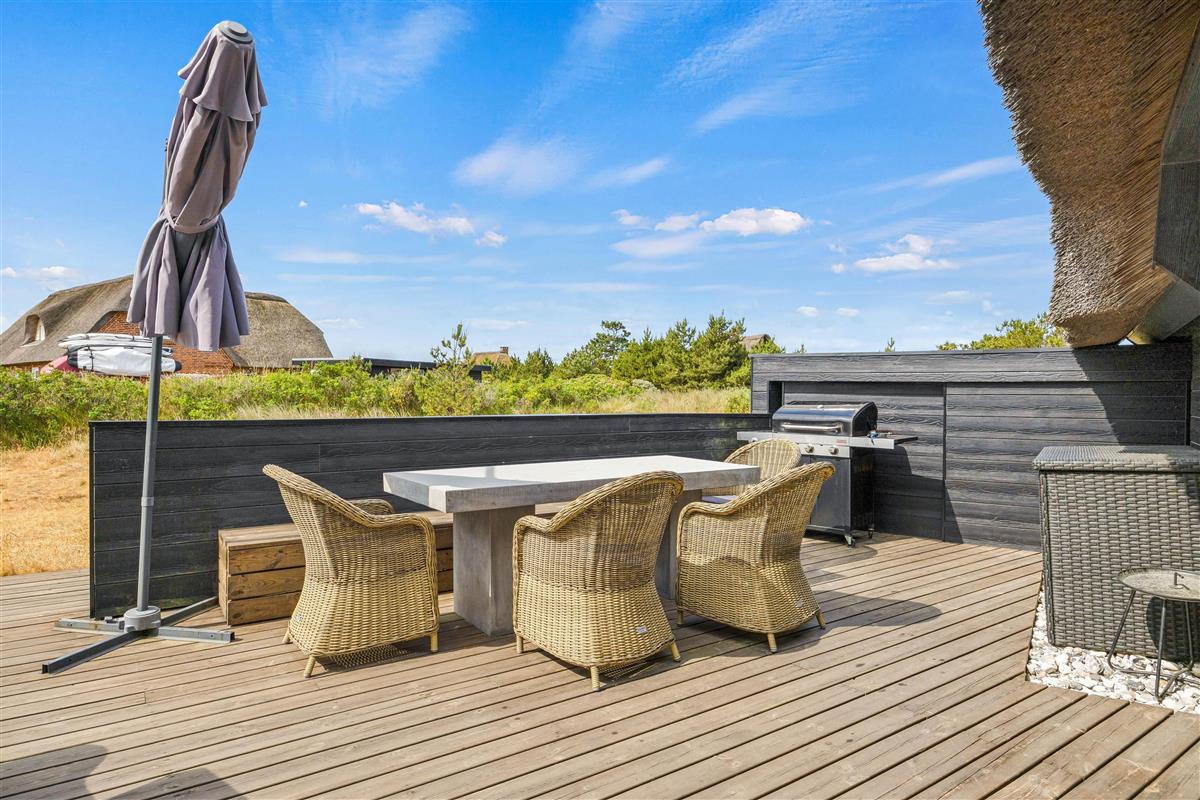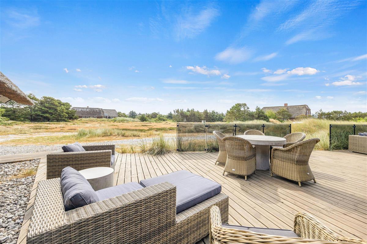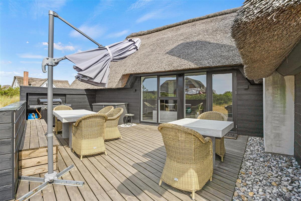 This modern thatched holiday home on Sønder Vasevej 18, renovated in 2018, offers luxury accommodation for up to 10 people in an authentic setting whilst remaining close to Western Jutland's unique natural surroundings. Here, excellent amenities and location work hand in hand to ensure an unforgettable dream holiday. One dog is also warmly welcome.