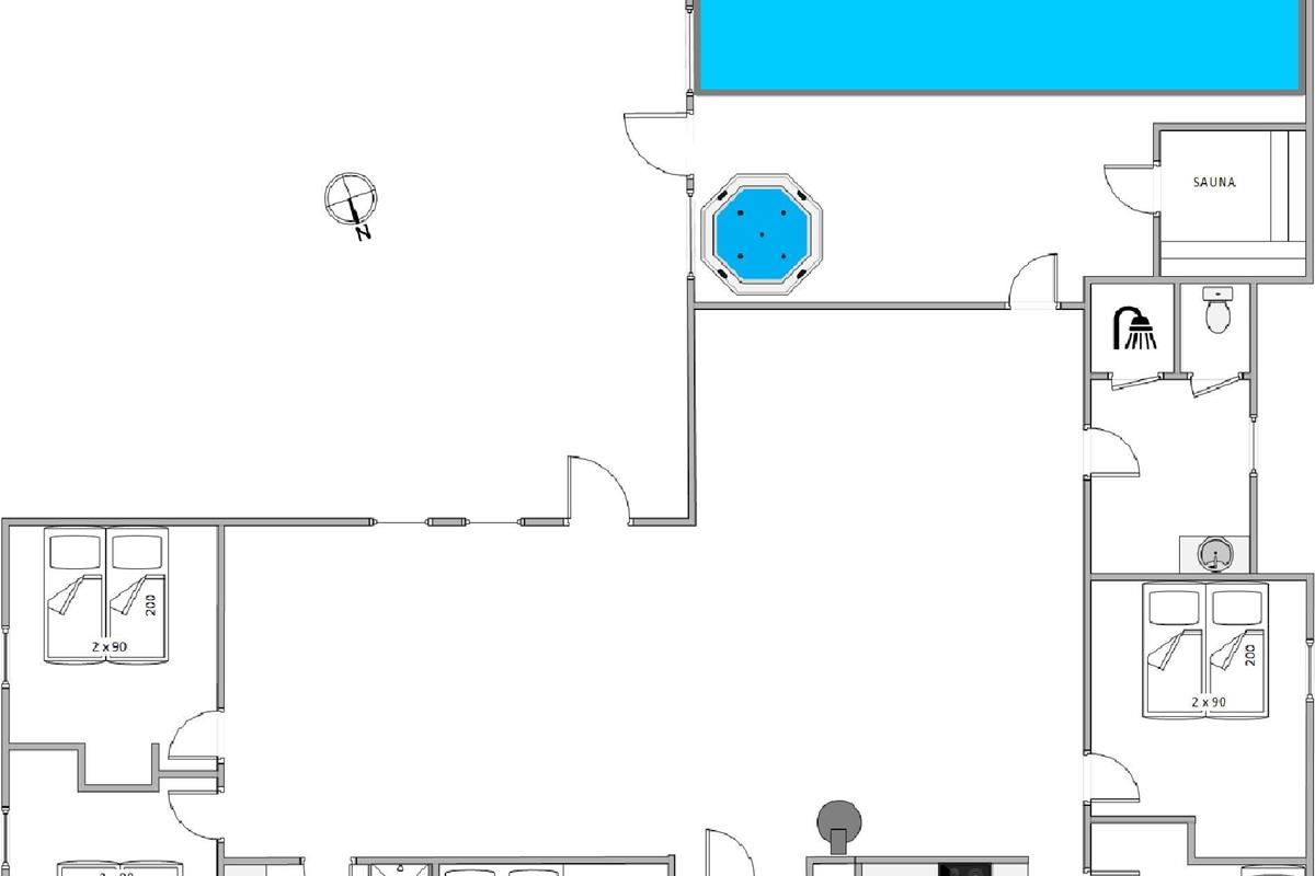 No queuing for the bathroom here! You can spread out across two bathrooms, both featuring underfloor heating and connecting to the bedrooms. The sleeping arrangements comprise five cosily furnished rooms, ensuring peaceful nights.