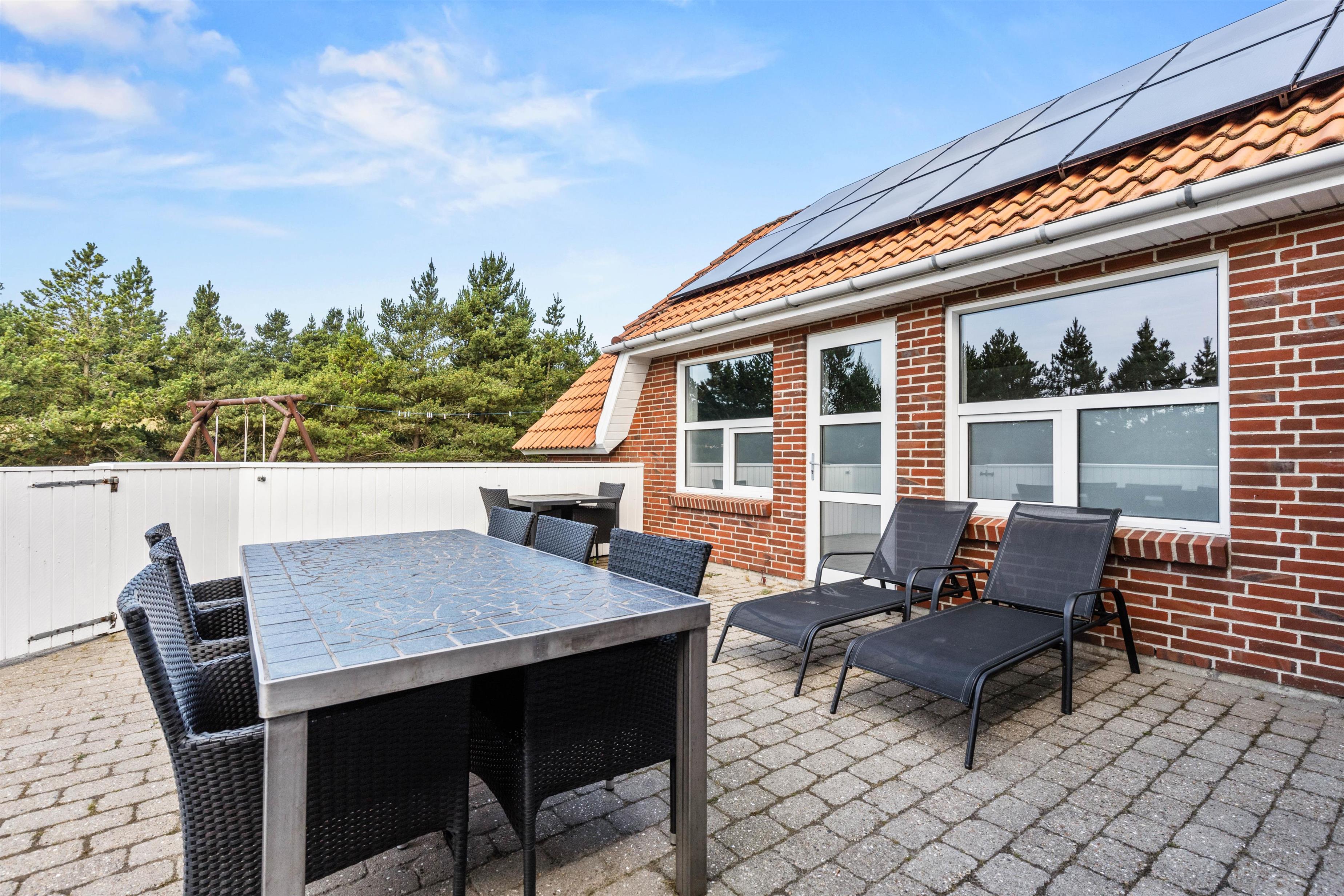 Your holiday address at Degnevangen 11 offers extensive grounds - 1,626 square metres where both adults and children can enjoy themselves. Whether lounging on sun beds, having coffee at the dining table, playing on the lawn, swinging, or playing in the sandpit - everything is possible.