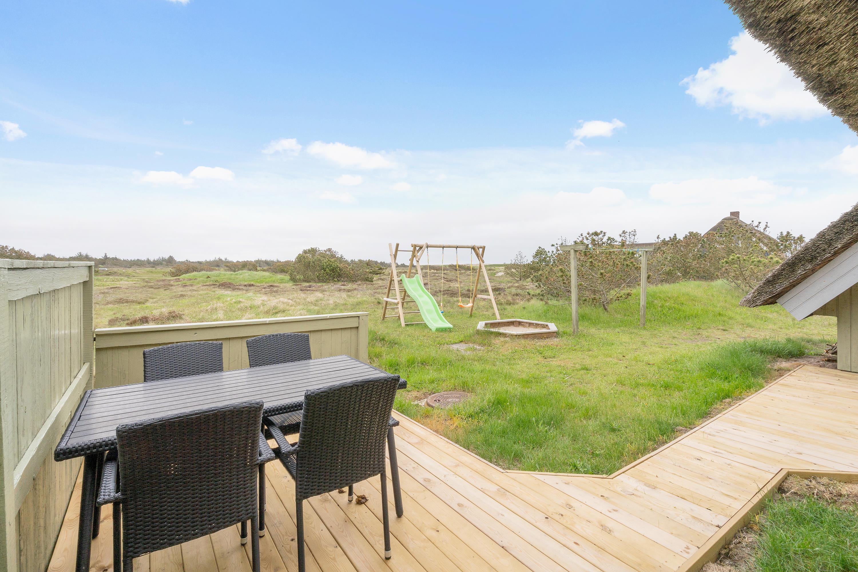 Original in style and traditional in character - welcome to Stæhrsvej 27 in the popular holiday destination of Blåvand. This thatched-roof summer house, nestled in the heathland landscape, offers not only seaside accommodation, but also beautiful sea views and a prime beach location - just 150 metres from the wide sandy beach. The holiday home accommodates 6 people and up to 2 dogs.
