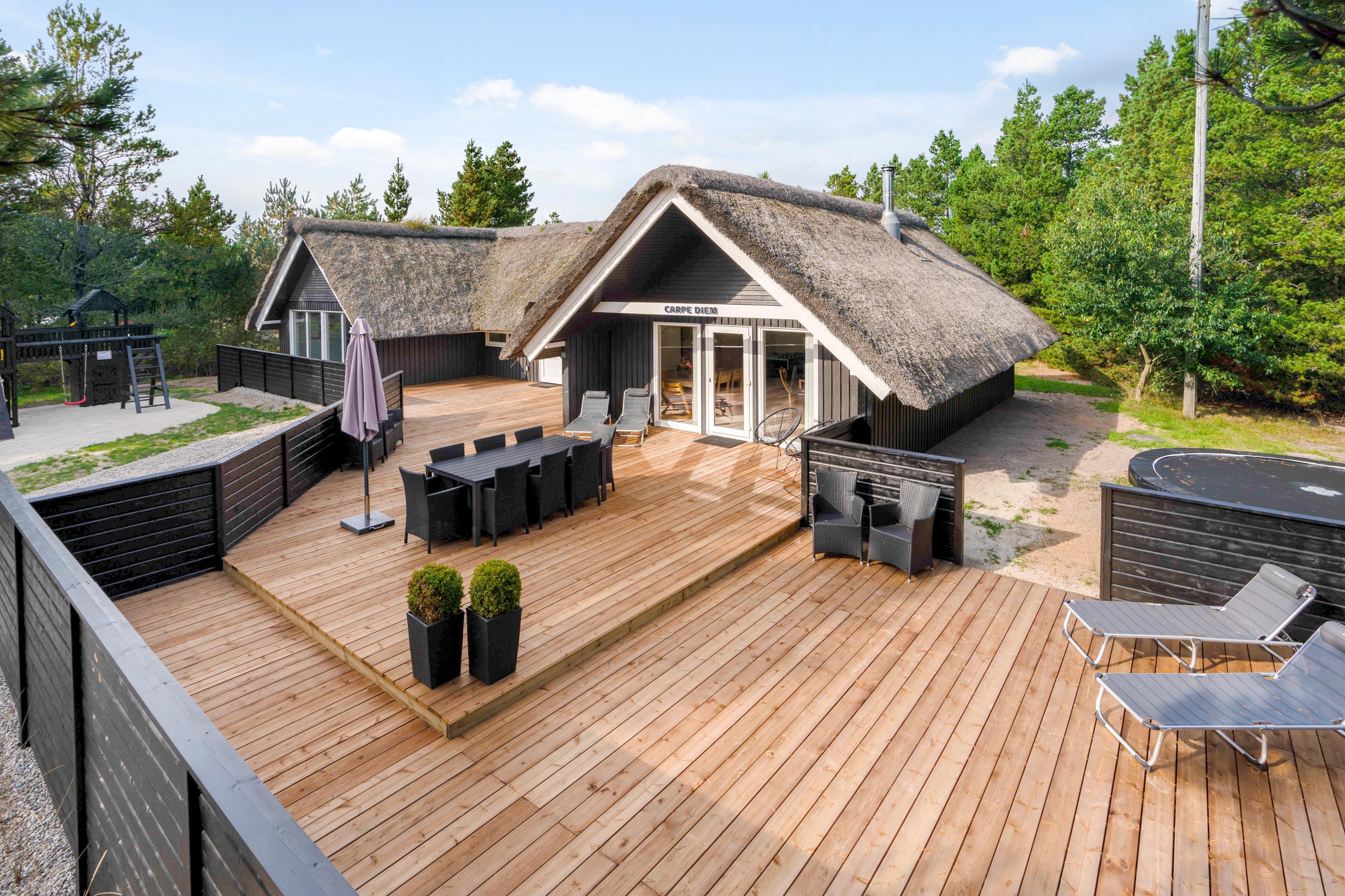 Situated on a generous 3,000-square-metre plot, well-screened by trees and bushes at the entrance to Blåvand, this well-maintained holiday home with pool was freshly renovated in 2020. It's perfect for water enthusiasts and active holidaymakers looking for a break from everyday life with a touch of wellness.