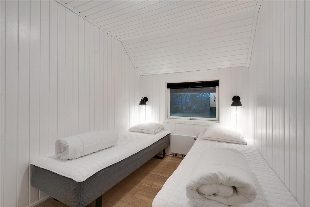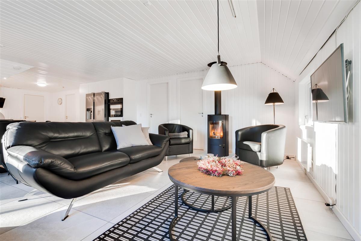 There are four bedrooms and two bathrooms with underfloor heating, making it ideal for two families holidaying together. The house is heated by a heat pump, while you can also enjoy the wood-burning stove centrally located in the living area.