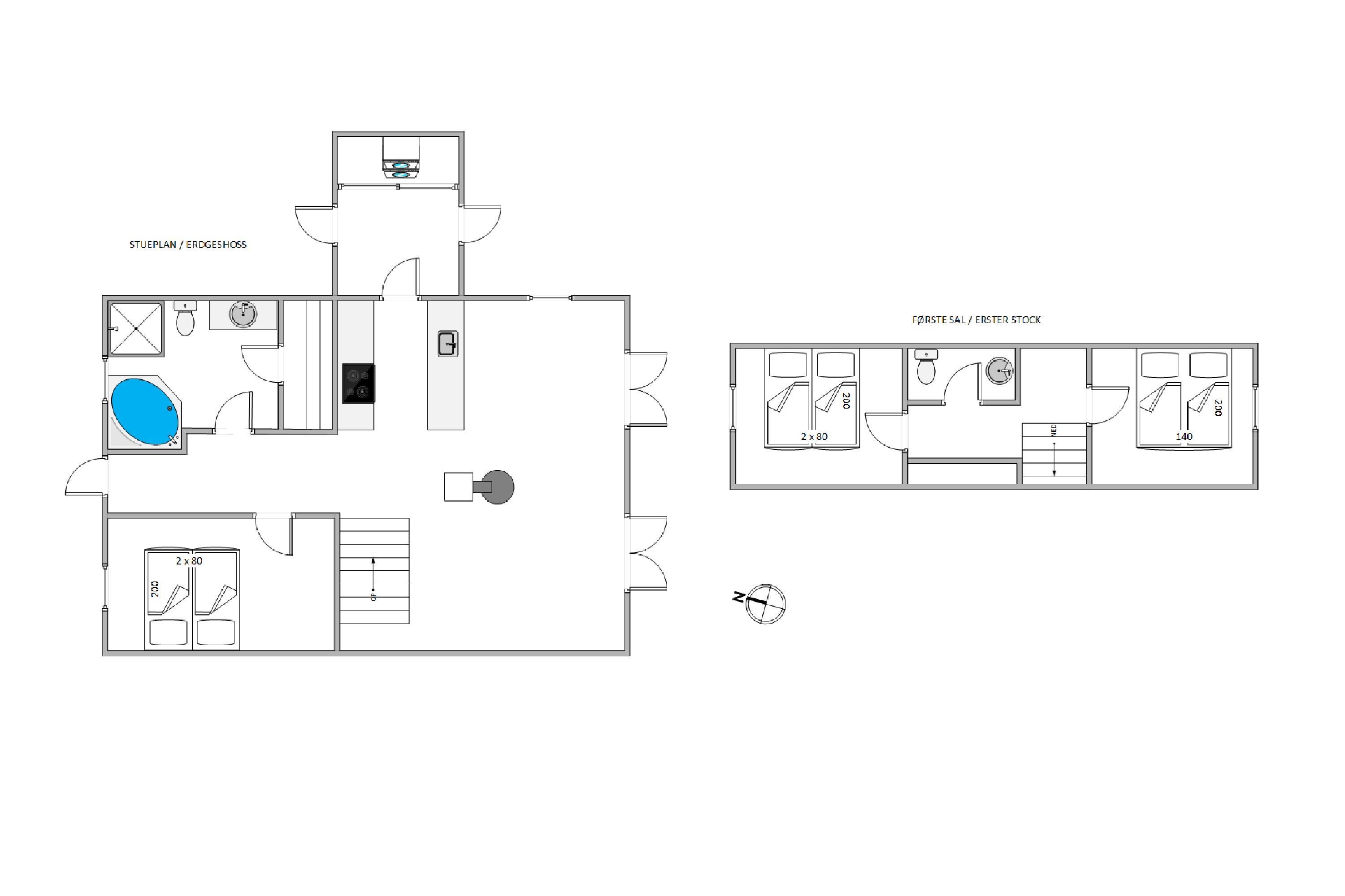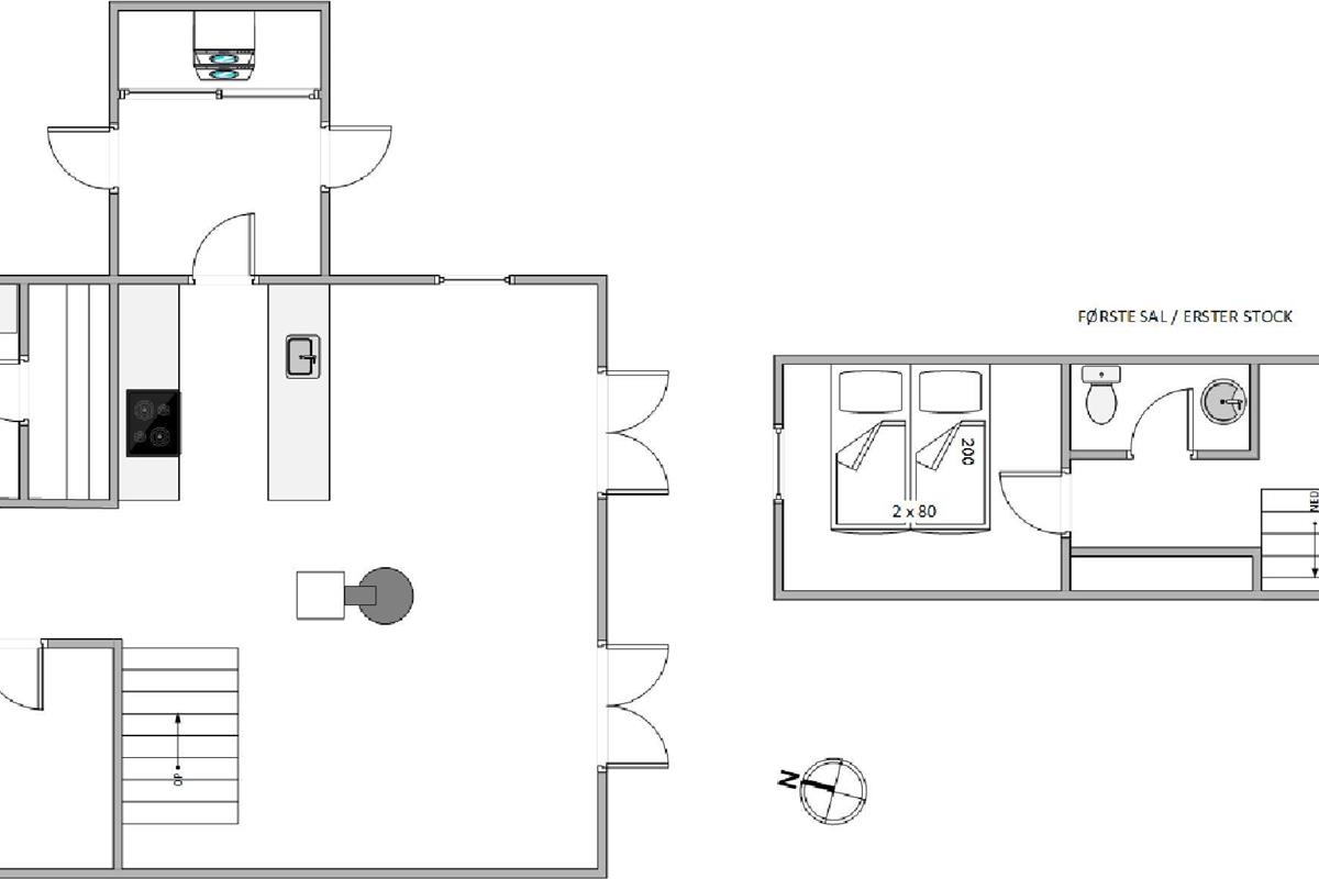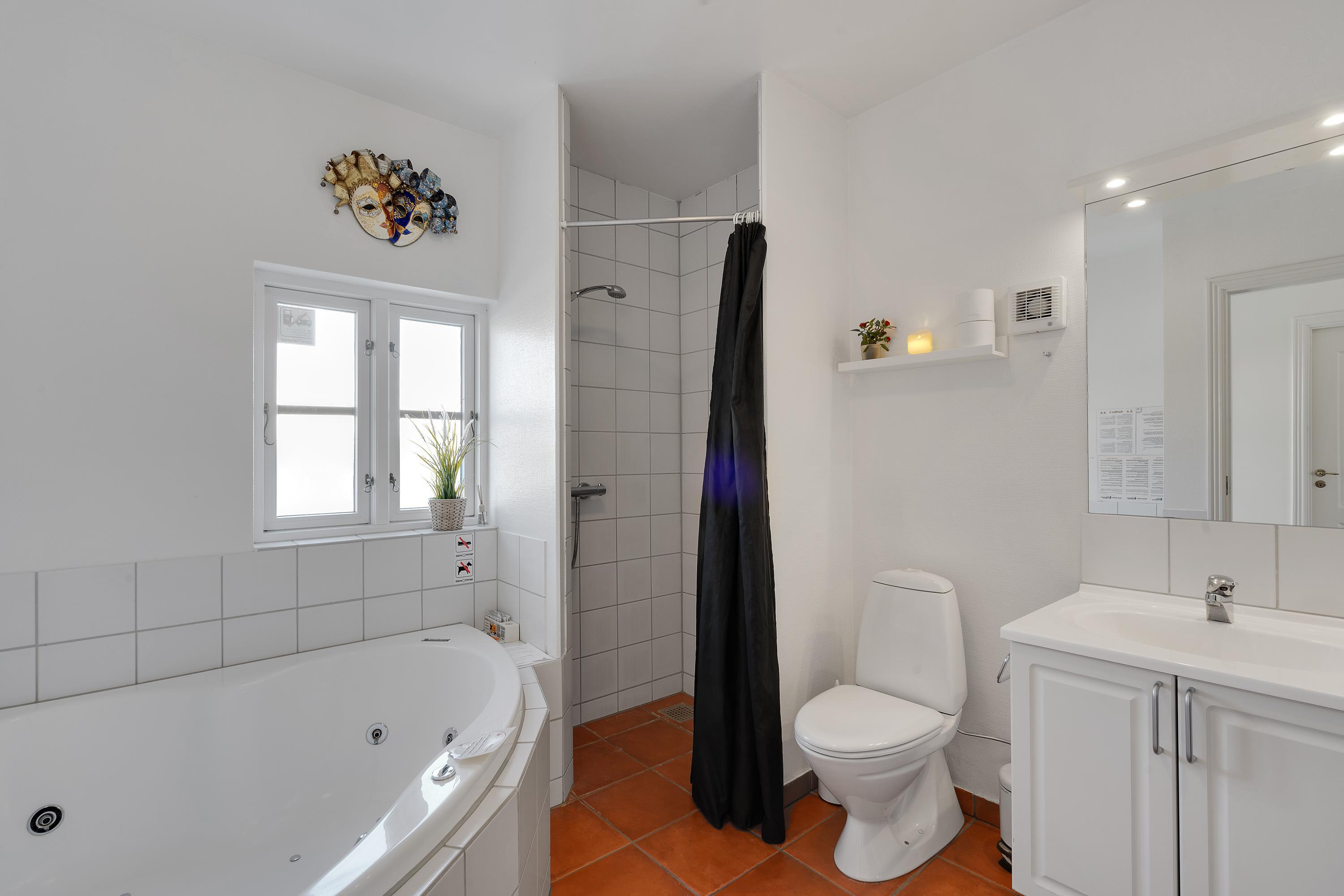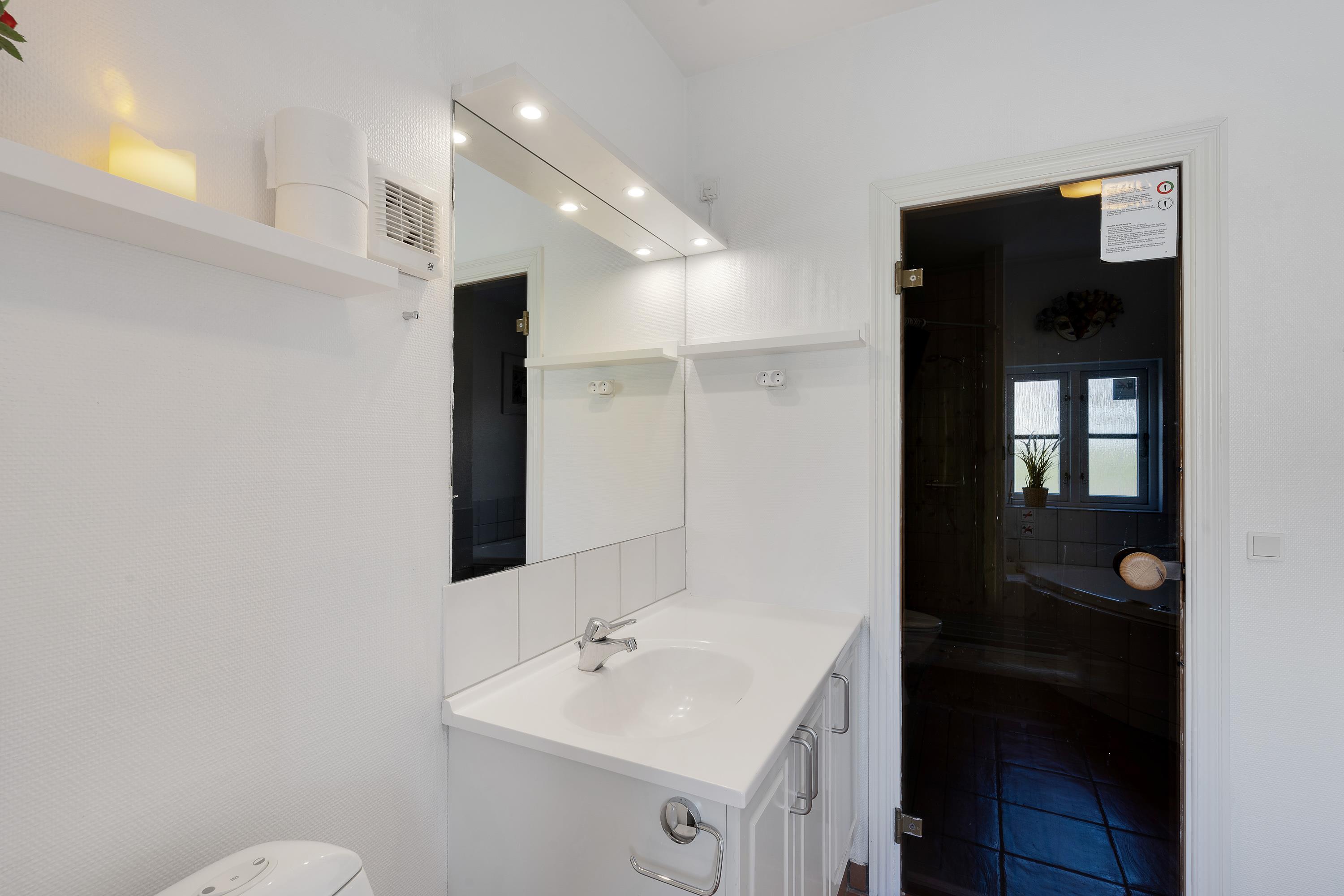 The bathroom features comfortable underfloor heating. The sauna and hot tub cater to your need for soothing warmth and will contribute to peaceful nights in your cosy bedrooms - one on the ground floor and two upstairs - where you can drift off completely relaxed. The first floor also includes a guest toilet.