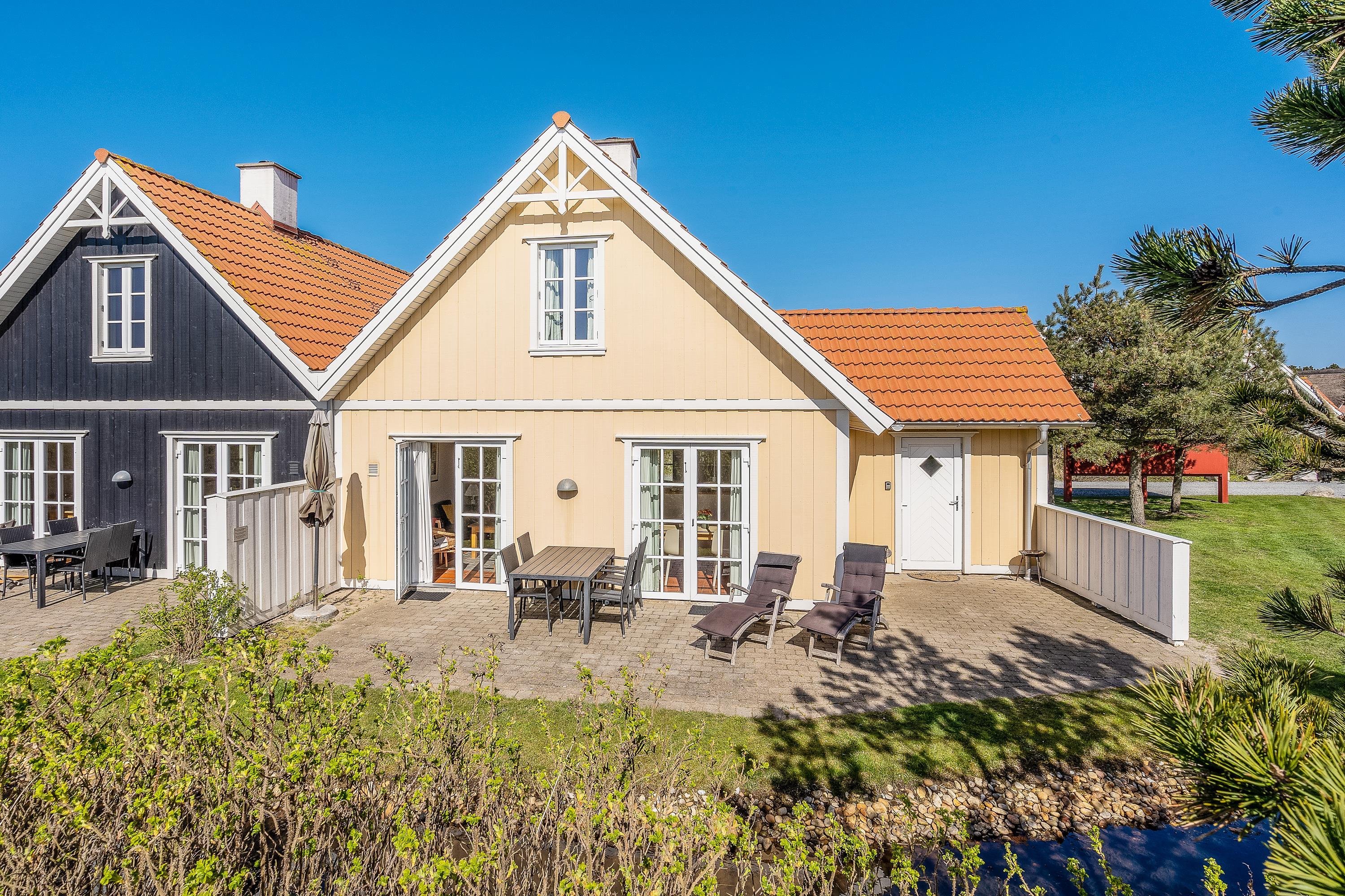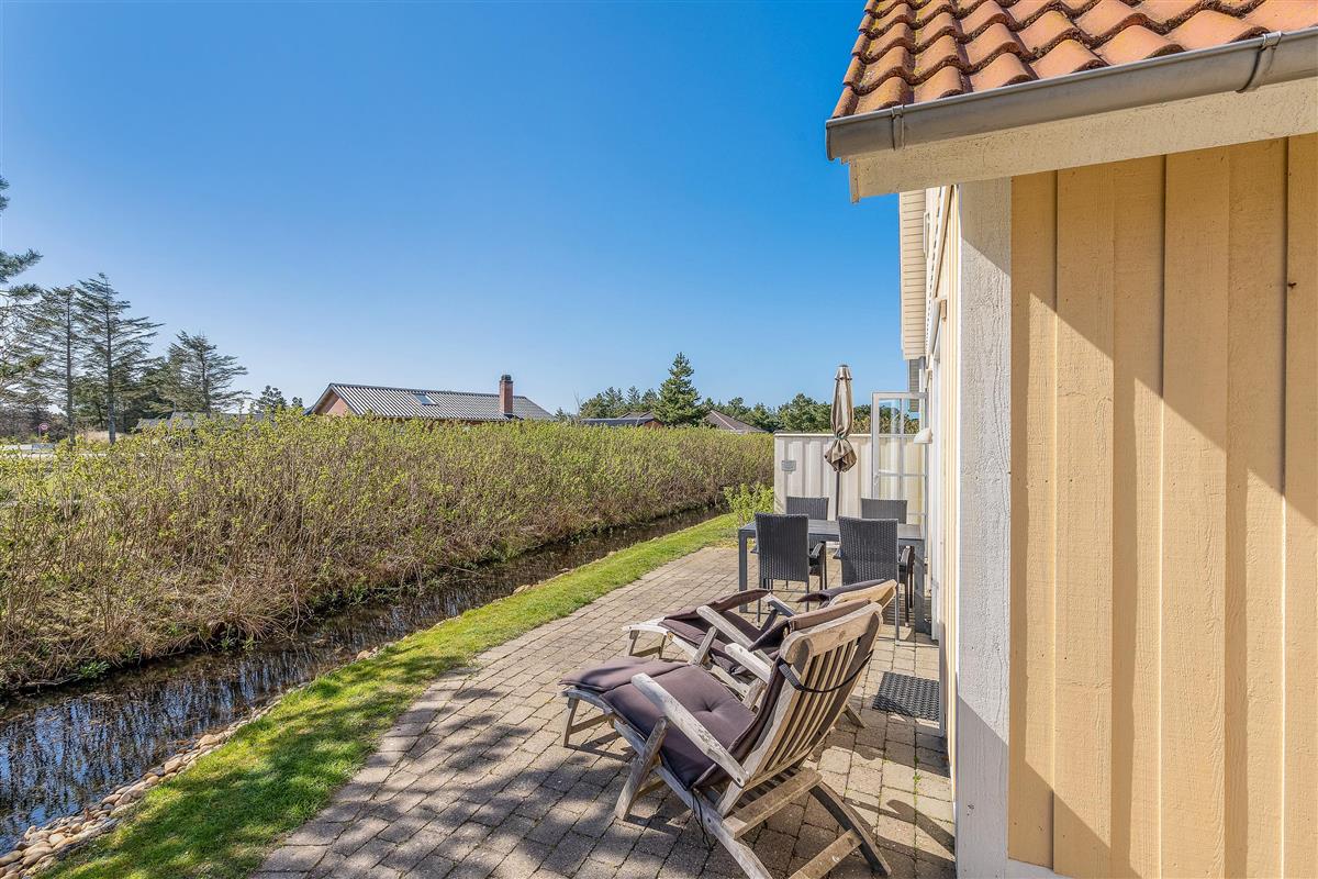 Located at Horns Bjerge 3-99, you're just 100 metres from Blåvand's centre, a lively holiday destination that invites you to shop and stroll with its many stores, various restaurants and charming street cafés. After shopping, relax on the south-facing terrace, enjoy the warmth of the sun's rays and listen to the babbling of the stream that flows past the house.