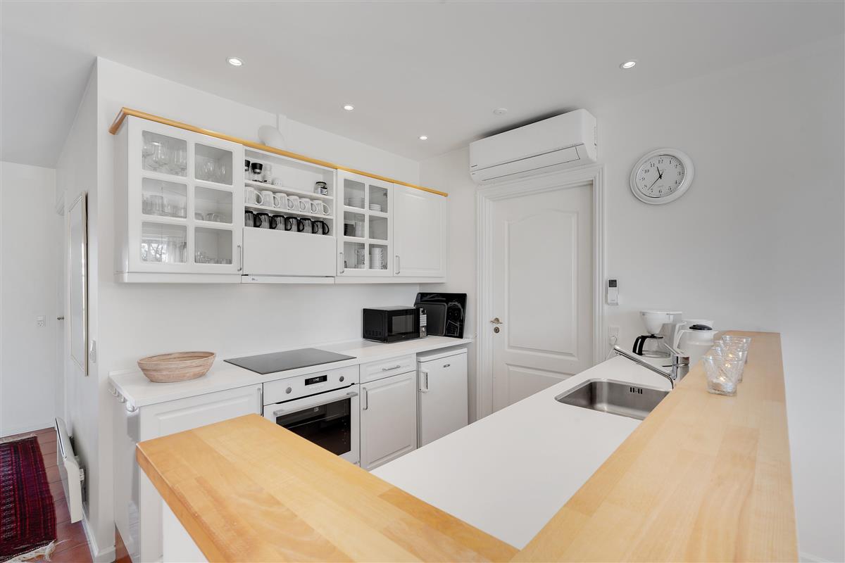 The bright open-plan kitchen, dining and living area will undoubtedly become the family gathering spot for a friendly board game or a nice cup of coffee. This space is heated by an energy-efficient heat pump, and in the evening, light up the wood-burning stove for extra cosiness.