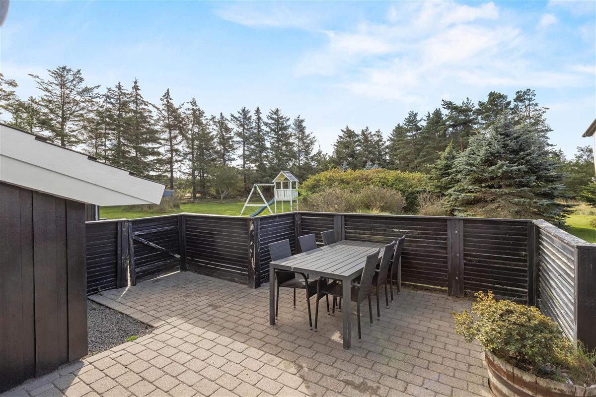 In the outdoor area, you can fully enjoy the Danish nature. The terrace, which wraps almost entirely around the house, is fenced. There are several seating areas and sun loungers where you can enjoy the fresh air in peace. Children can have fun playing ball games, using the swings and exploring nature.