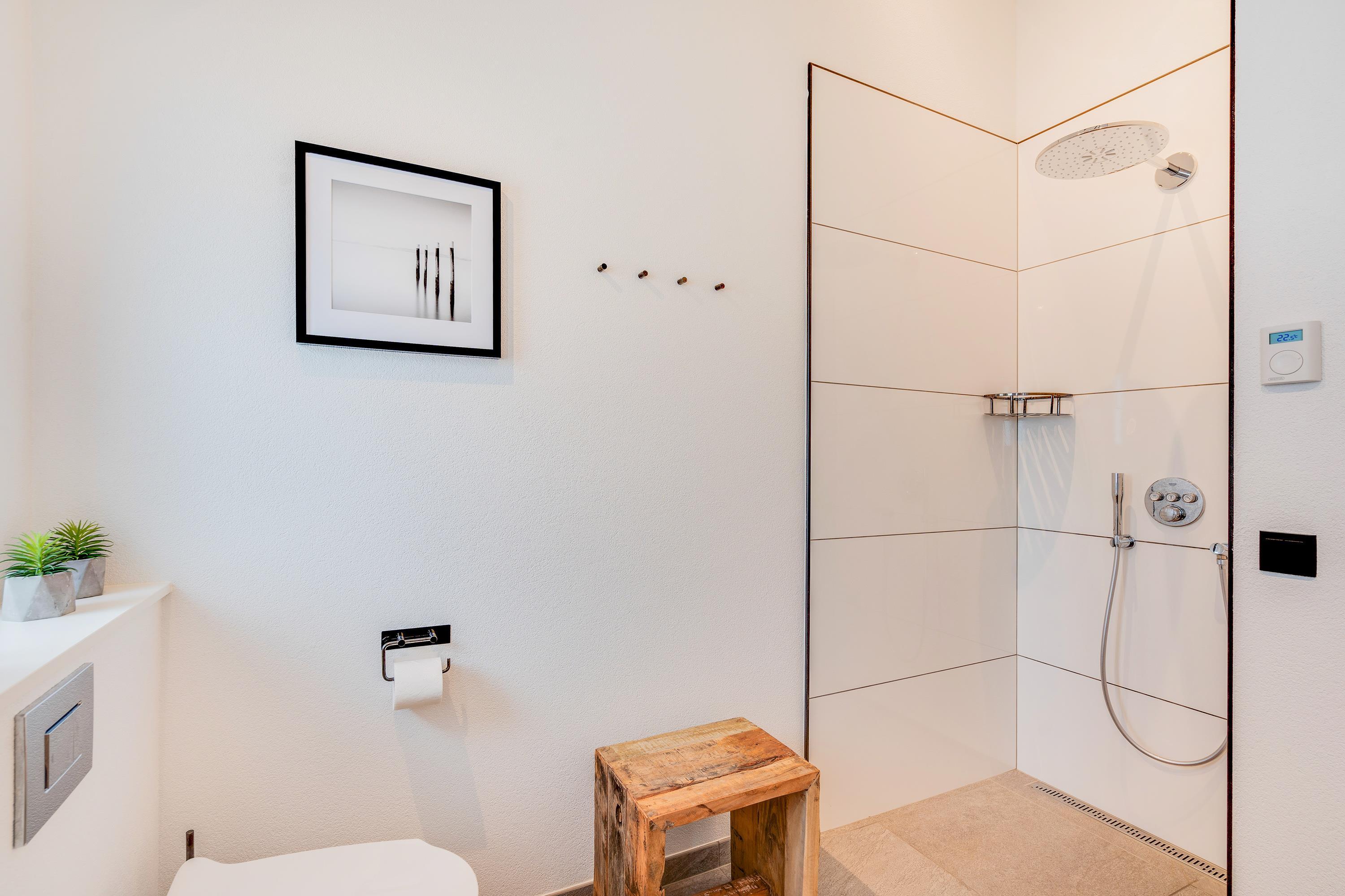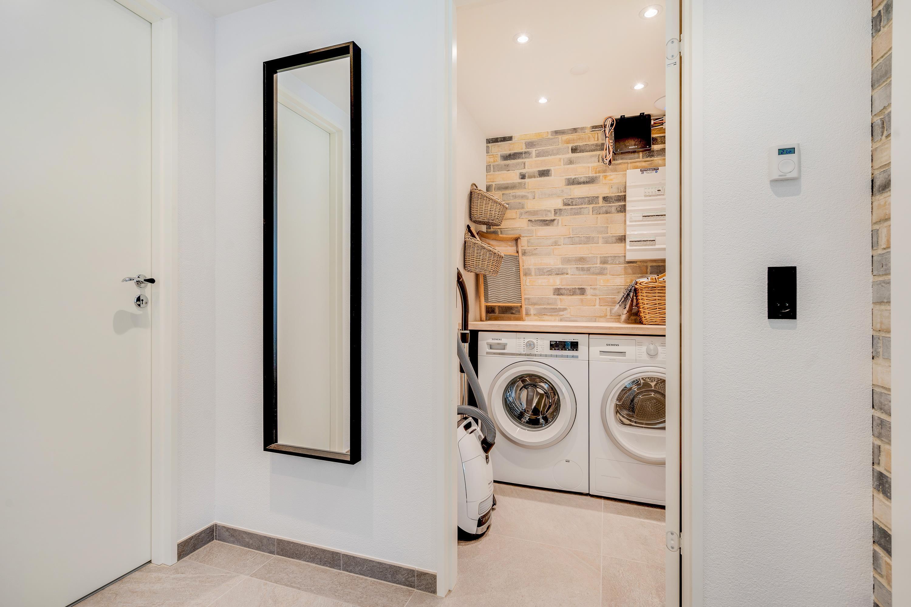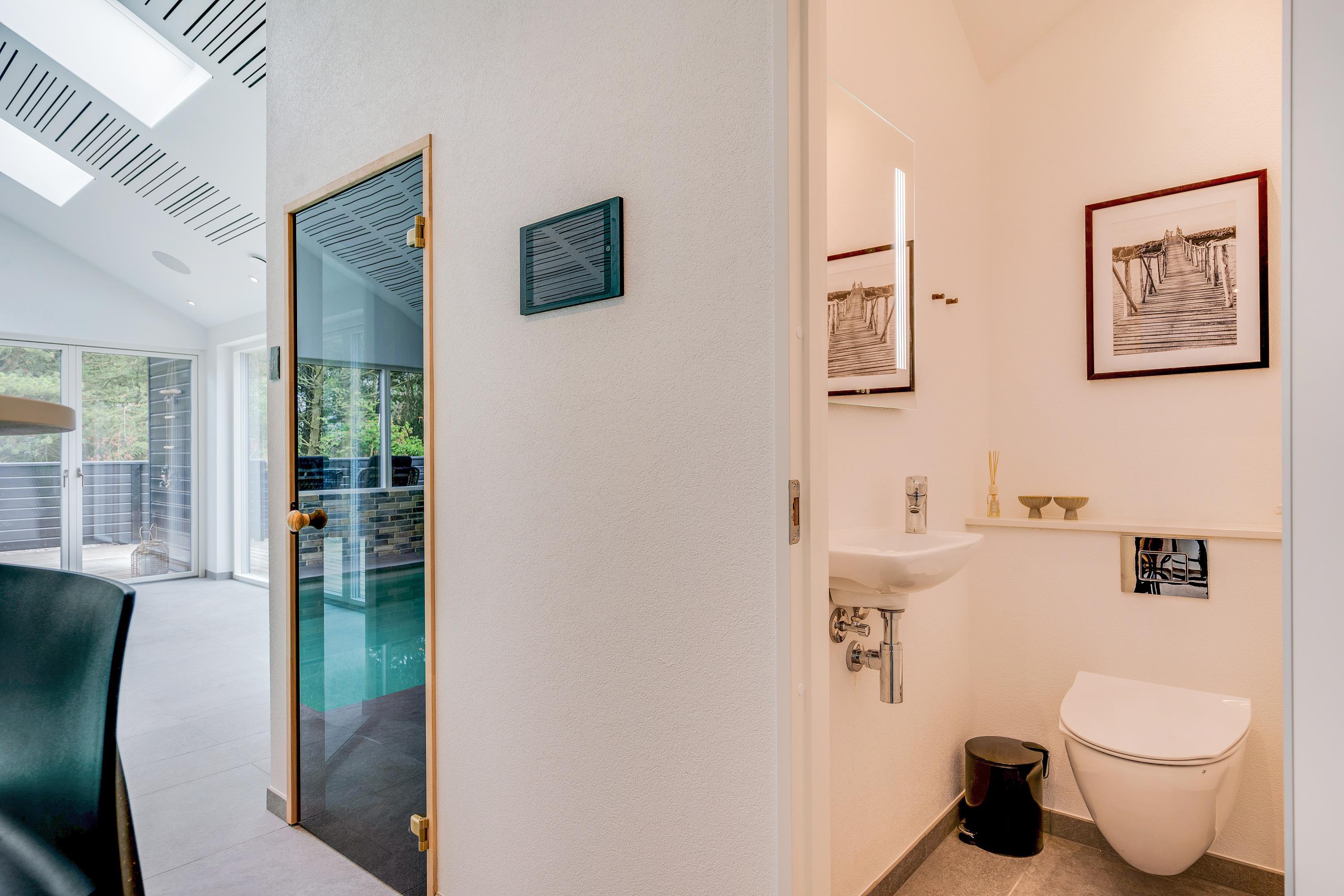 To avoid bathroom queues and ensure comfort, there are three bathrooms and a guest toilet, all fitted with underfloor heating. The house is also equipped with a dishwasher, washing machine and tumble dryer.