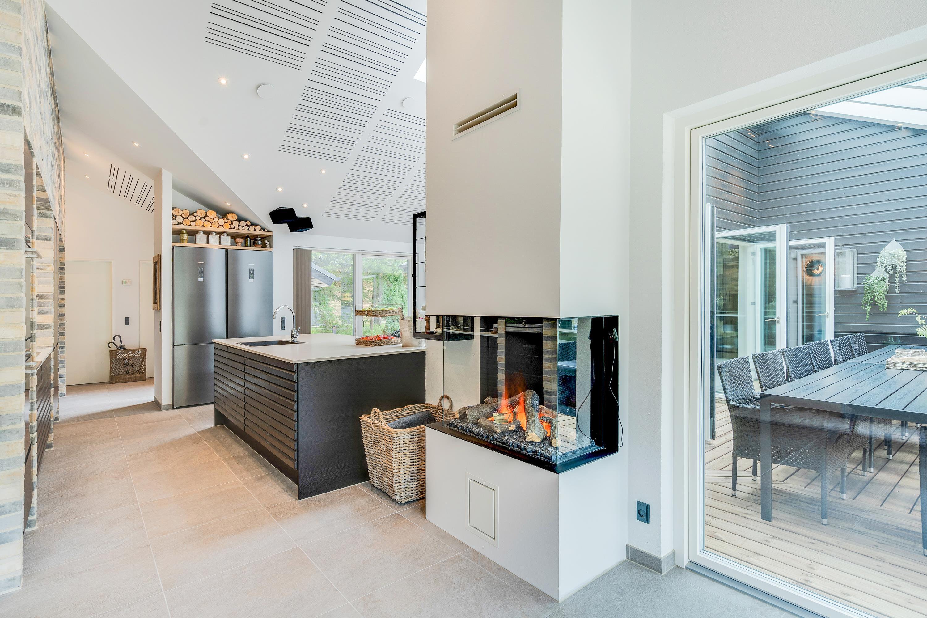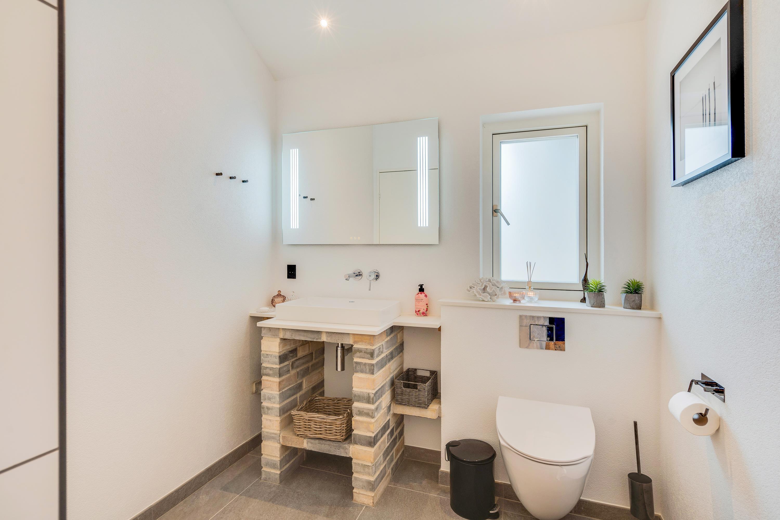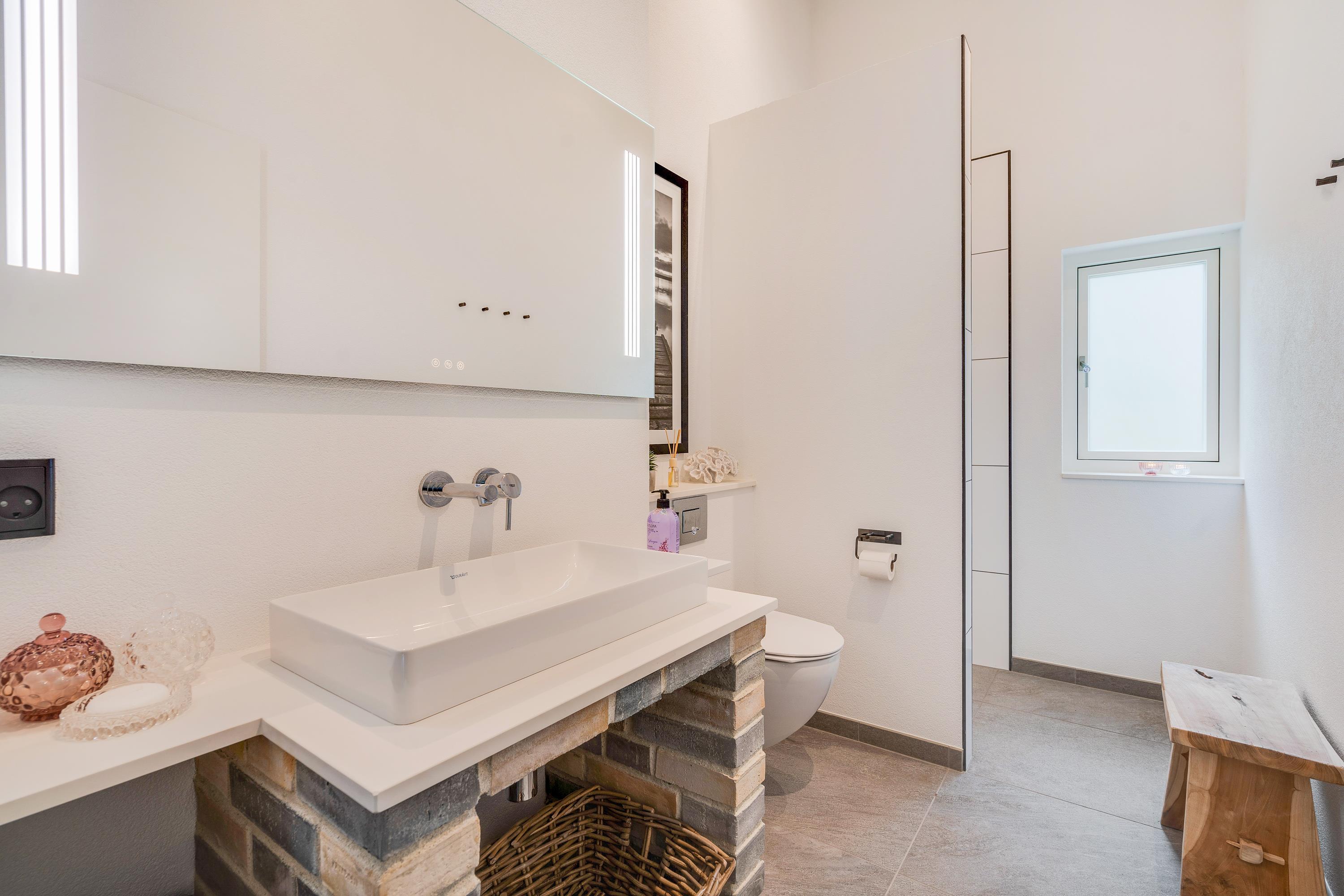 To avoid bathroom queues and ensure comfort, there are three bathrooms and a guest toilet, all fitted with underfloor heating. The house is also equipped with a dishwasher, washing machine and tumble dryer.