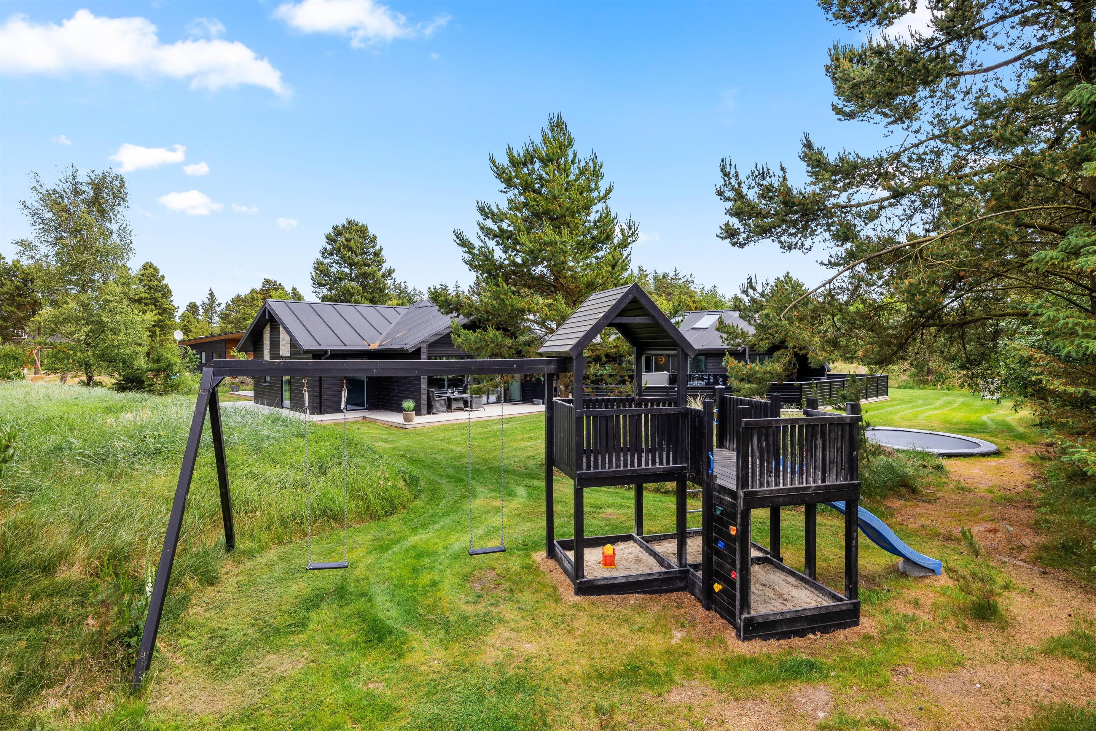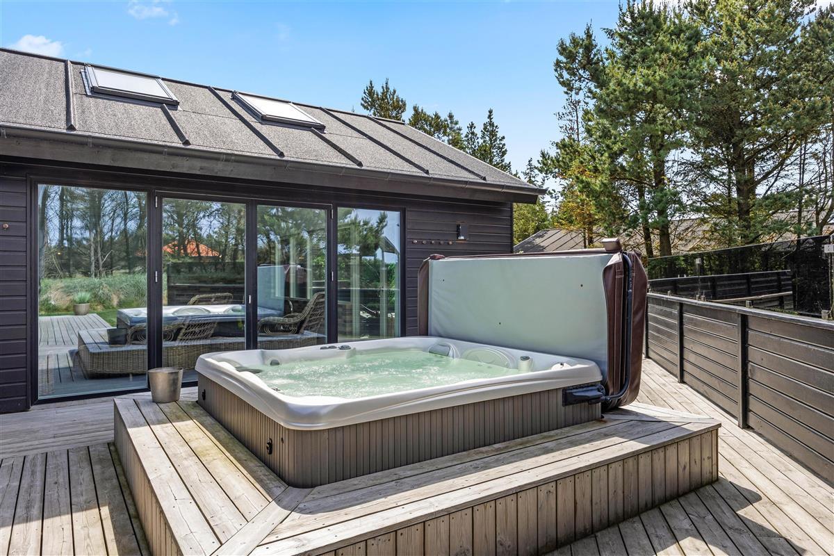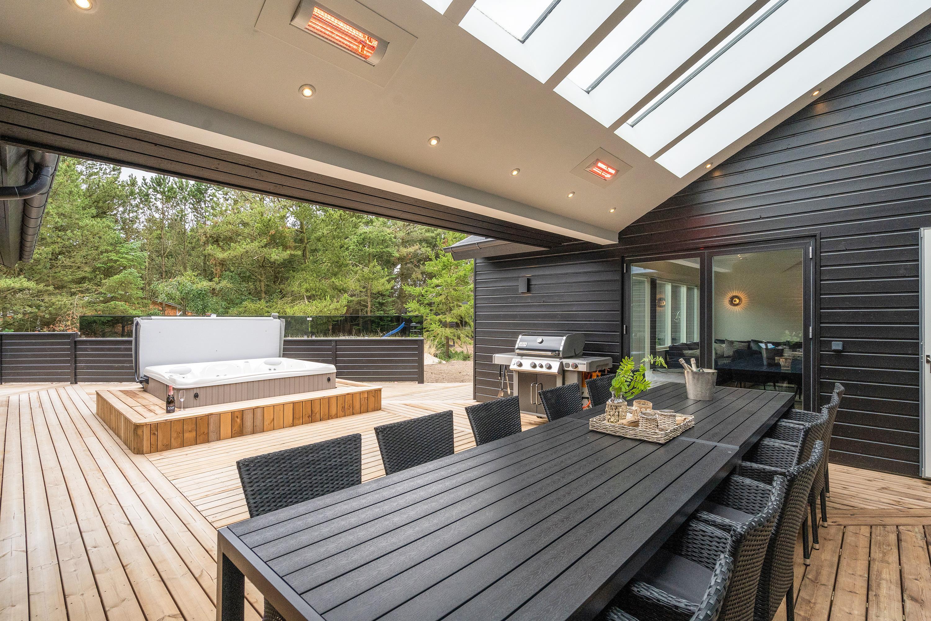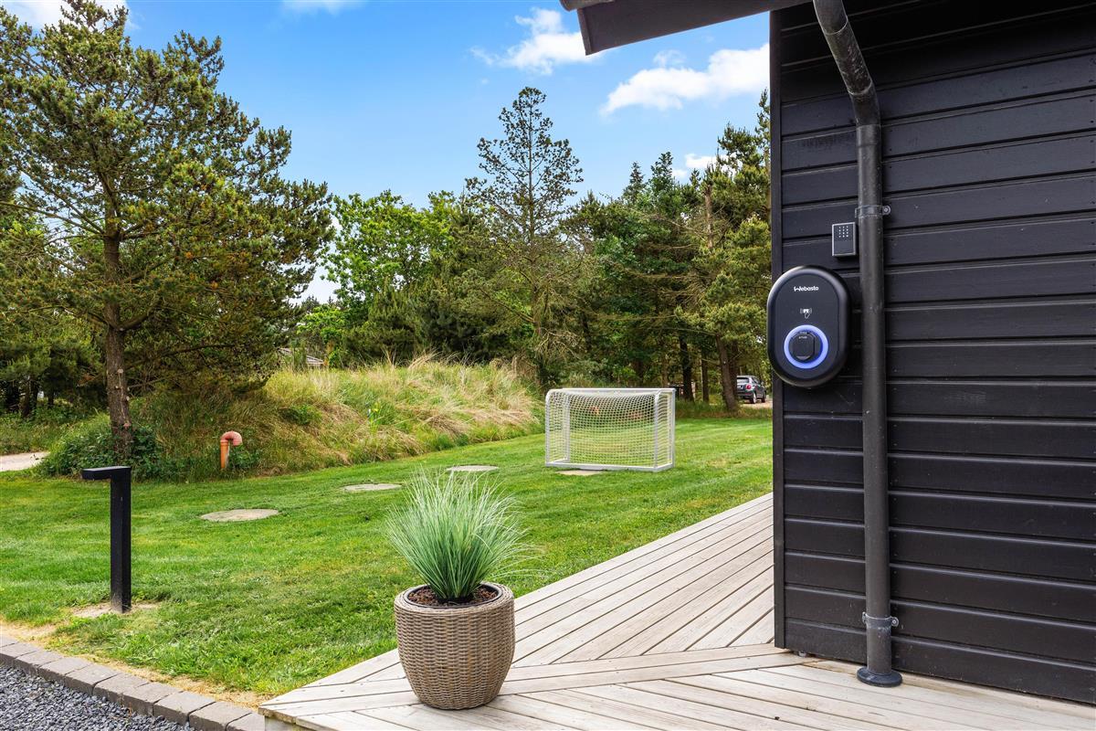 More than just luxury! This spacious holiday home at Peter Malersvej 27, built in 2020, is not only centrally located in Blåvand but also features a large swimming pool, outdoor hot tub, traditional sauna and infrared sauna. The extensive grounds offer plenty of space for all 12 guests and their dog to play, with children's play equipment available. Every comfort has been considered.