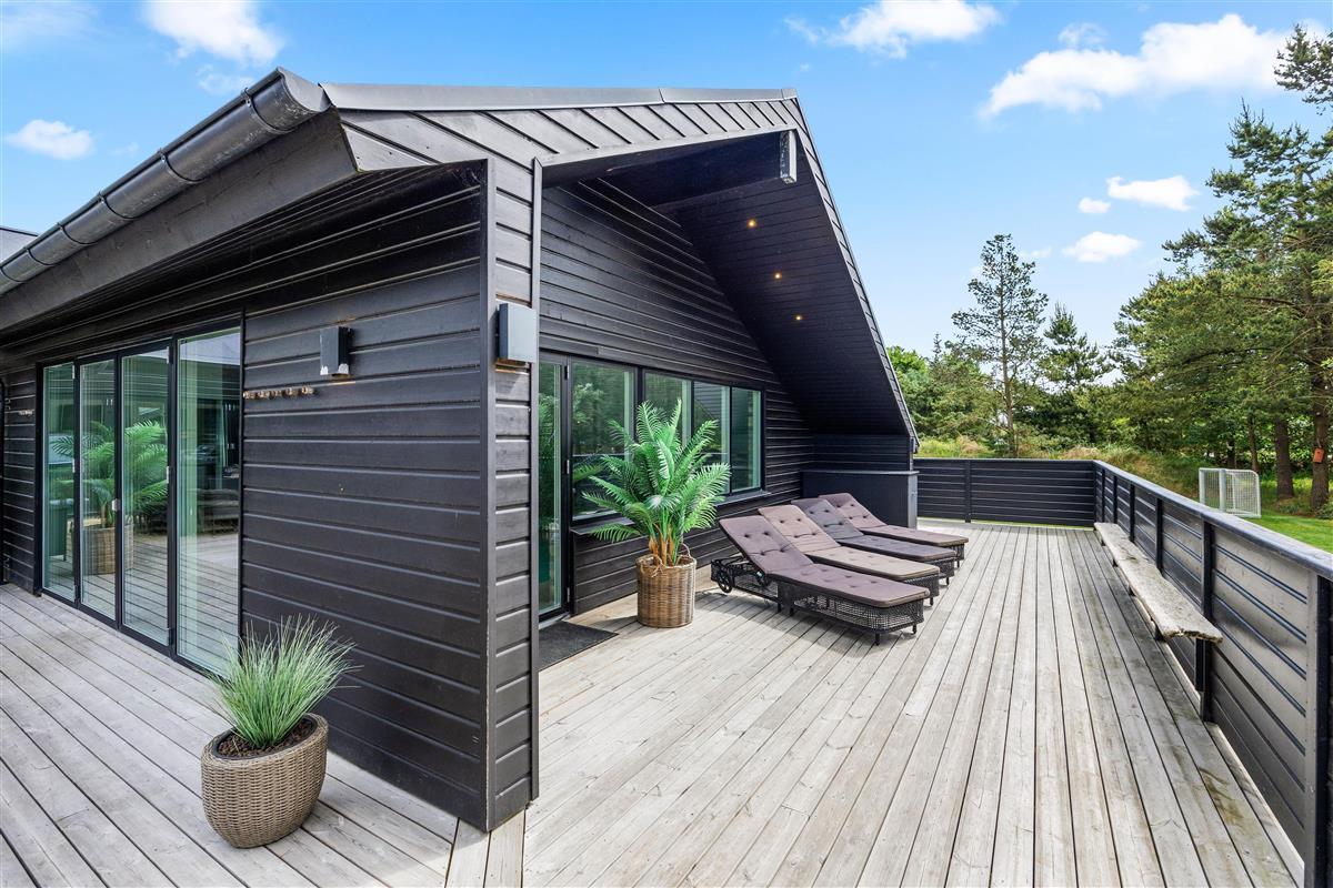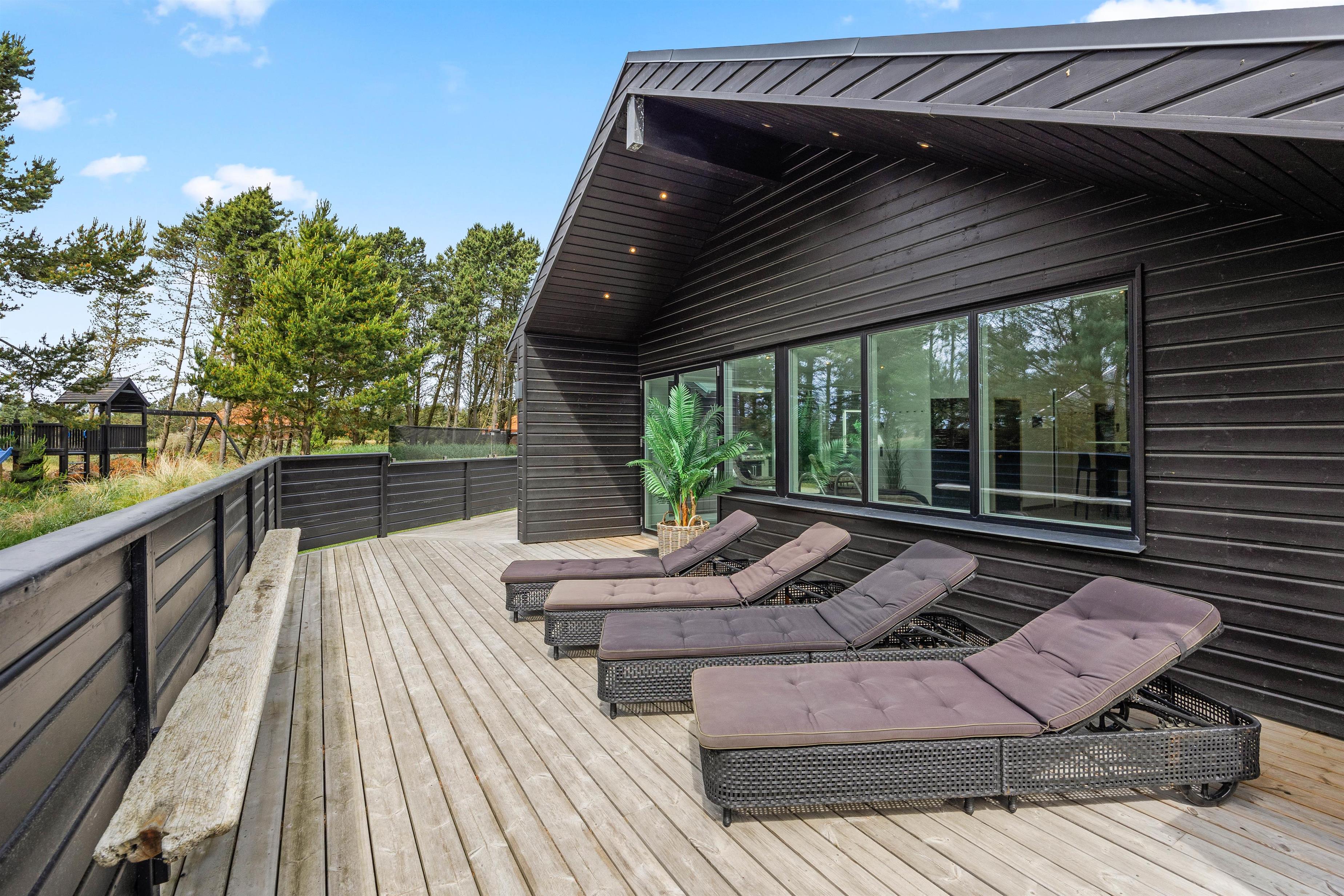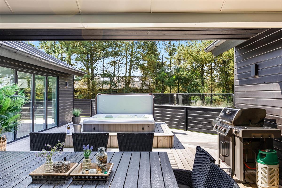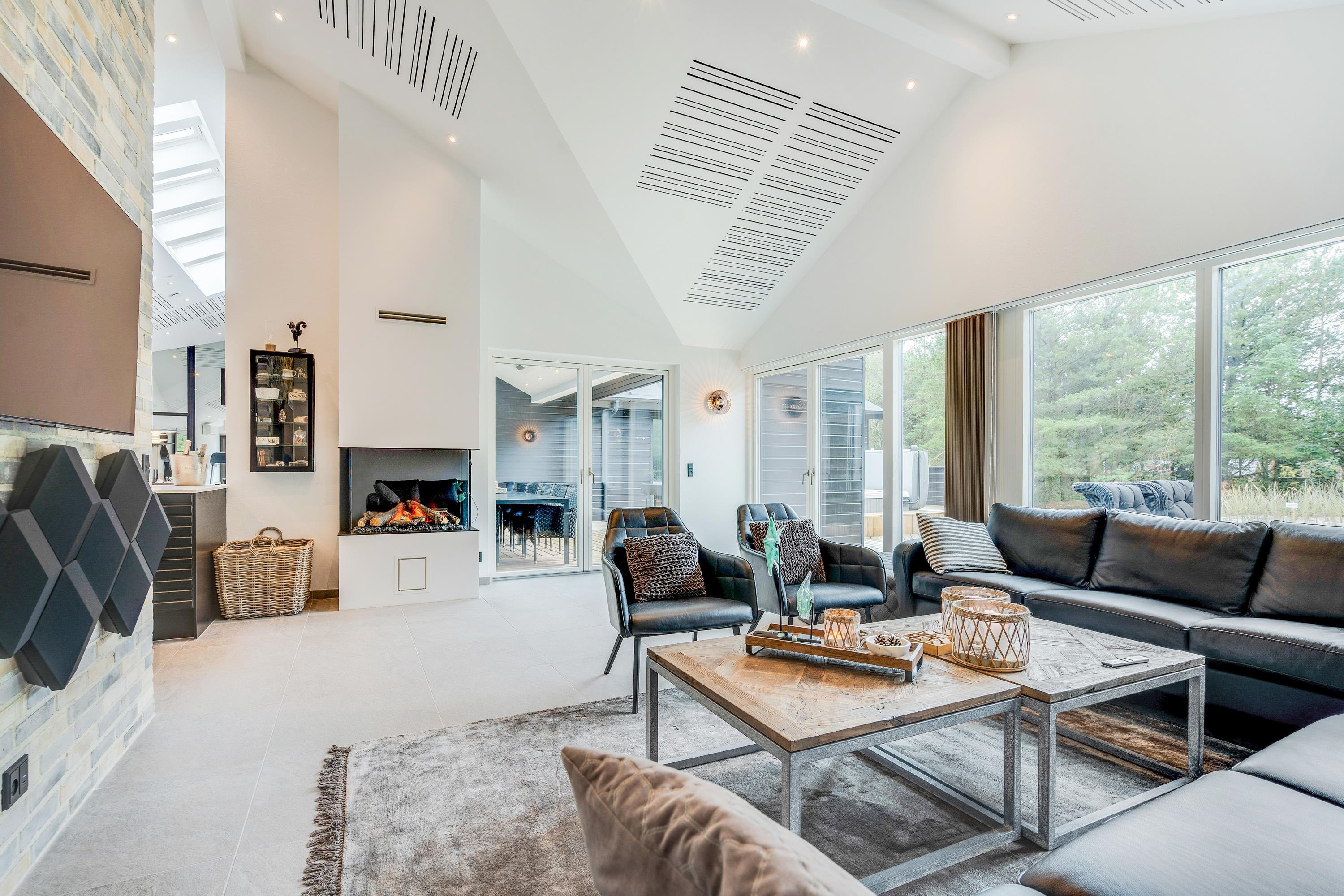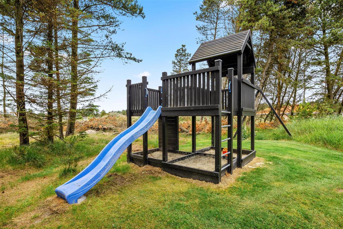 More than just luxury! This spacious holiday home at Peter Malersvej 27, built in 2020, is not only centrally located in Blåvand but also features a large swimming pool, outdoor hot tub, traditional sauna and infrared sauna. The extensive grounds offer plenty of space for all 12 guests and their dog to play, with children's play equipment available. Every comfort has been considered.