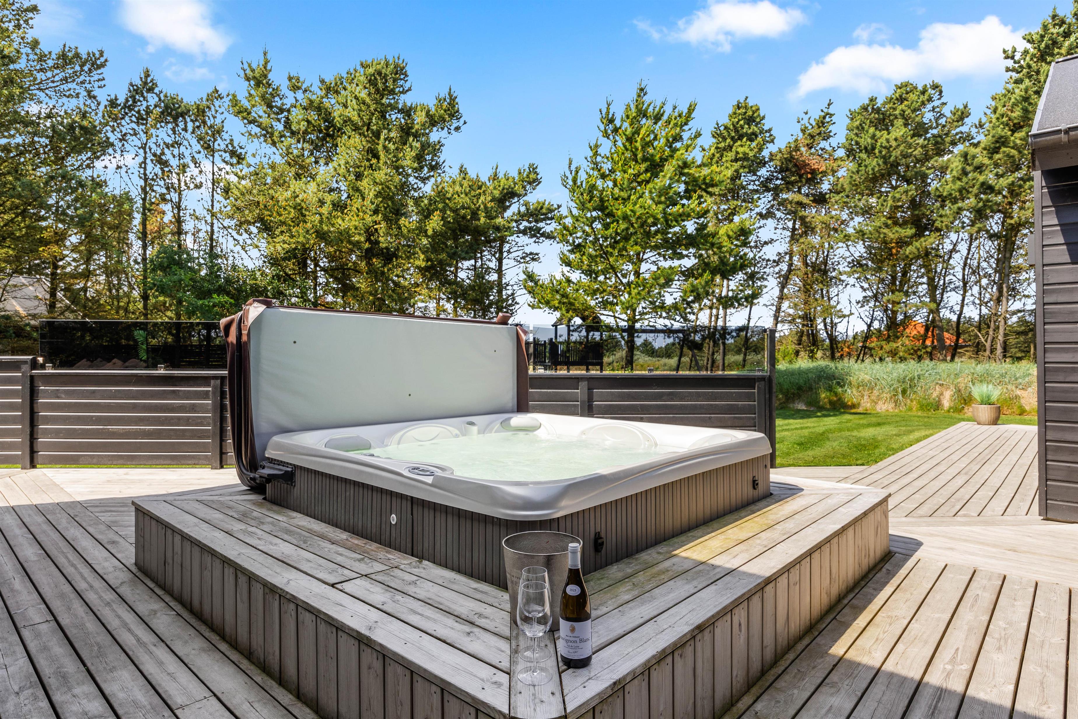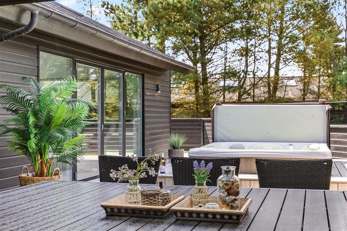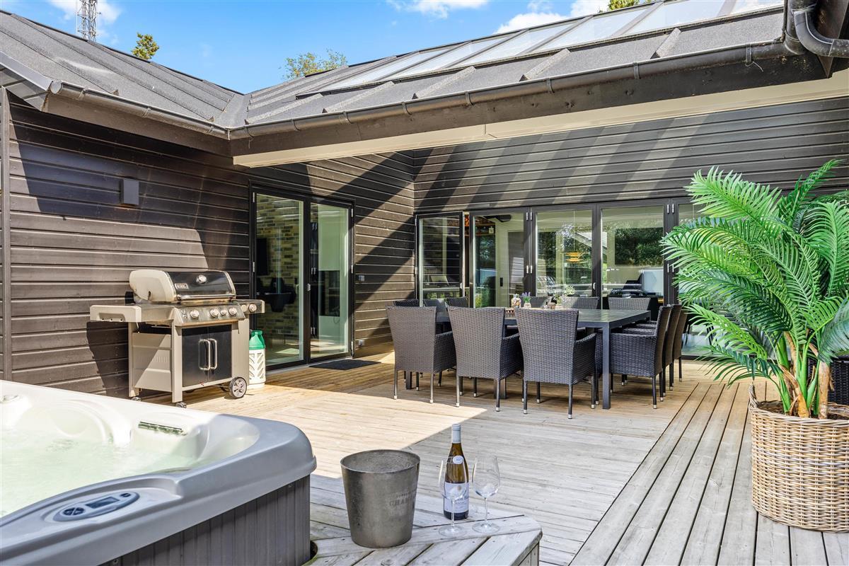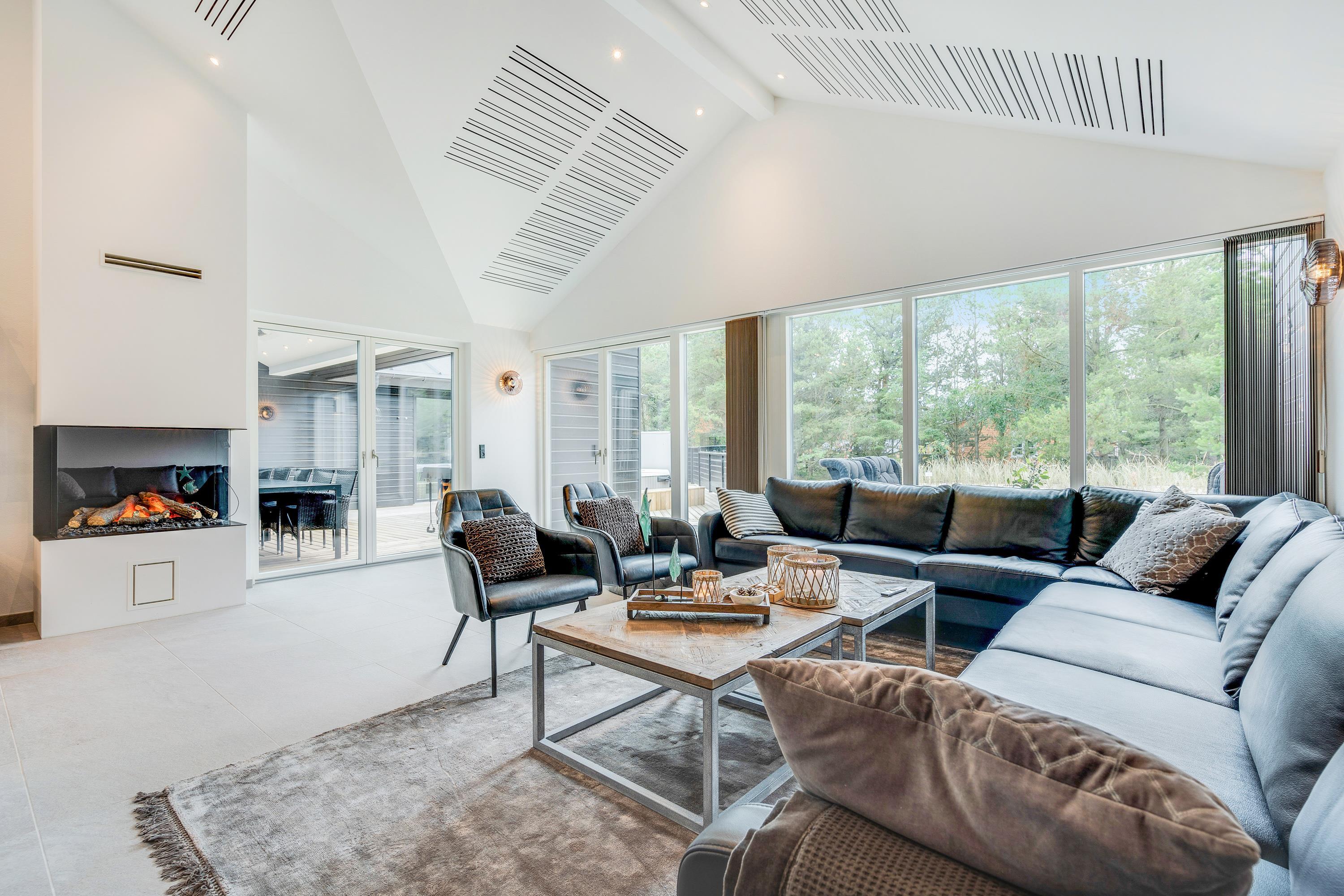 More than just luxury! This spacious holiday home at Peter Malersvej 27, built in 2020, is not only centrally located in Blåvand but also features a large swimming pool, outdoor hot tub, traditional sauna and infrared sauna. The extensive grounds offer plenty of space for all 12 guests and their dog to play, with children's play equipment available. Every comfort has been considered.