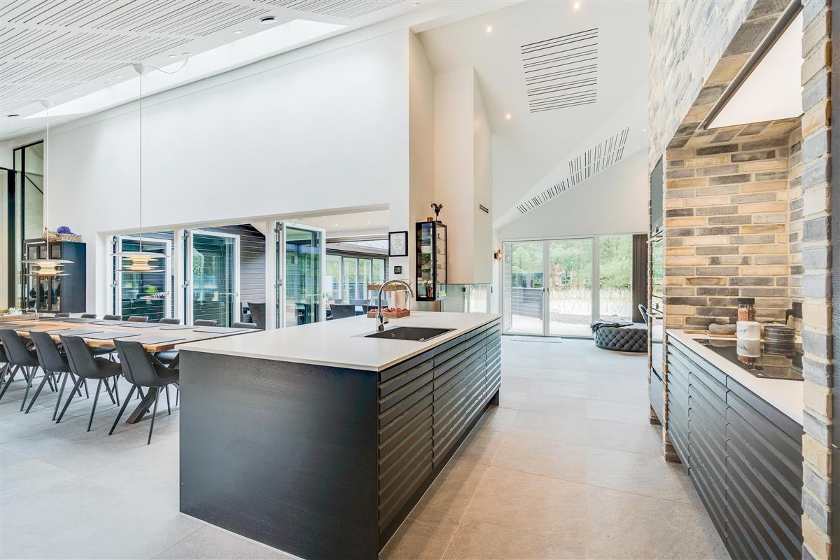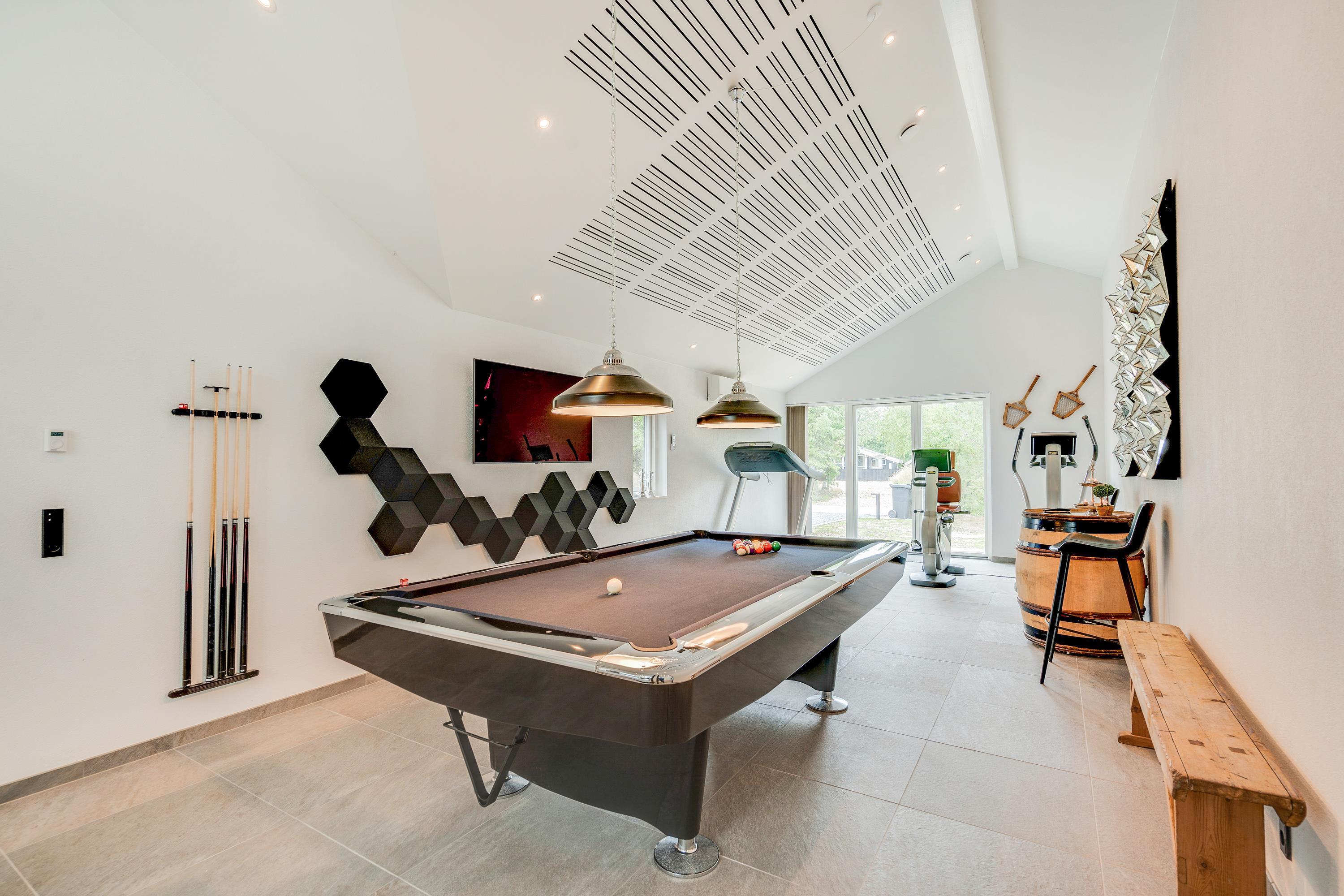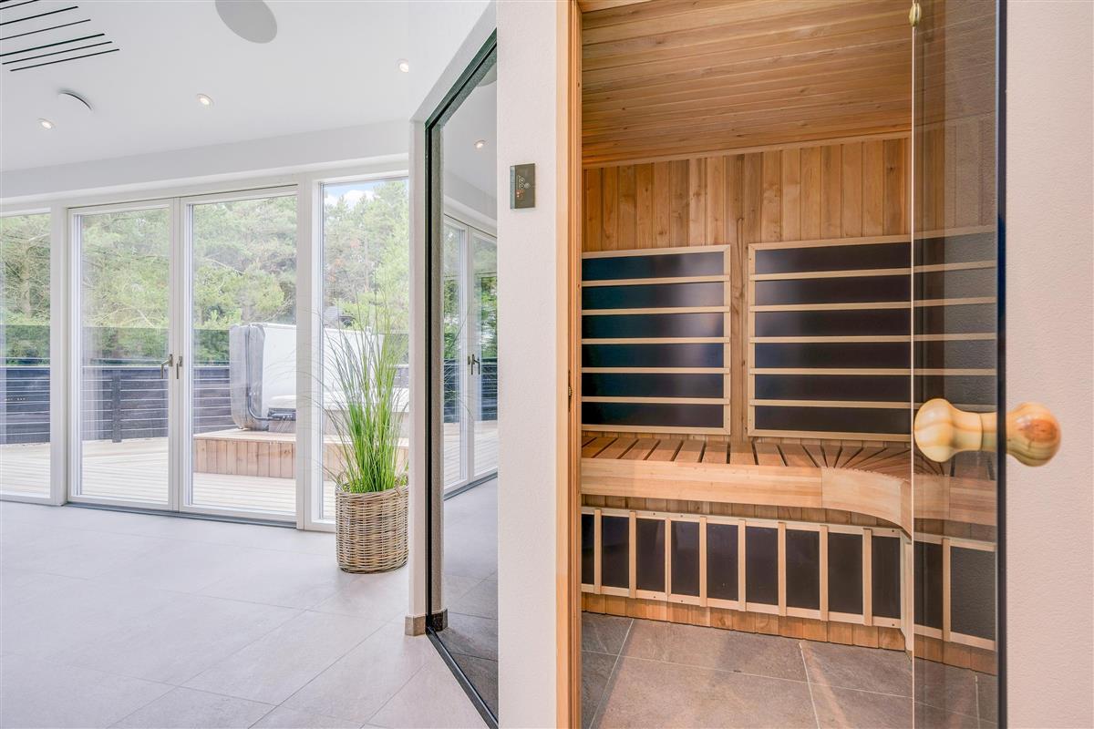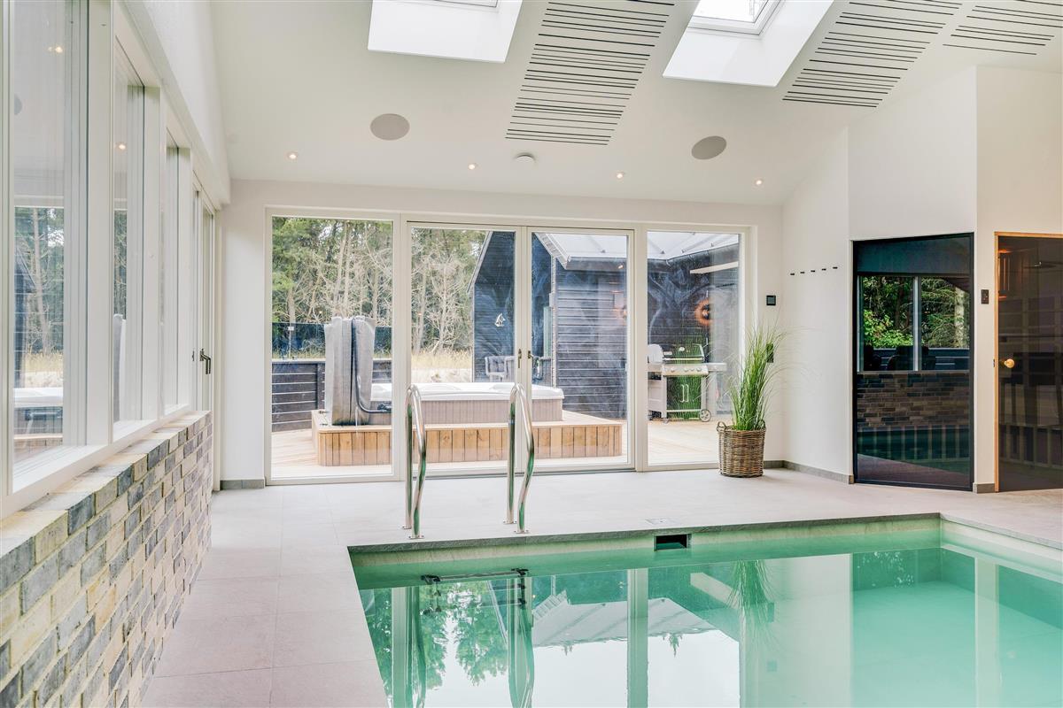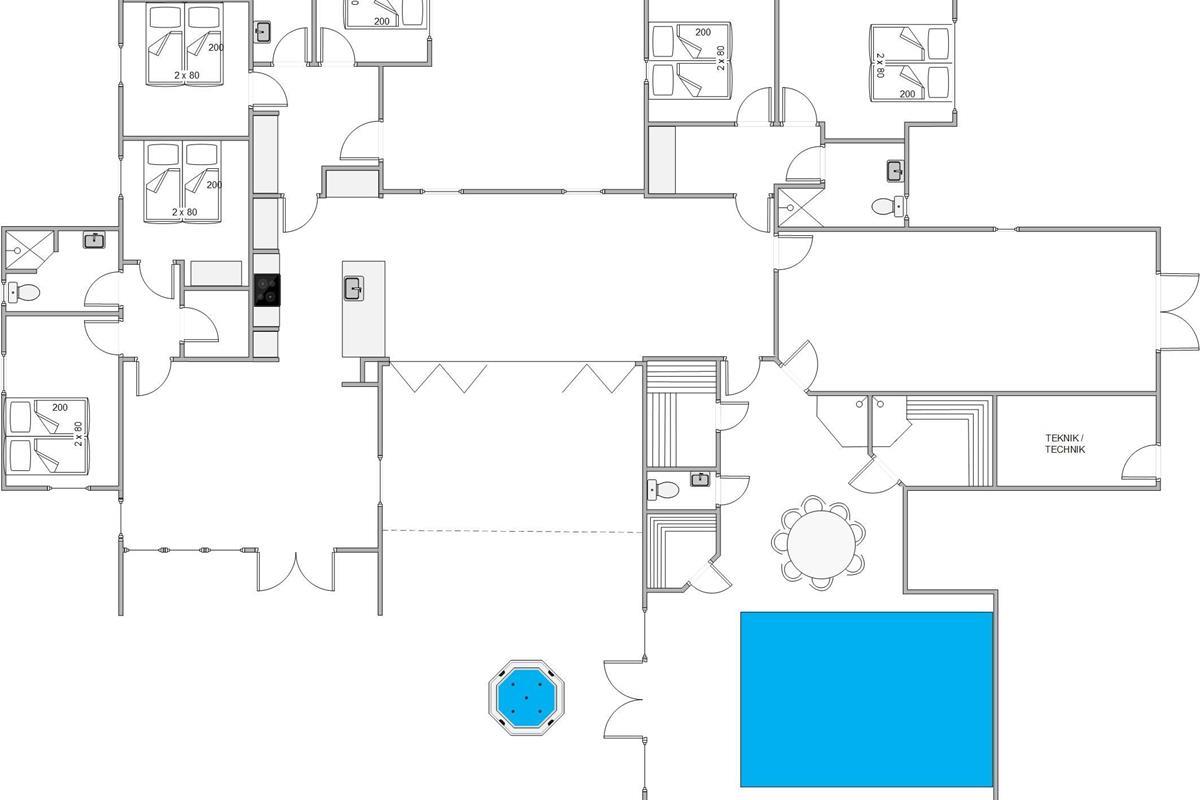More than just luxury! This spacious holiday home at Peter Malersvej 27, built in 2020, is not only centrally located in Blåvand but also features a large swimming pool, outdoor hot tub, traditional sauna and infrared sauna. The extensive grounds offer plenty of space for all 12 guests and their dog to play, with children's play equipment available. Every comfort has been considered.