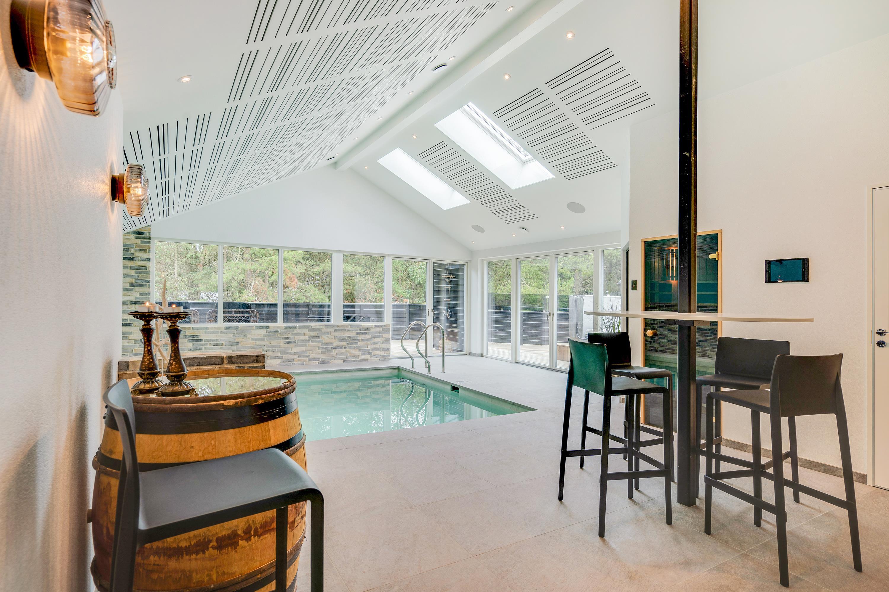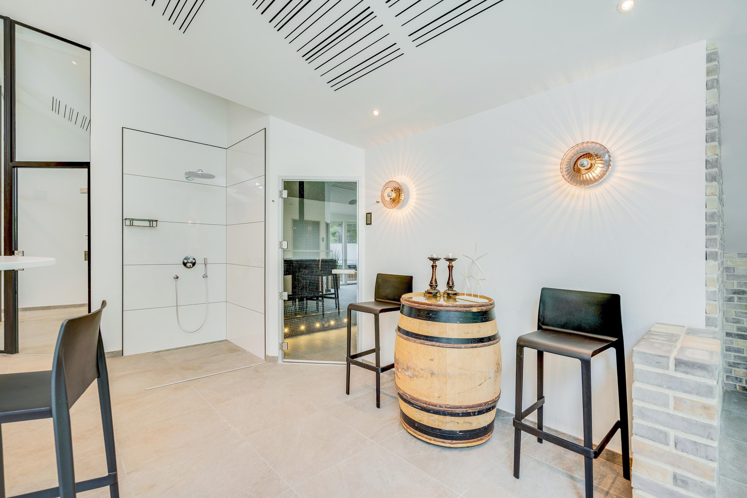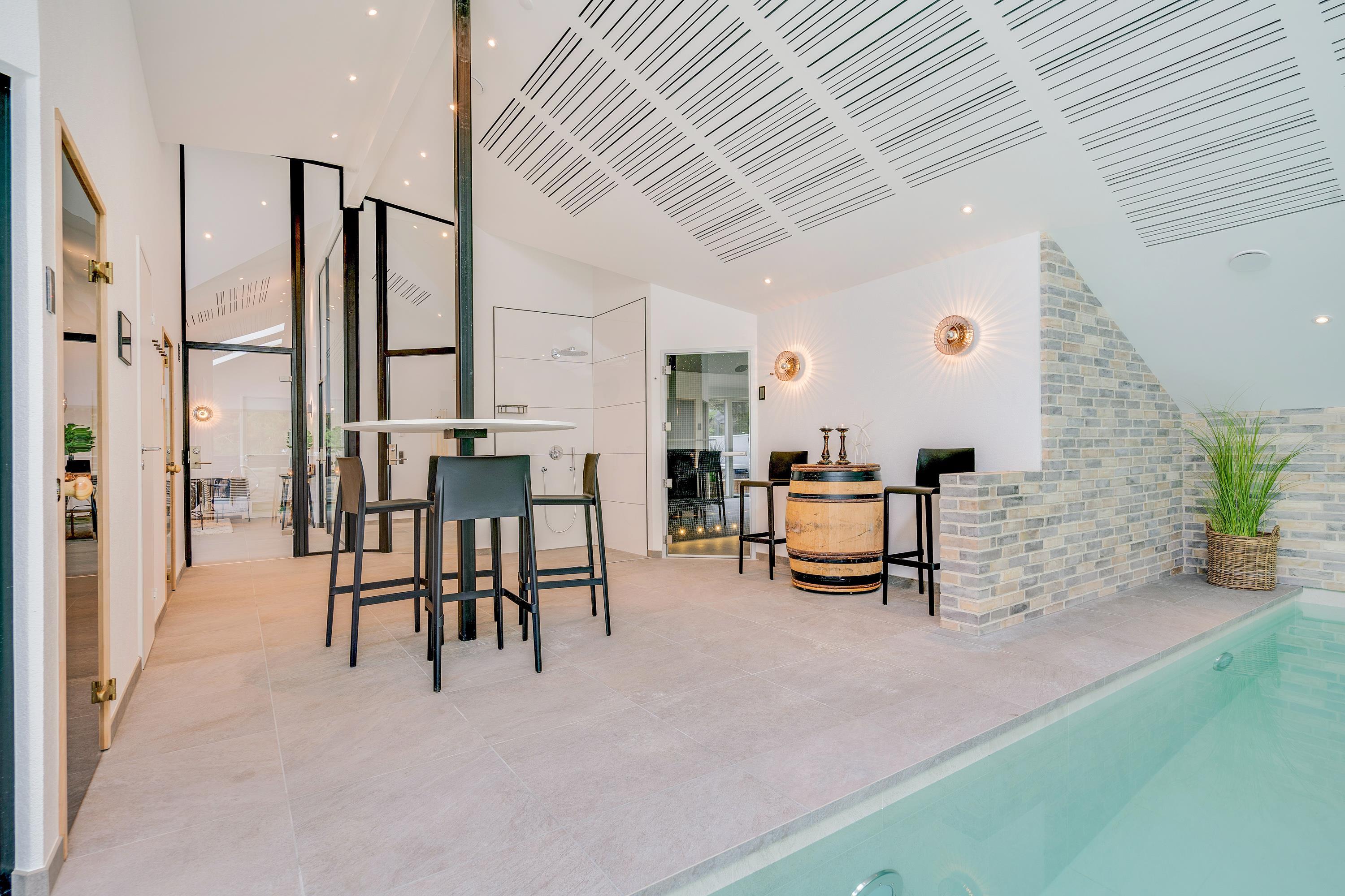 One of the many highlights for guests of all ages is the 25-square-metre swimming pool, perfect for children's entertainment and adult exercise alike. Those seeking relaxation will appreciate the indoor whirlpool, which comfortably accommodates seven people. Combined with the infrared sauna, you'll leave feeling completely refreshed.