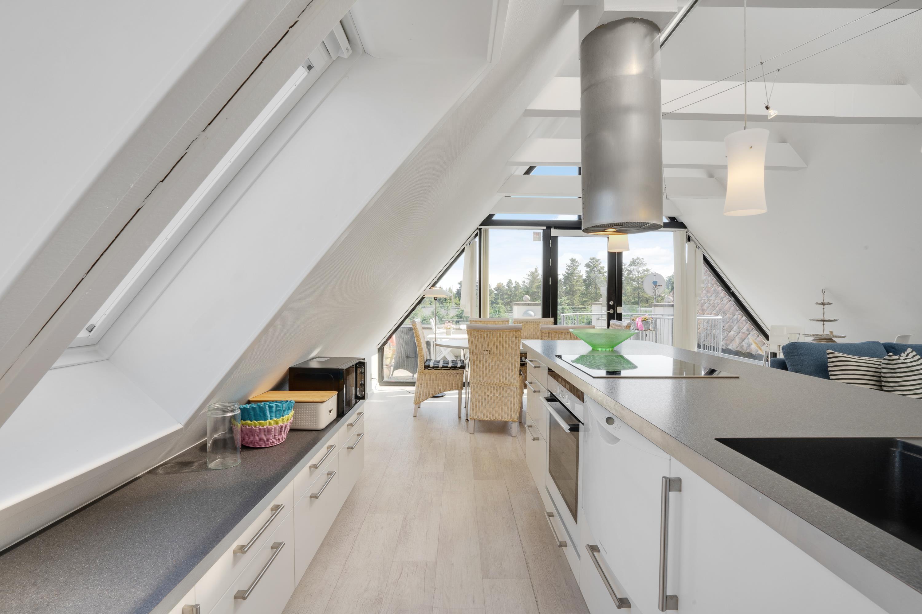 The 94-square-metre apartment includes a bathroom with underfloor heating and two lovely bedrooms with sloping ceilings.