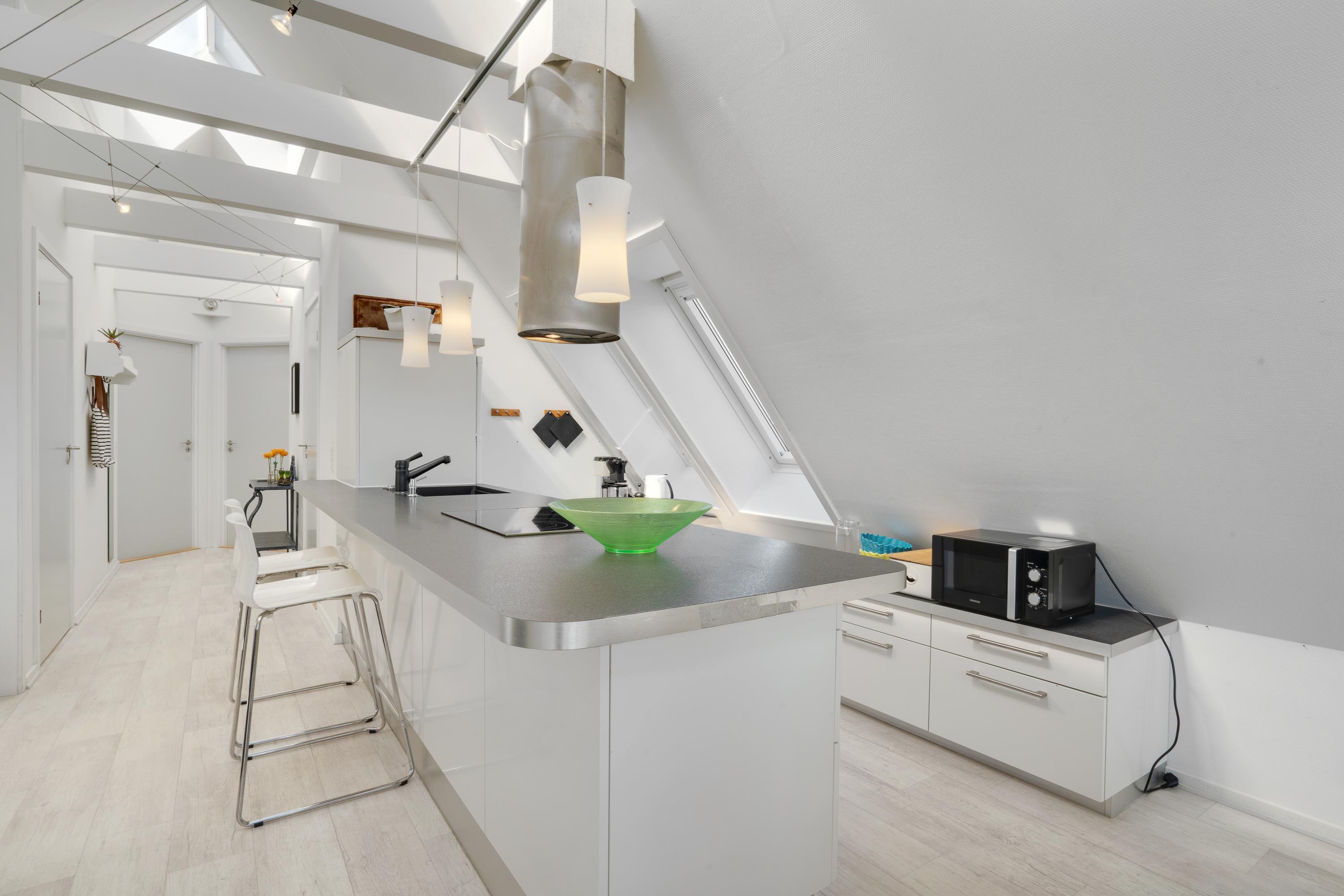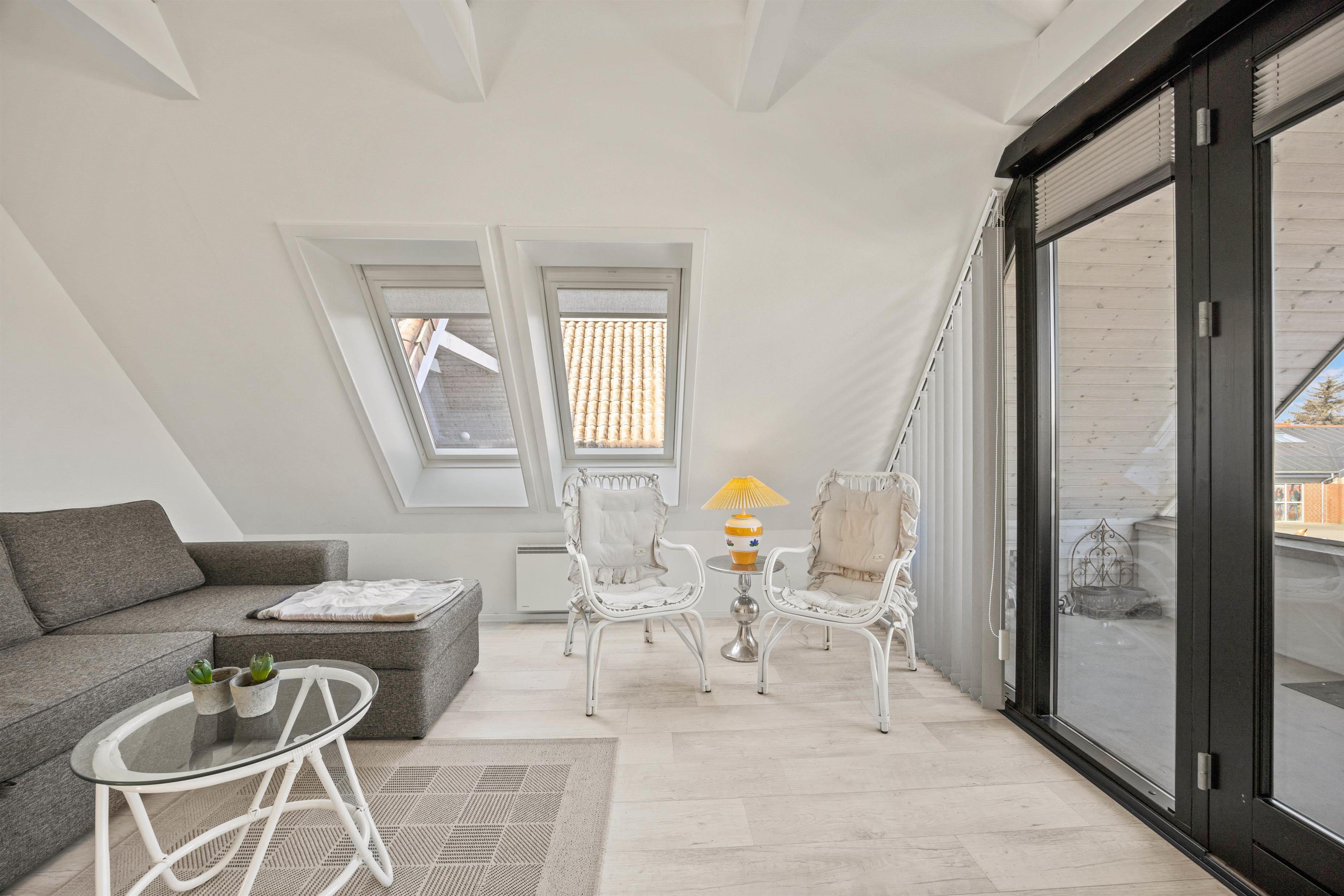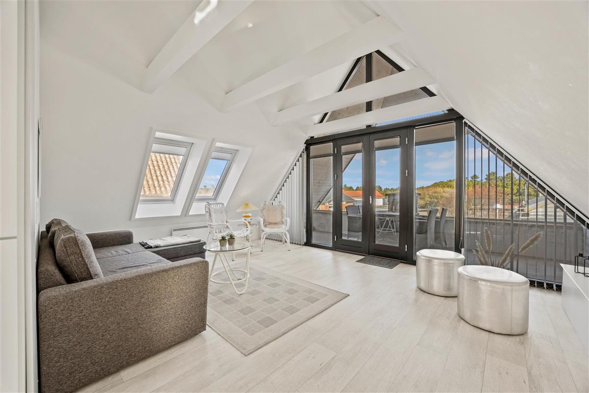 This holiday apartment at Blåvandvej 8G is located on the top floor and features exposed beams. The high-ceilinged rooms are bright and cheerfully furnished, with numerous windows flooding the space with light, creating the perfect holiday atmosphere.
